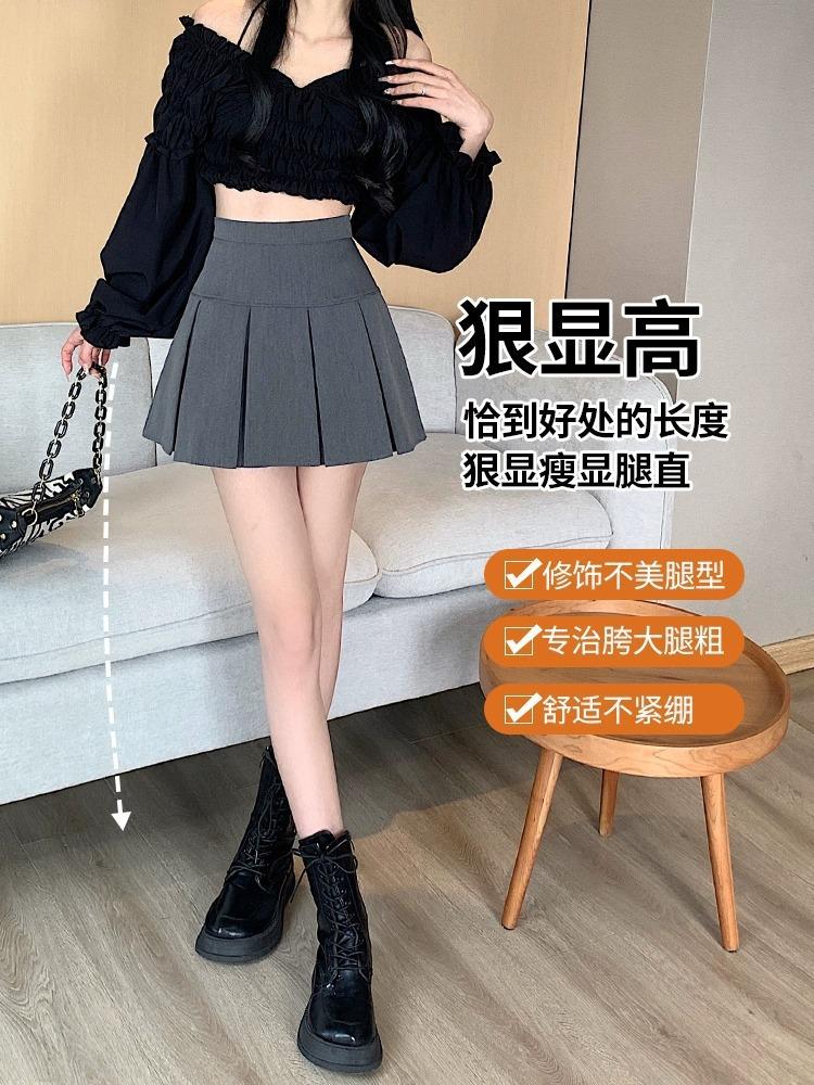 Falda corta plisada, primavera, otoño e invierno, para mujer, nueva moda 2024, adelgazante, cintura alta, negra, corte A, falda tipo paraguas.