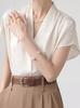 Camisa de manga corta de satén ultrafino color albaricoque para mujer, diseño francés de gasa, estilo nicho, para verano de 2024