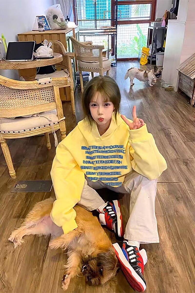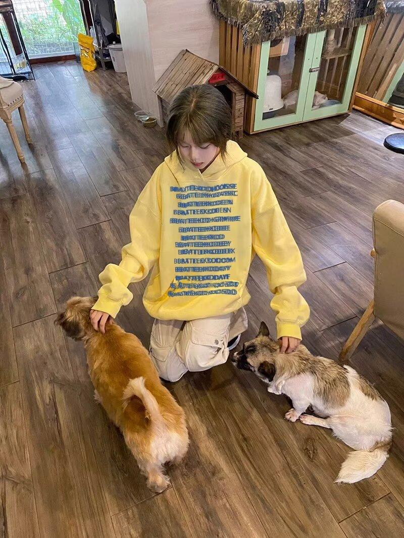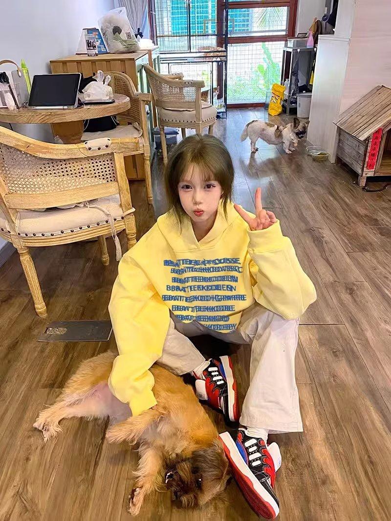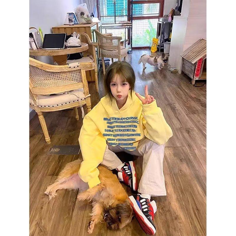 Sudadera con capucha amarilla con estampado de letras de High Street de estilo americano para mujer, chaqueta polar holgada de gran tamaño para otoño e invierno, marca de moda
