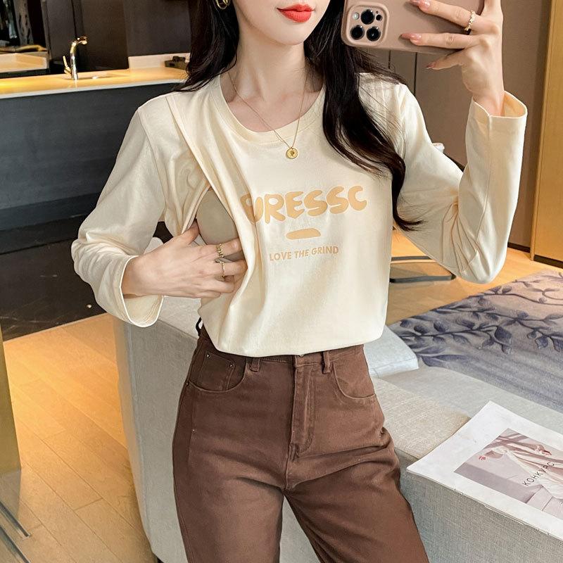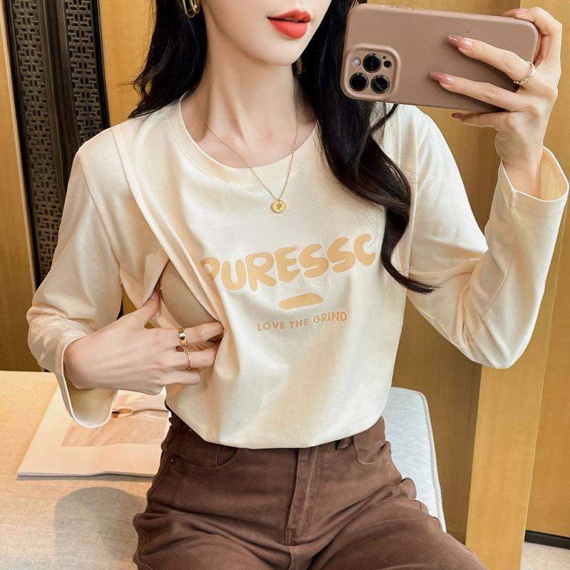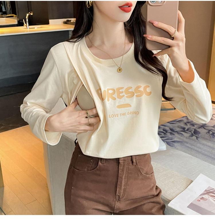Top de Lactancia de Primavera y Otoño Ropa de Lactancia Postparto para Mamá Caliente Camiseta Combinable Vestido Luna para Mamá a la Moda