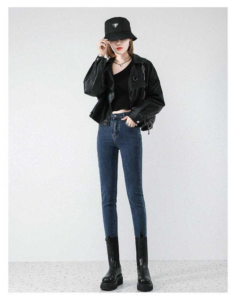 Pantalones vaqueros ajustados para mujer, otoño 2021, nuevo estilo coreano, cintura alta, elásticos, ajustados, altos, ajustados, tipo lápiz.