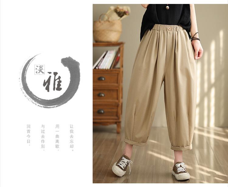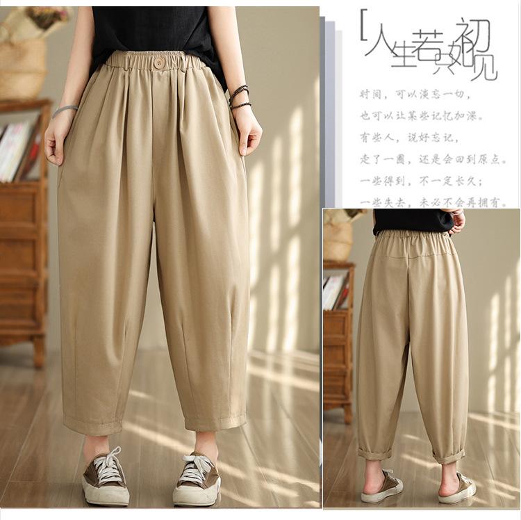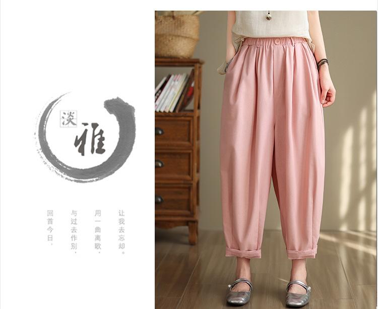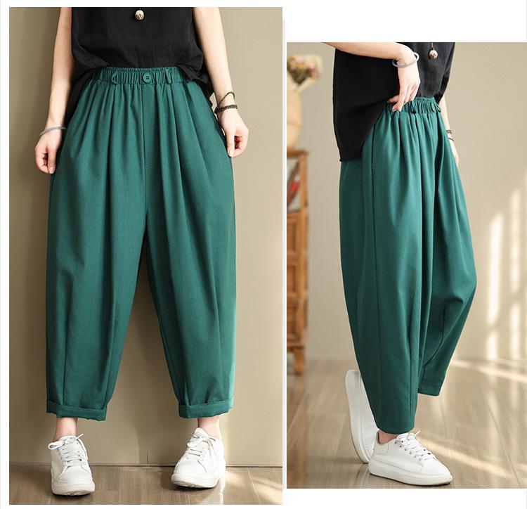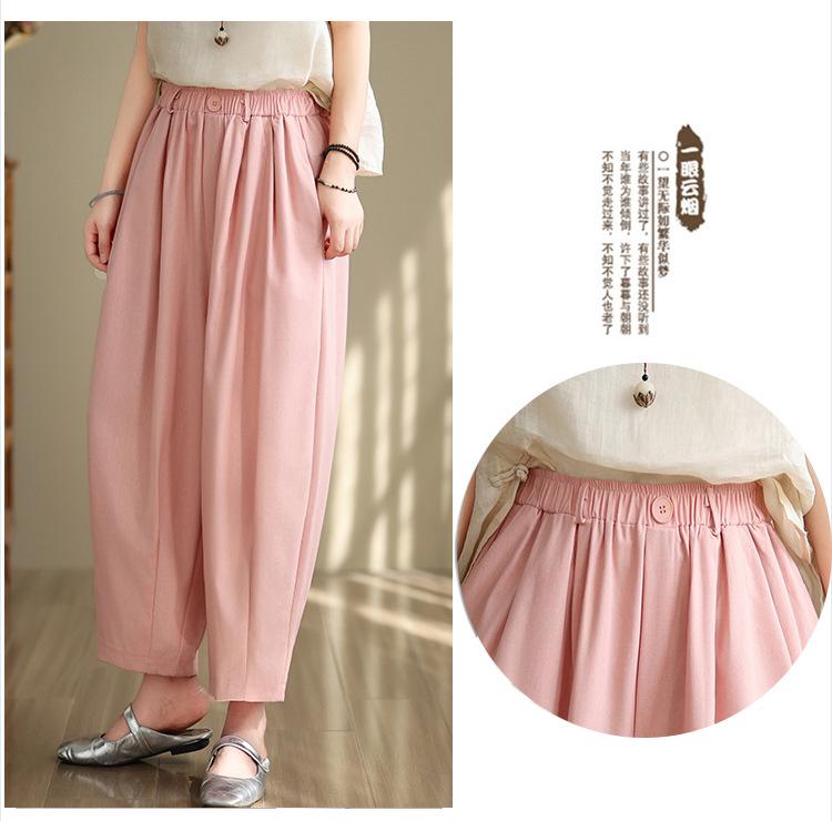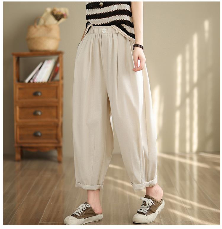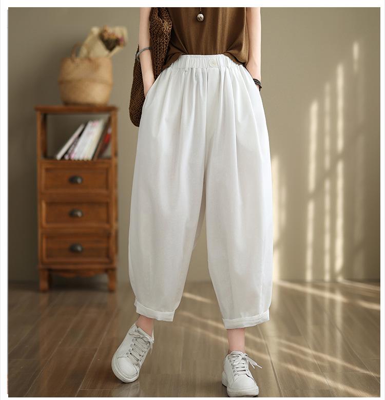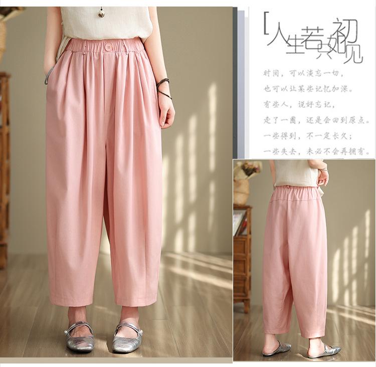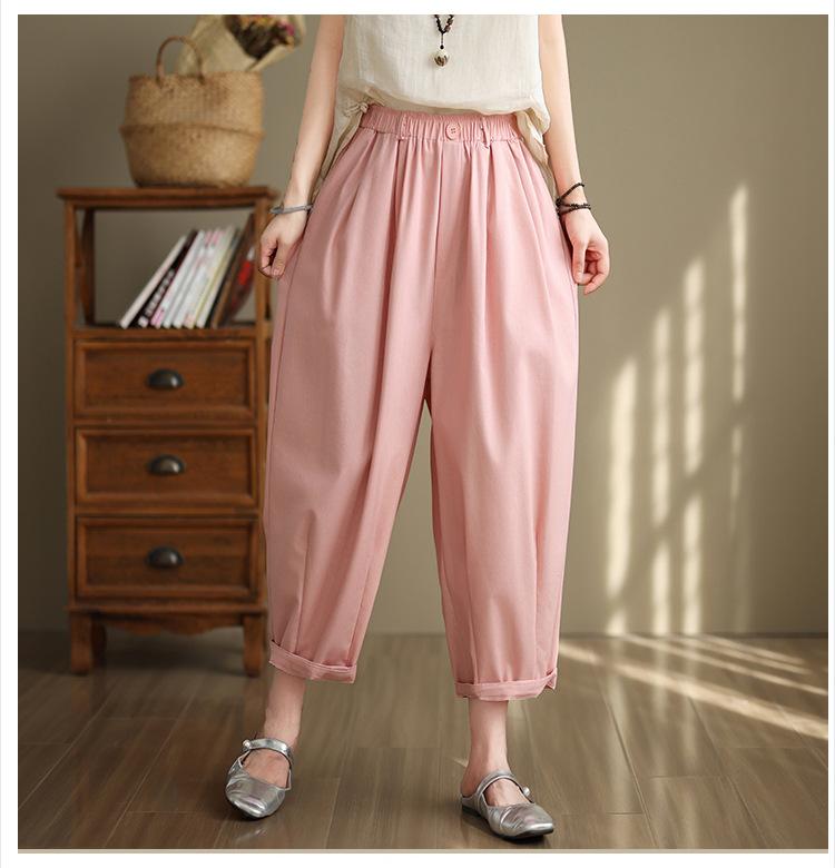 Pantalones harén casuales de color sólido, cintura elástica, sueltos, estilo zanahoria, novedad de verano de 2024