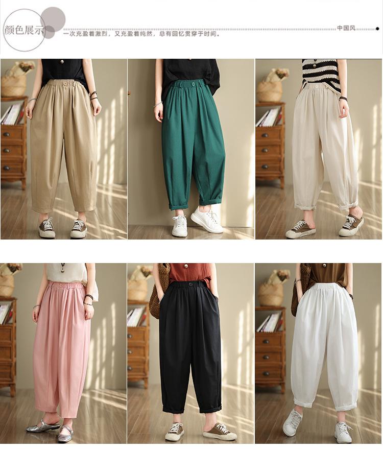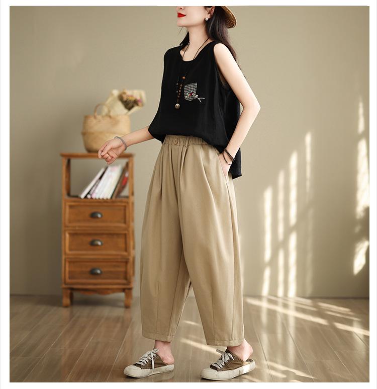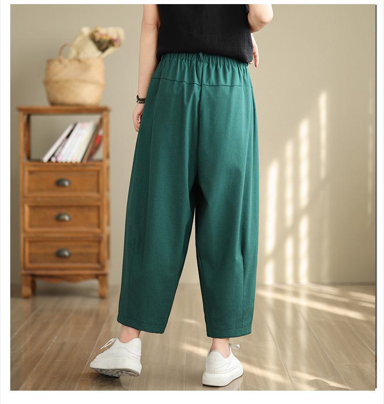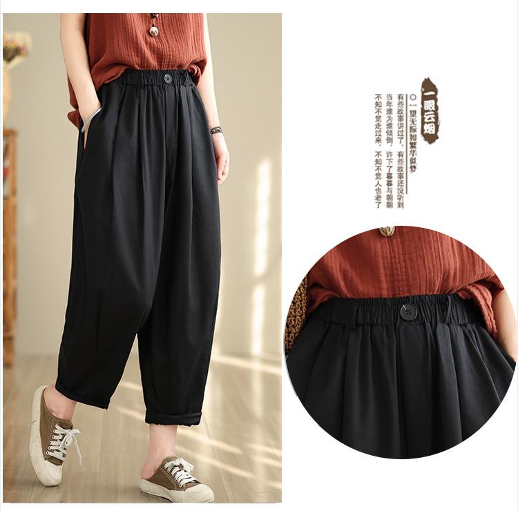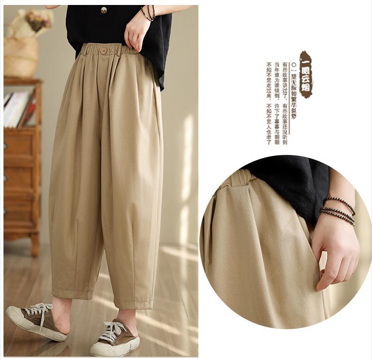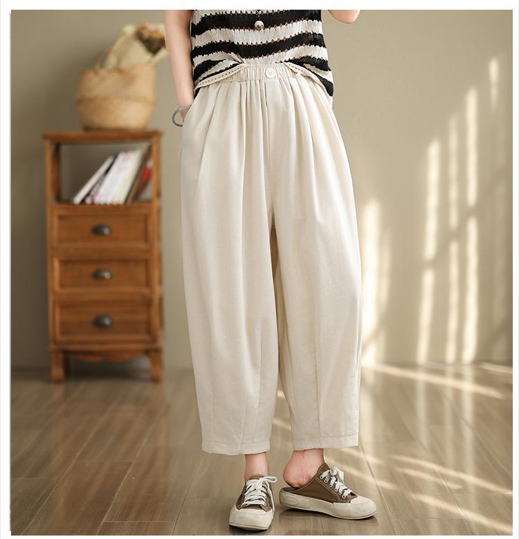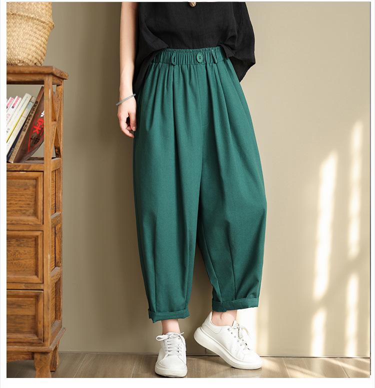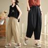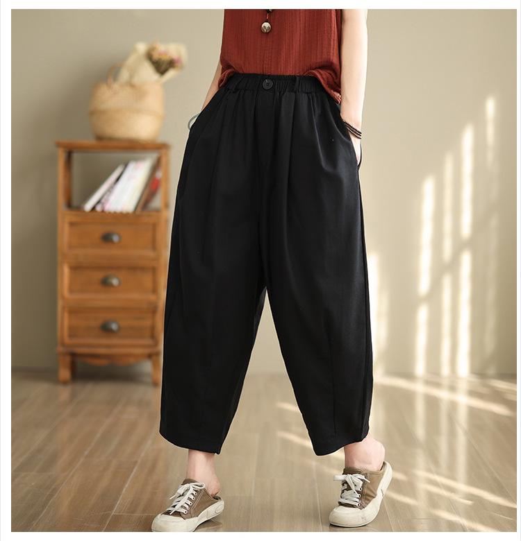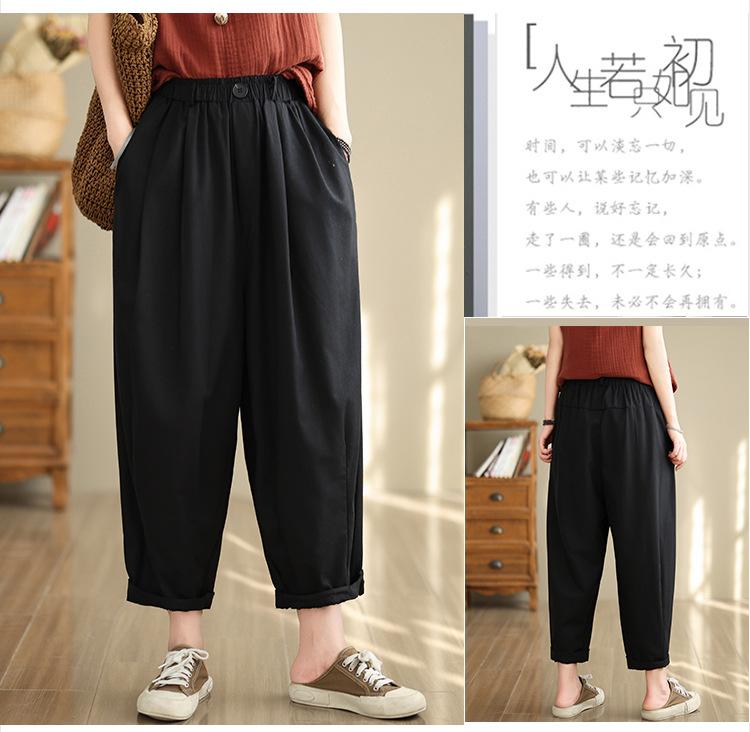 Pantalones harén casuales de color sólido, cintura elástica, sueltos, estilo zanahoria, novedad de verano de 2024