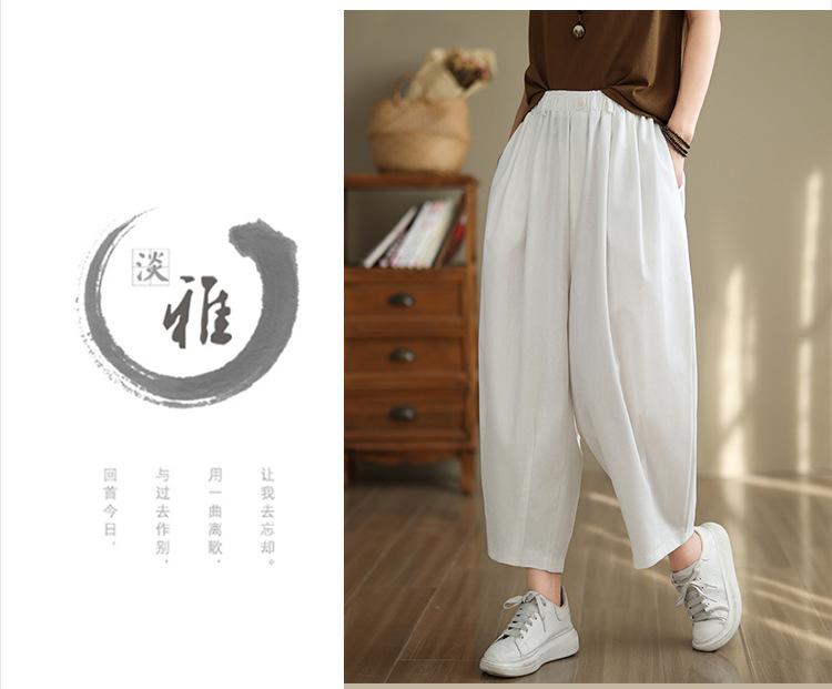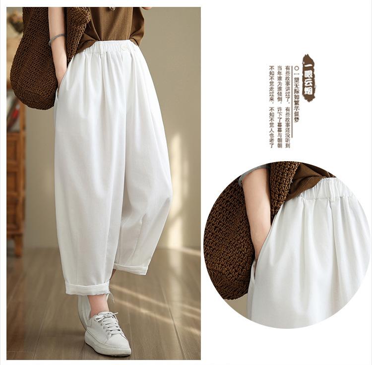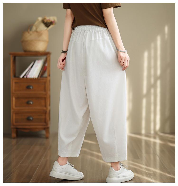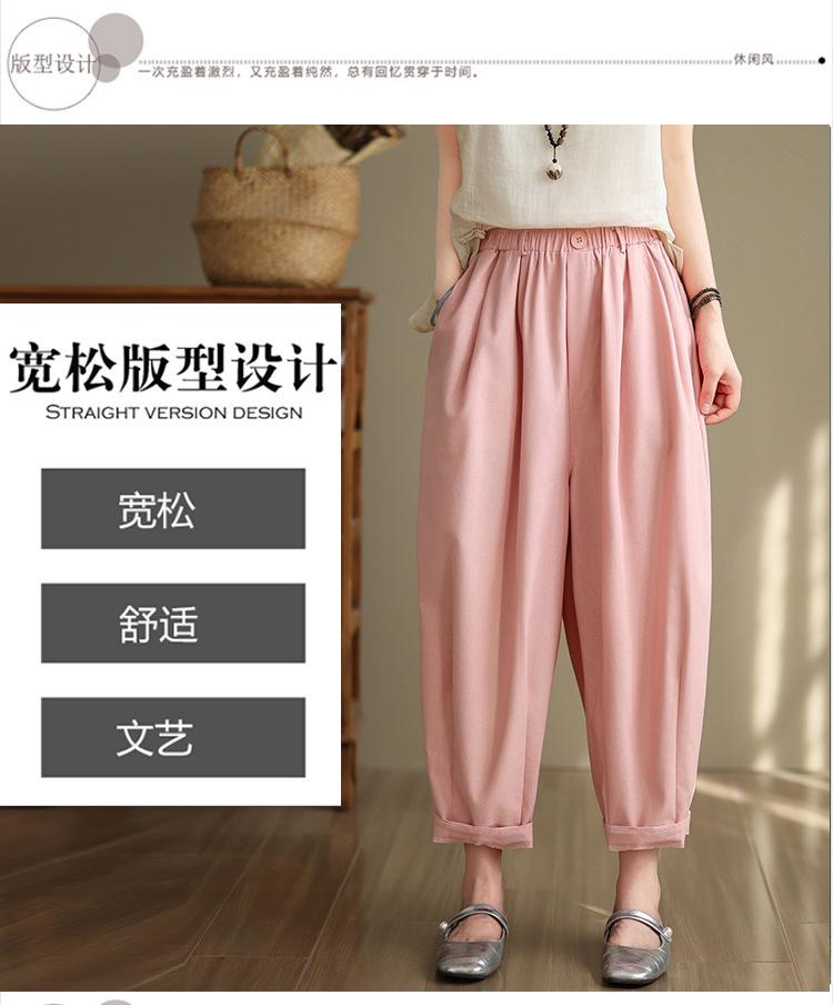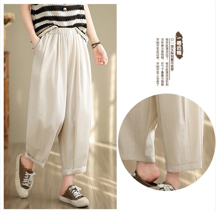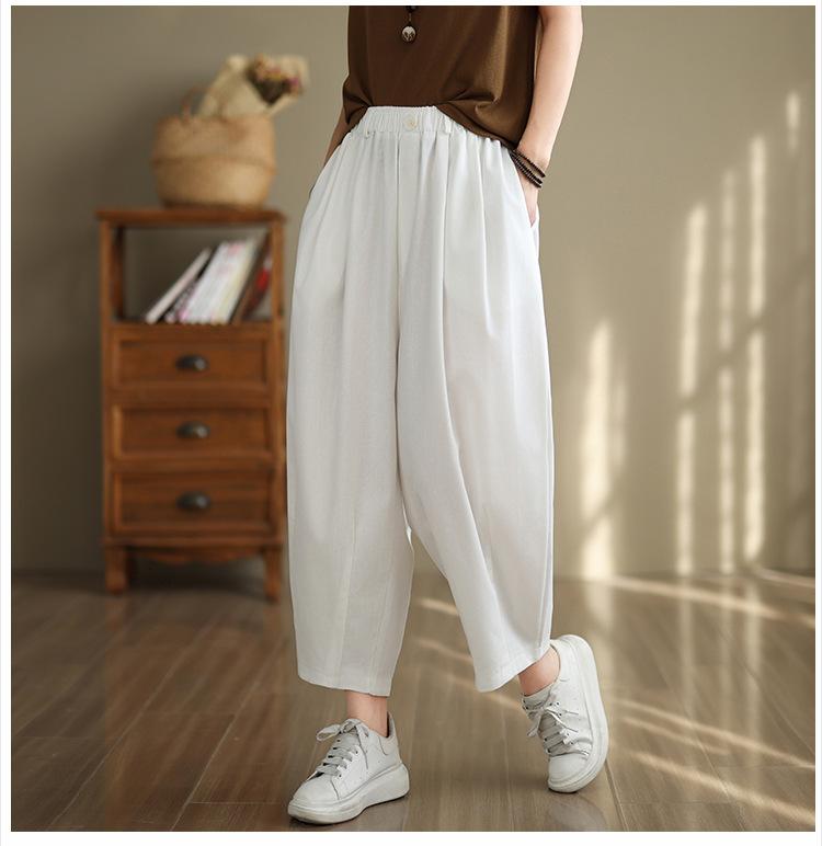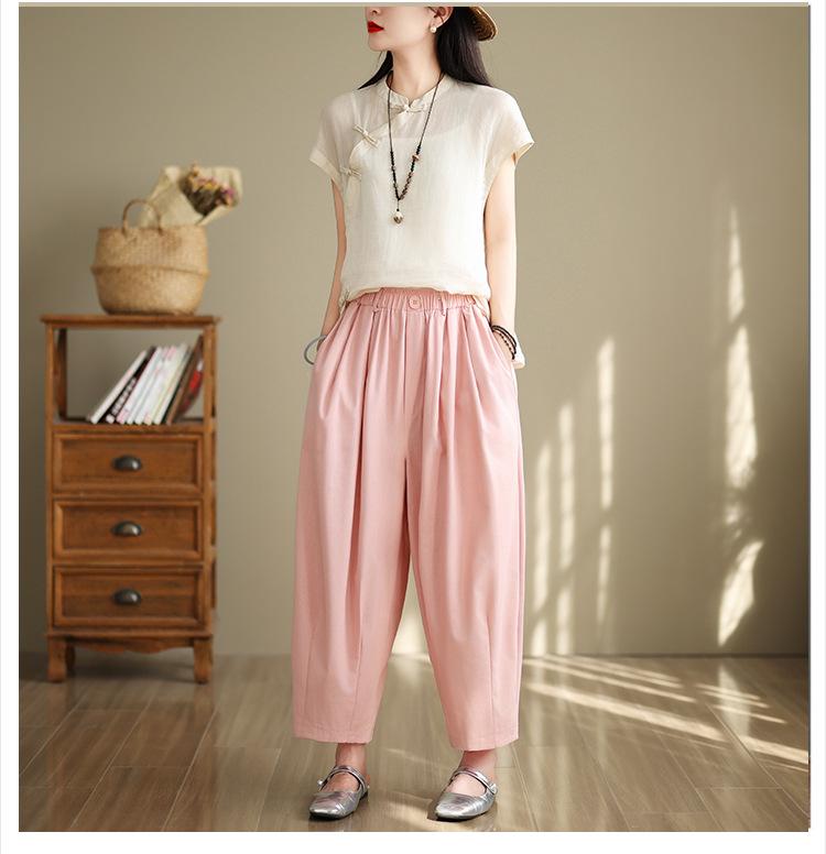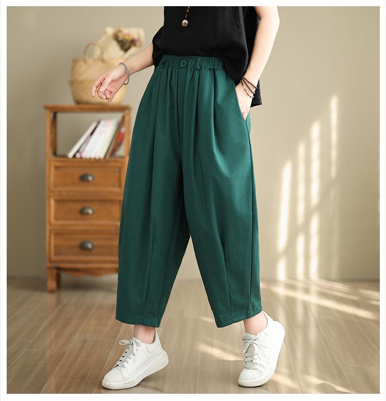 Pantalones harén casuales de color sólido, cintura elástica, sueltos, estilo zanahoria, novedad de verano de 2024