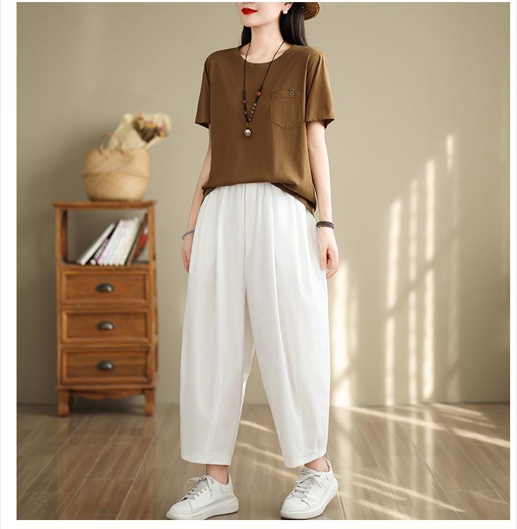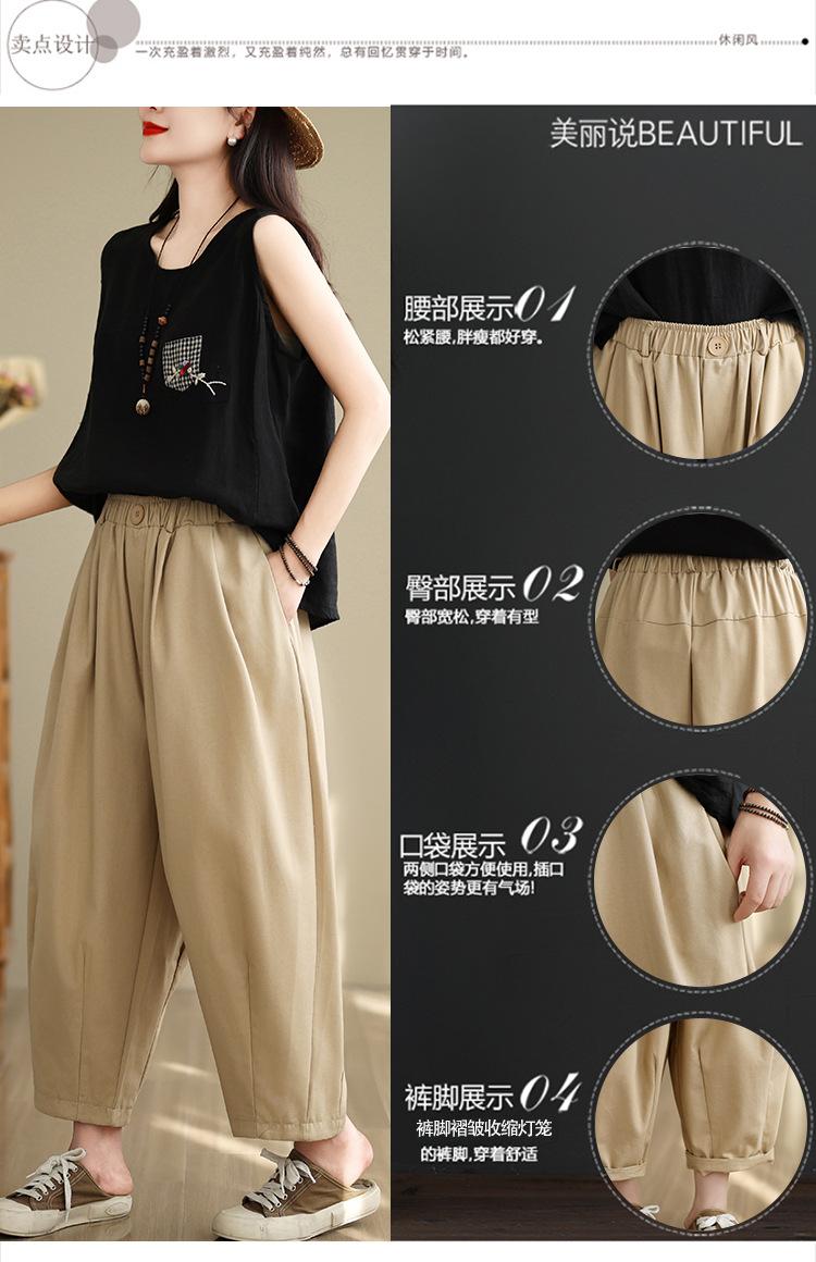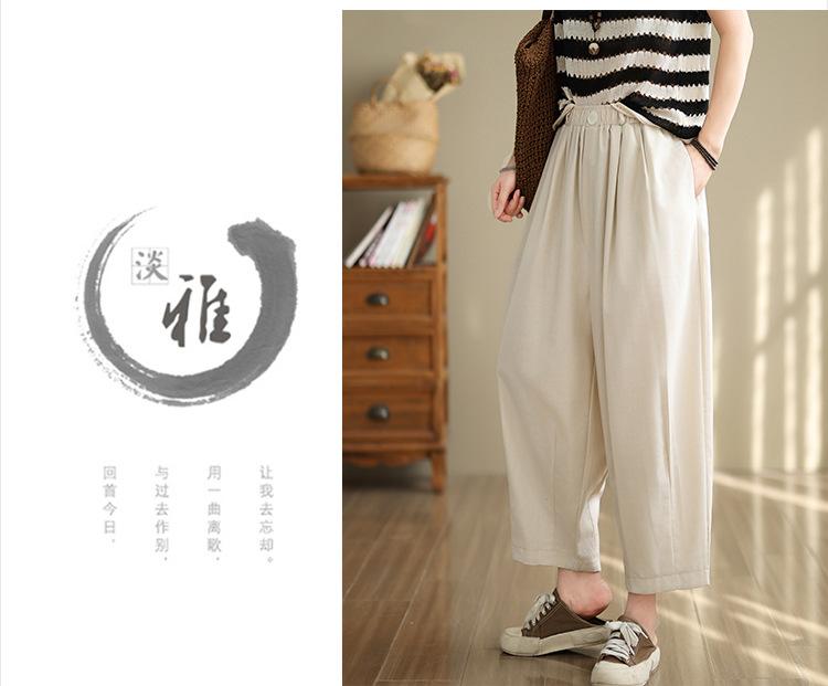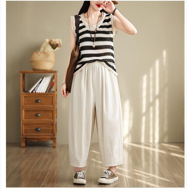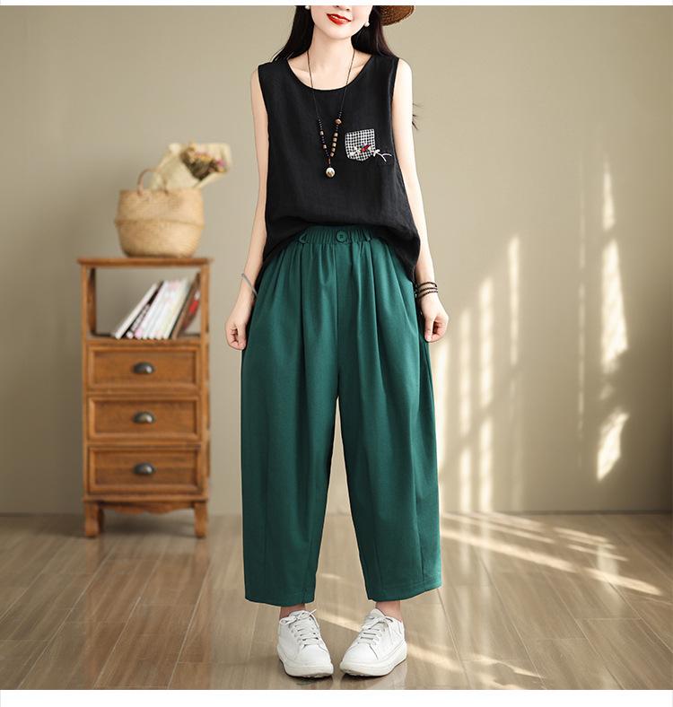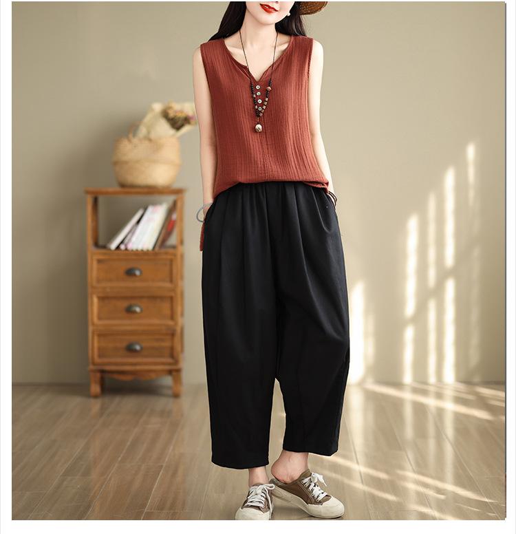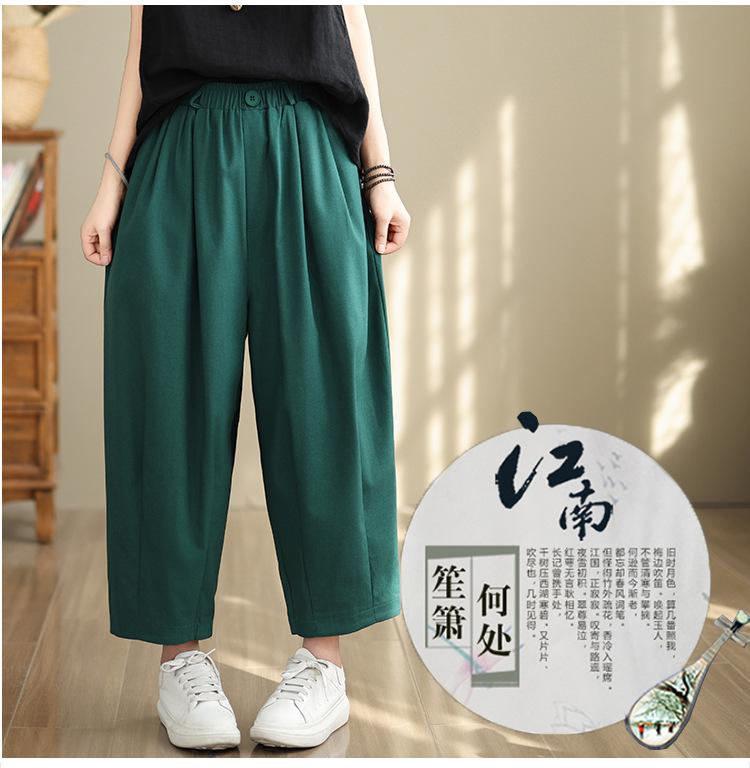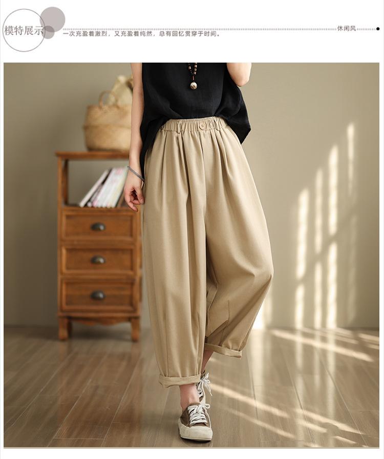 Pantalones harén casuales de color sólido, cintura elástica, sueltos, estilo zanahoria, novedad de verano de 2024
