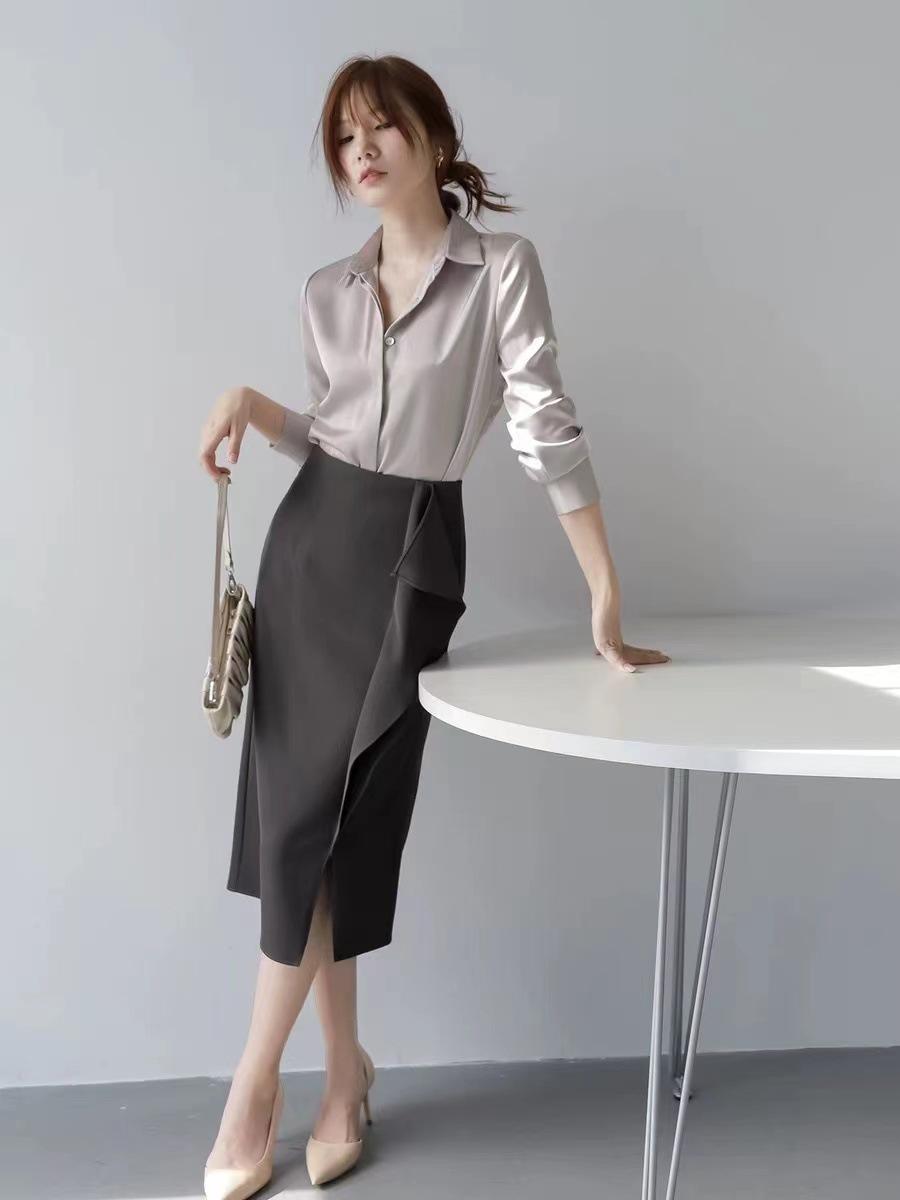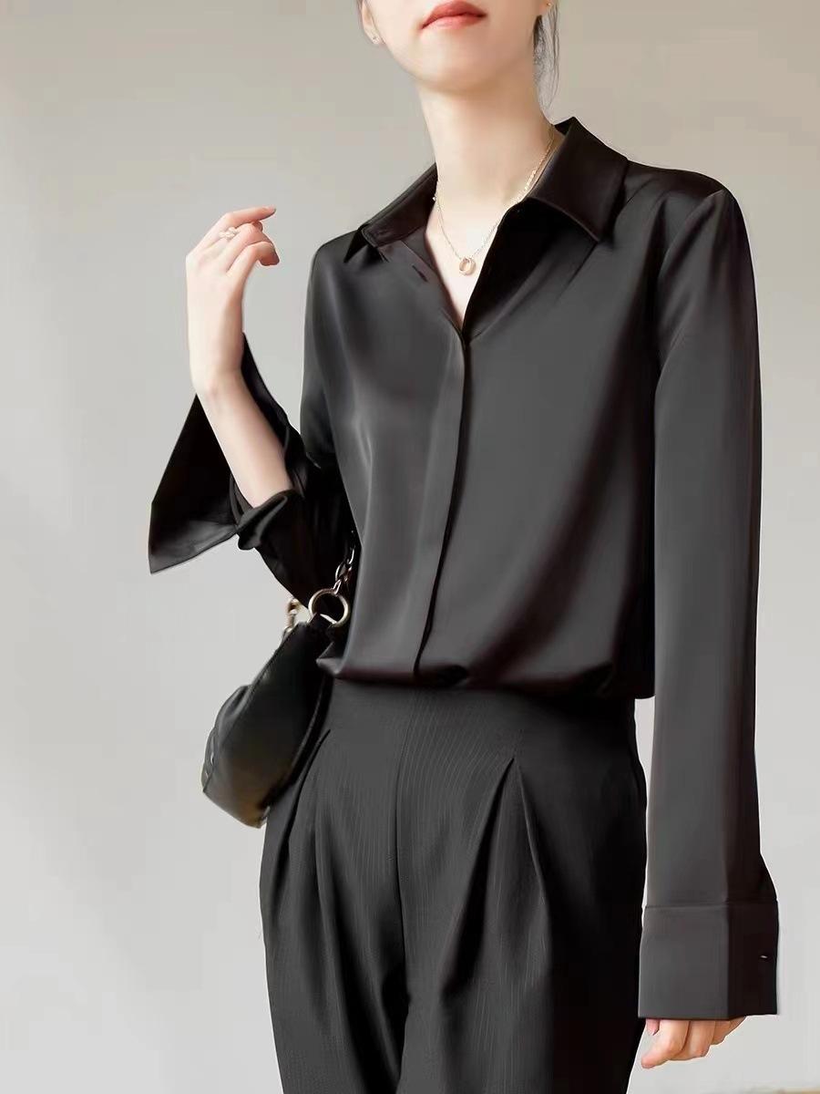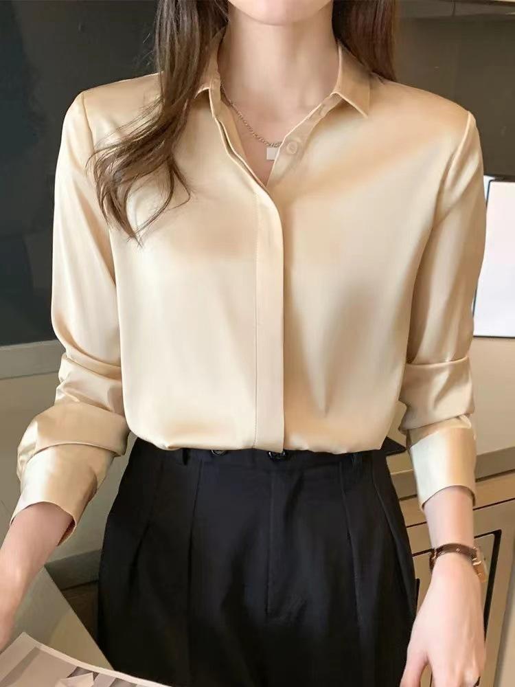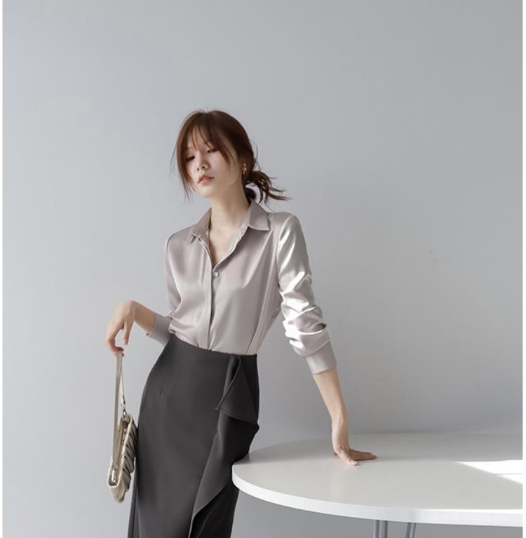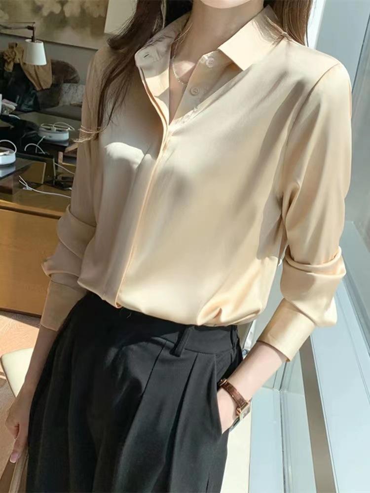 Camisa elegante de mujer de manga larga para negocios, combinable con todo, primavera y otoño 2024, nueva camisa informal, camisa blanca de alta gama.