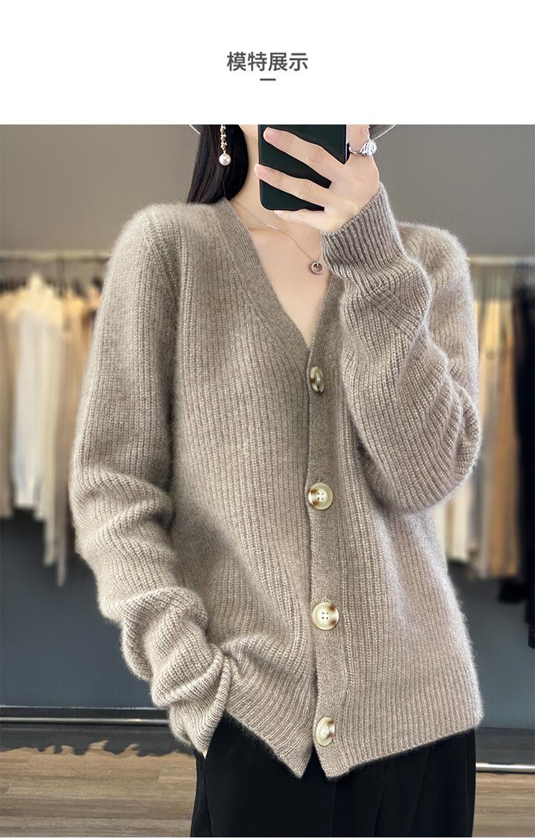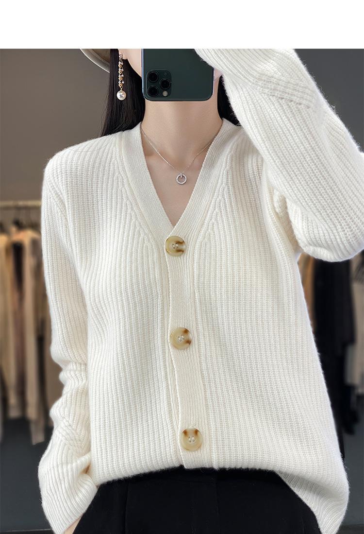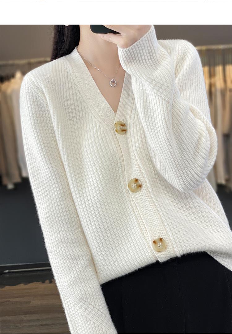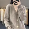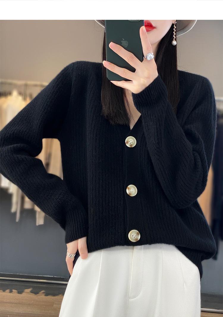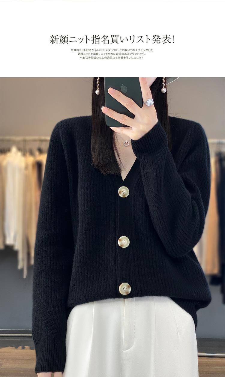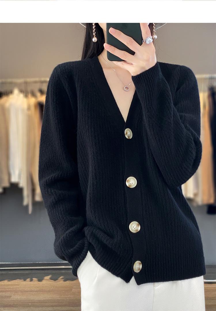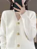 Cárdigan de punto para mujer 2023 Otoño Nuevo Suelto Cuello en V Casual Manga Larga Suéter Chaqueta Color Puro Top Camisa para Fondo