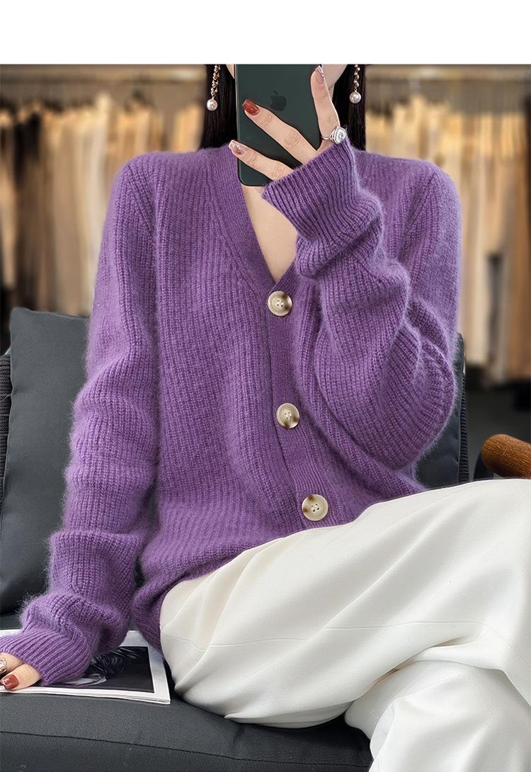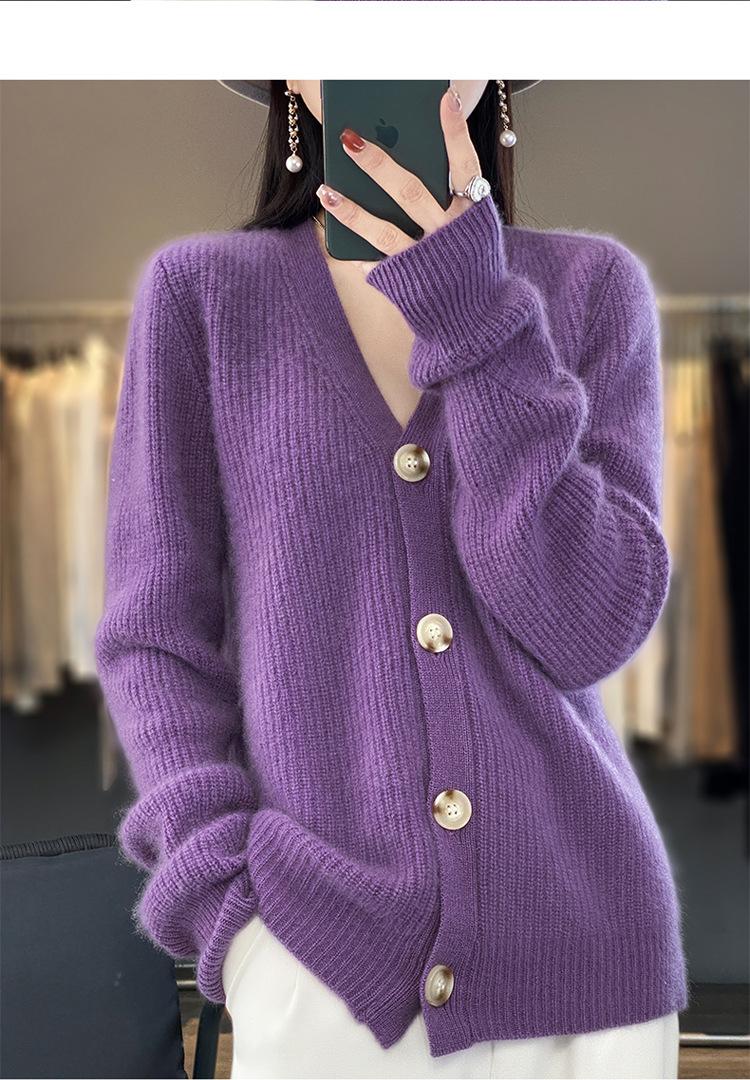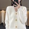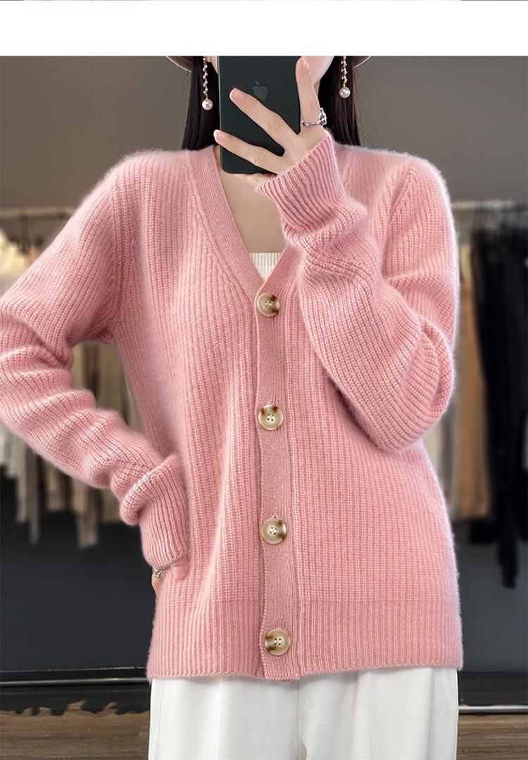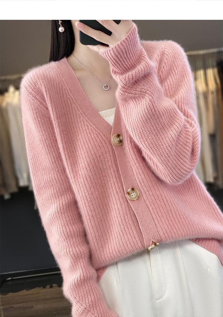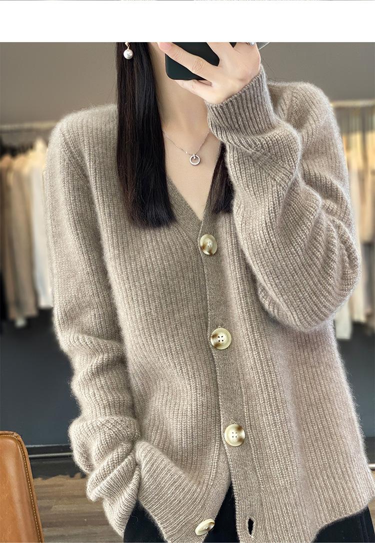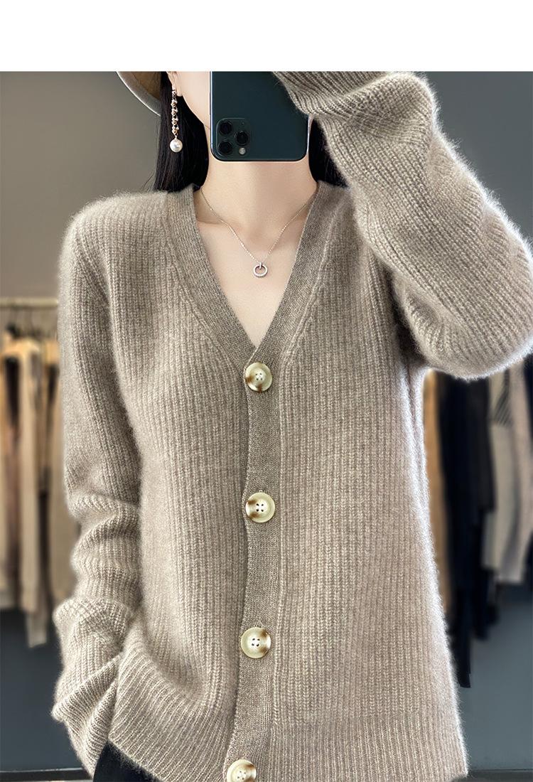 Cárdigan de punto para mujer 2023 Otoño Nuevo Suelto Cuello en V Casual Manga Larga Suéter Chaqueta Color Puro Top Camisa para Fondo