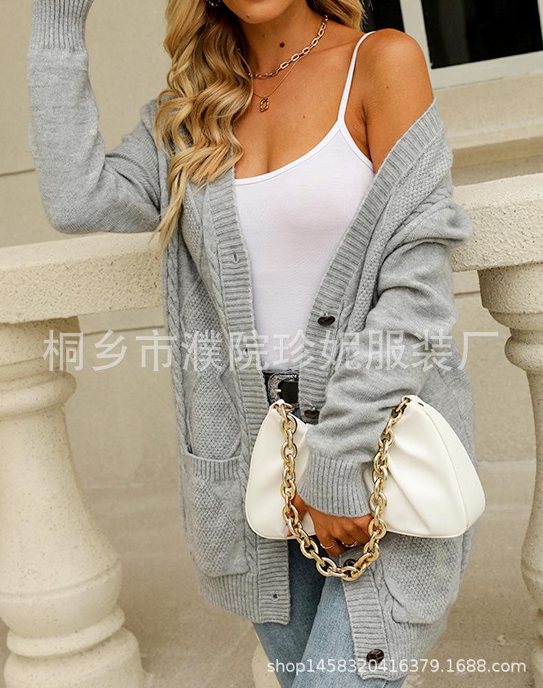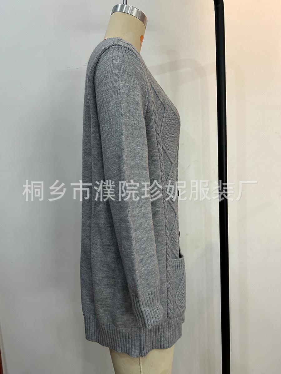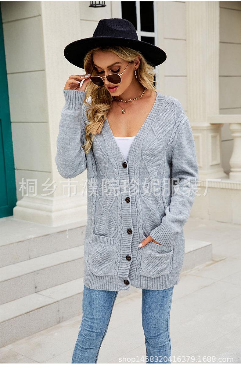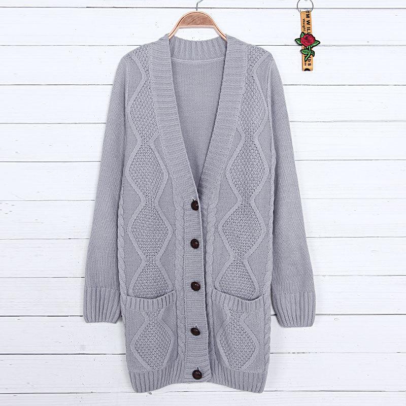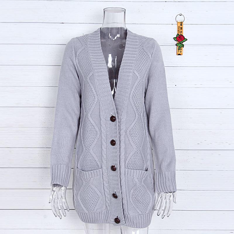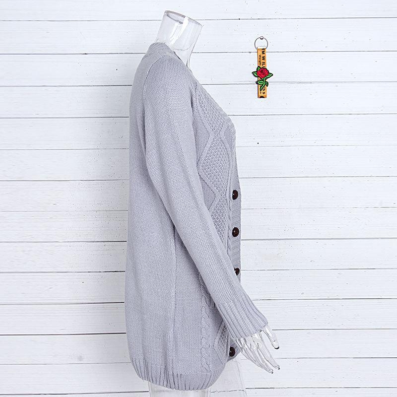 Suéter Amazon Abrigo Medio Largo para Mujer Largo Color Sólido Tejido de Cable Cárdigan con Botones Manga Larga Estilo Británico Versátil