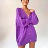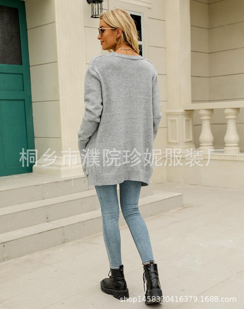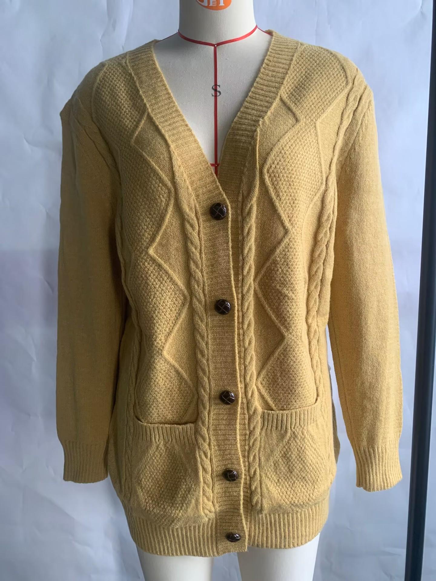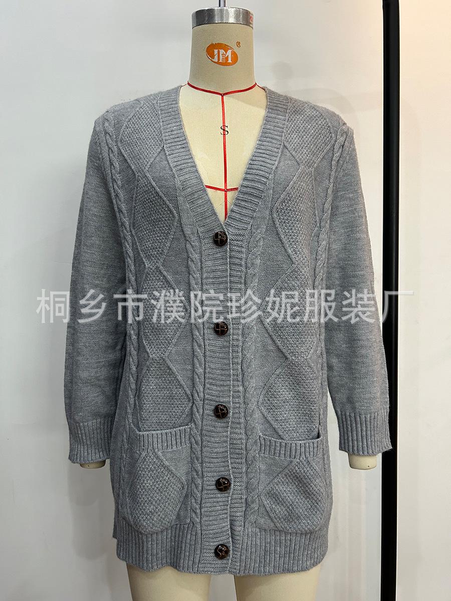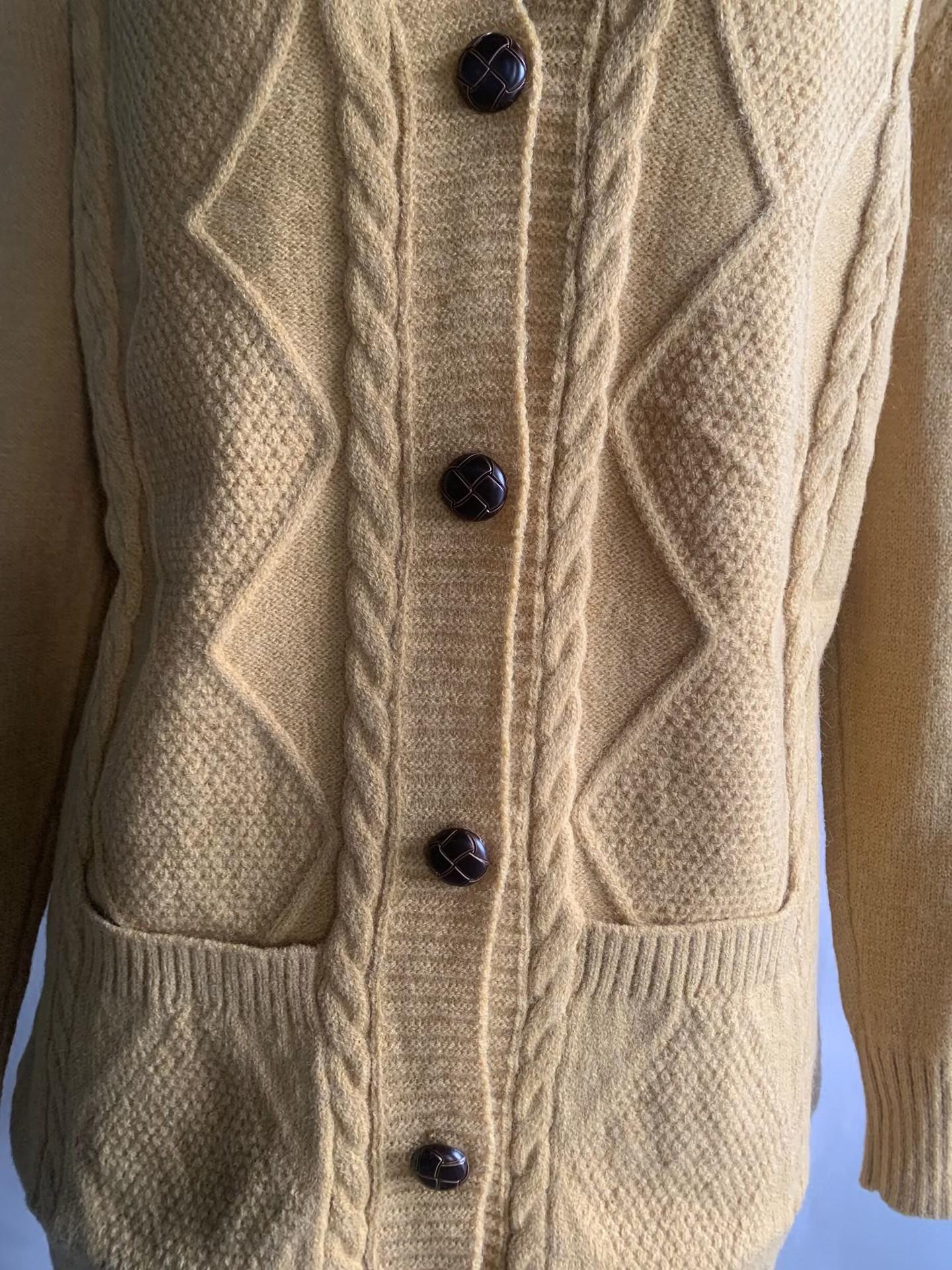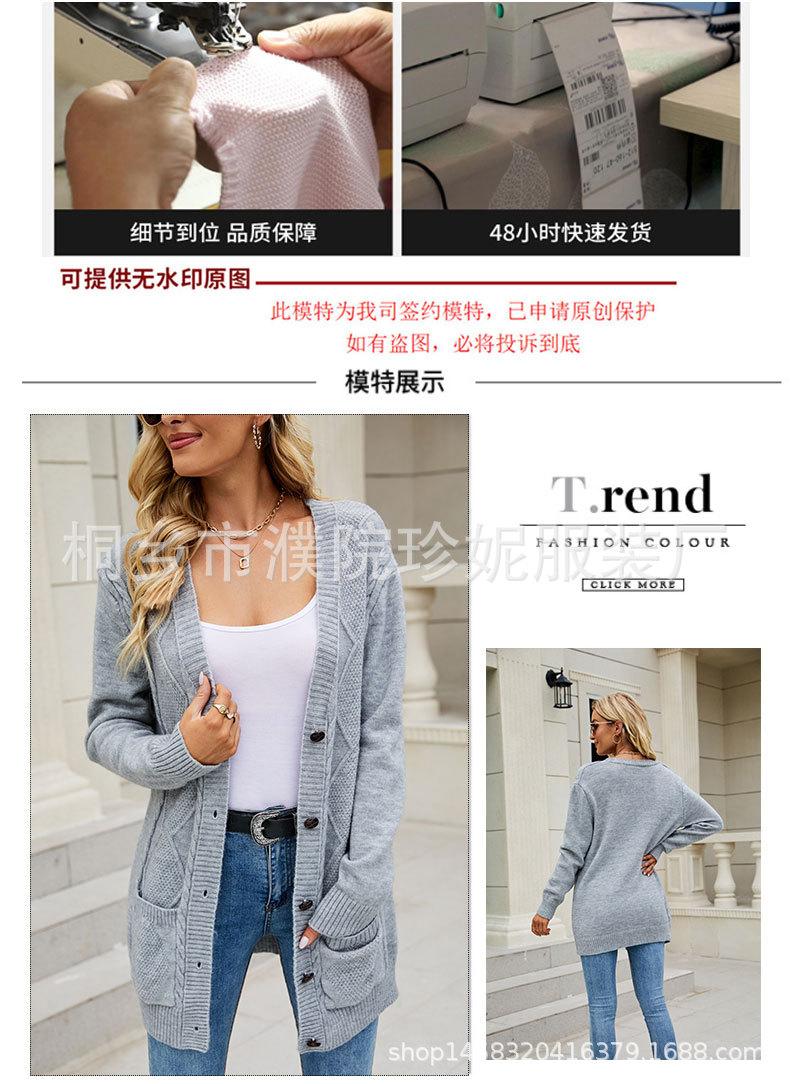 Suéter Amazon Abrigo Medio Largo para Mujer Largo Color Sólido Tejido de Cable Cárdigan con Botones Manga Larga Estilo Británico Versátil
