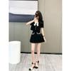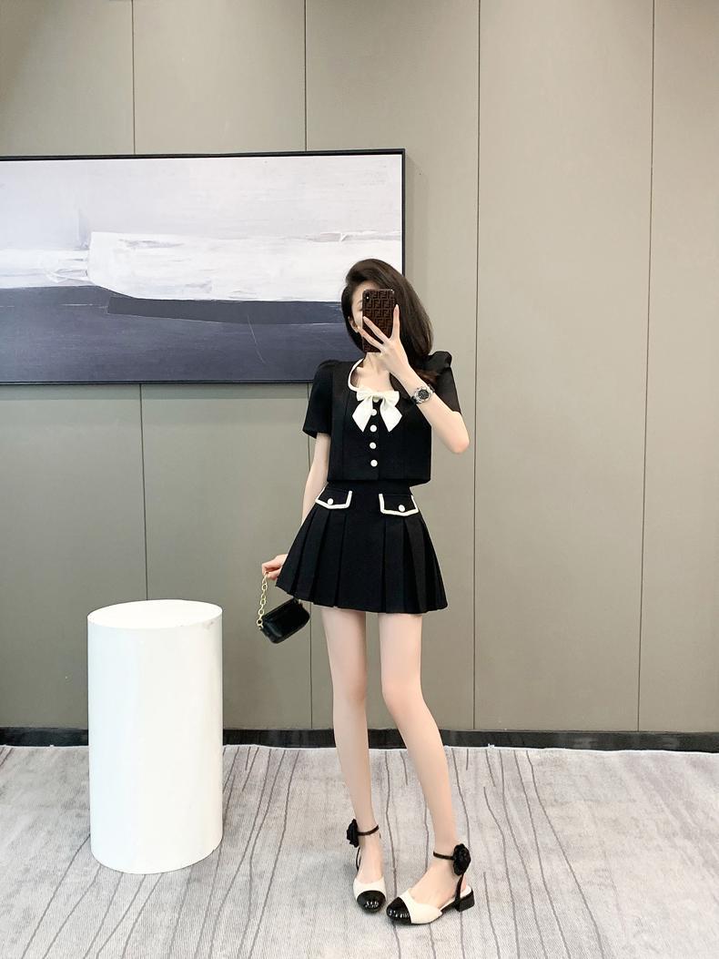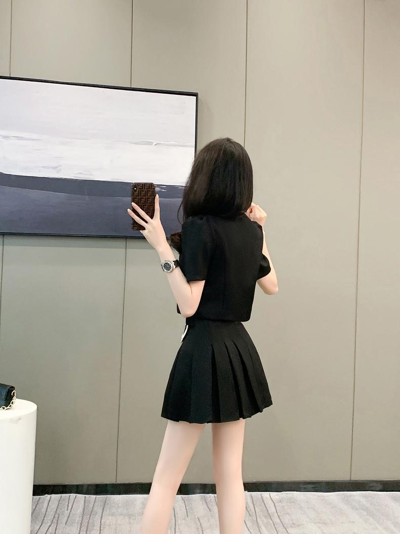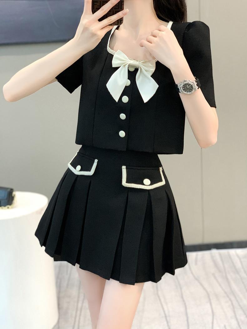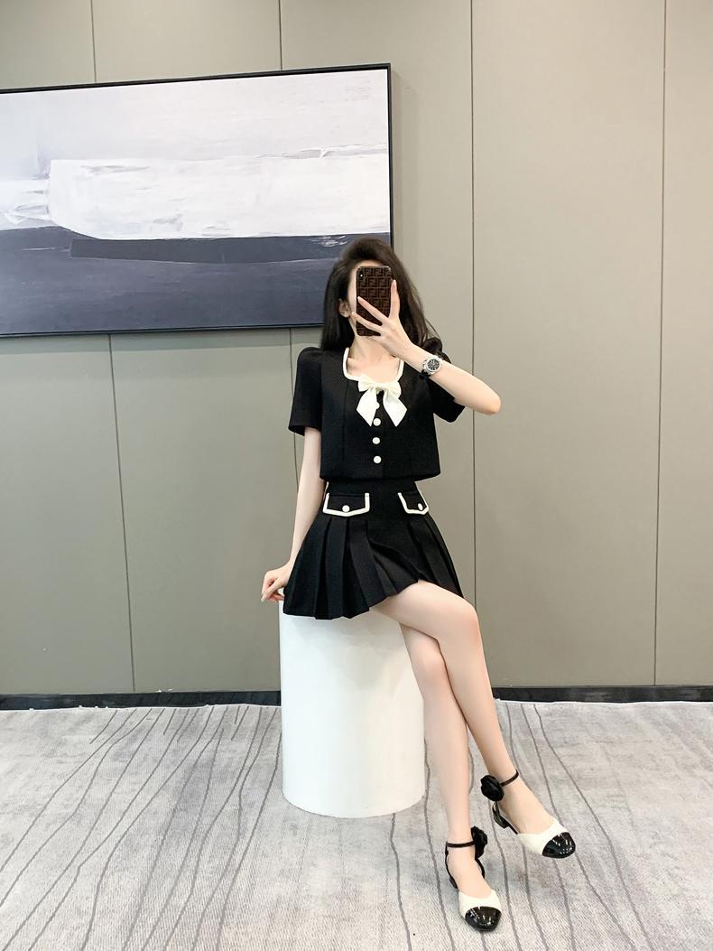 Abrigo Corto Estilo Lazo Chanel Negro Verano Nuevo Falda Adelgazante de Cintura Alta Traje Elegante de Alta Gama para Mujer