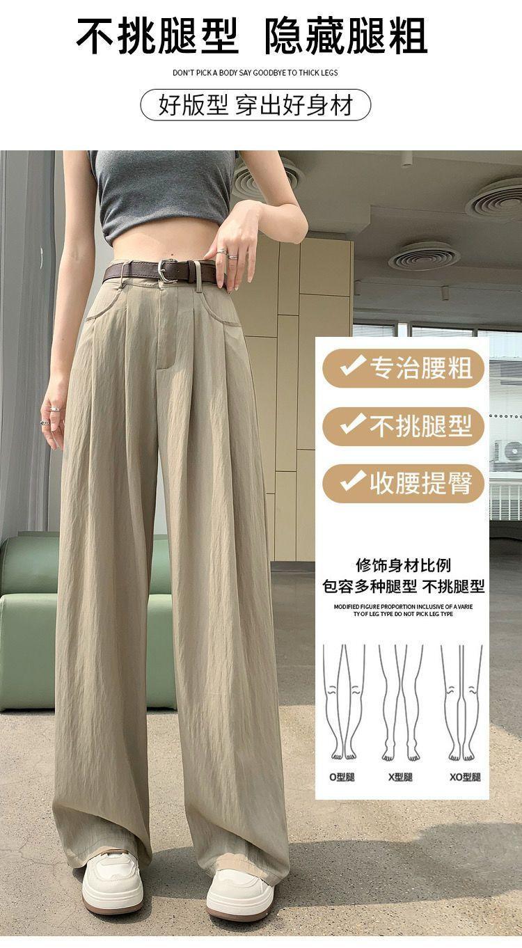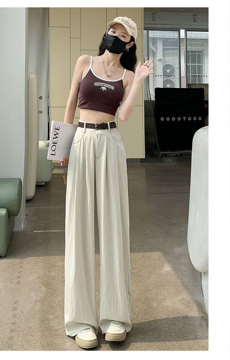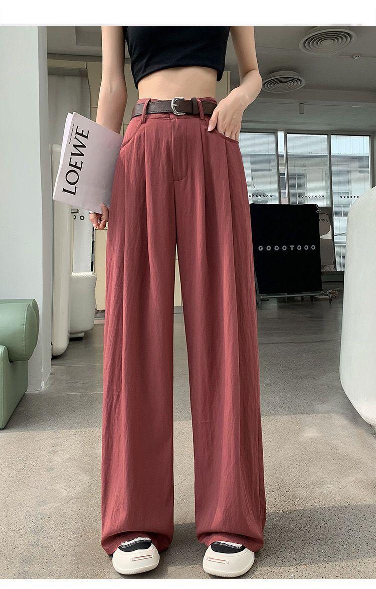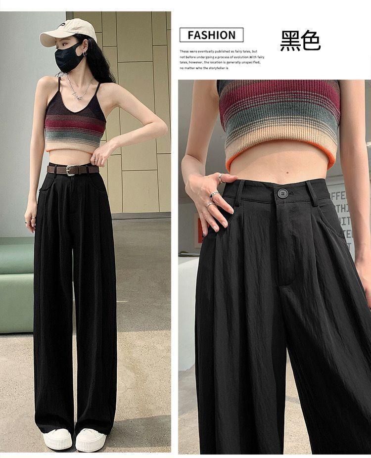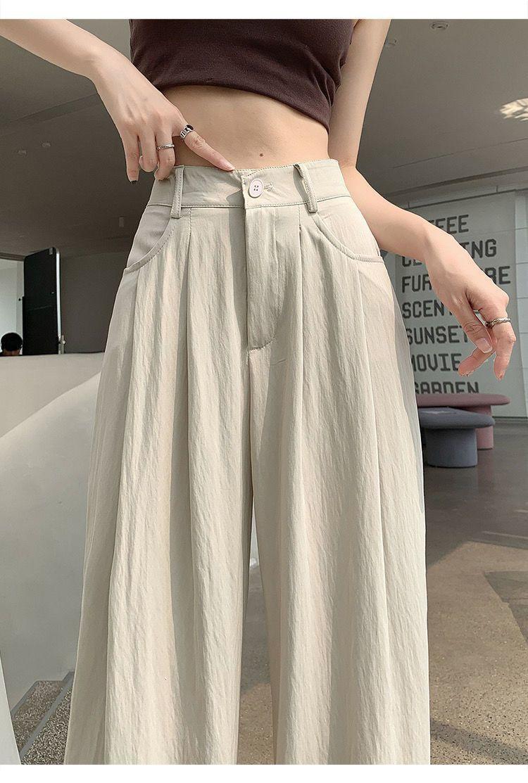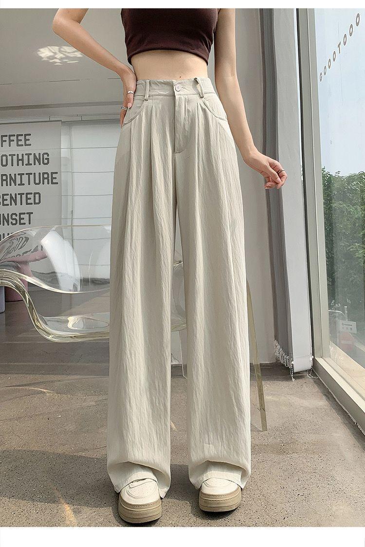 Pantalones delgados de pierna ancha para mujer Casuales holgados tipo traje 2024 Verano Cintura alta Drapeados Holgados Elegantes para ir al trabajo