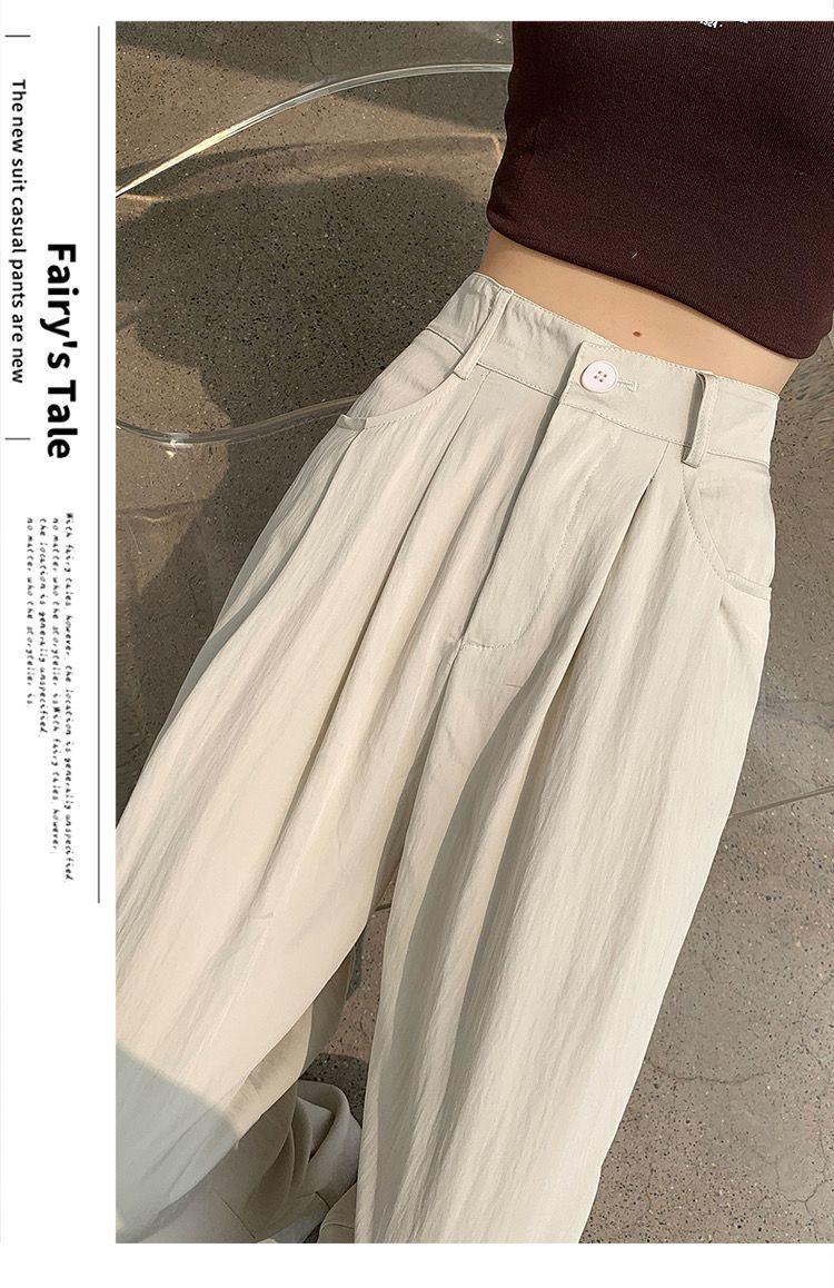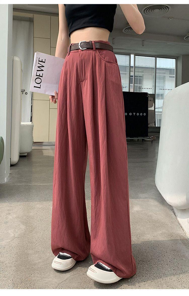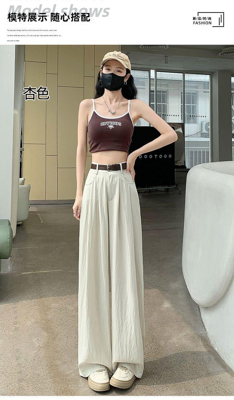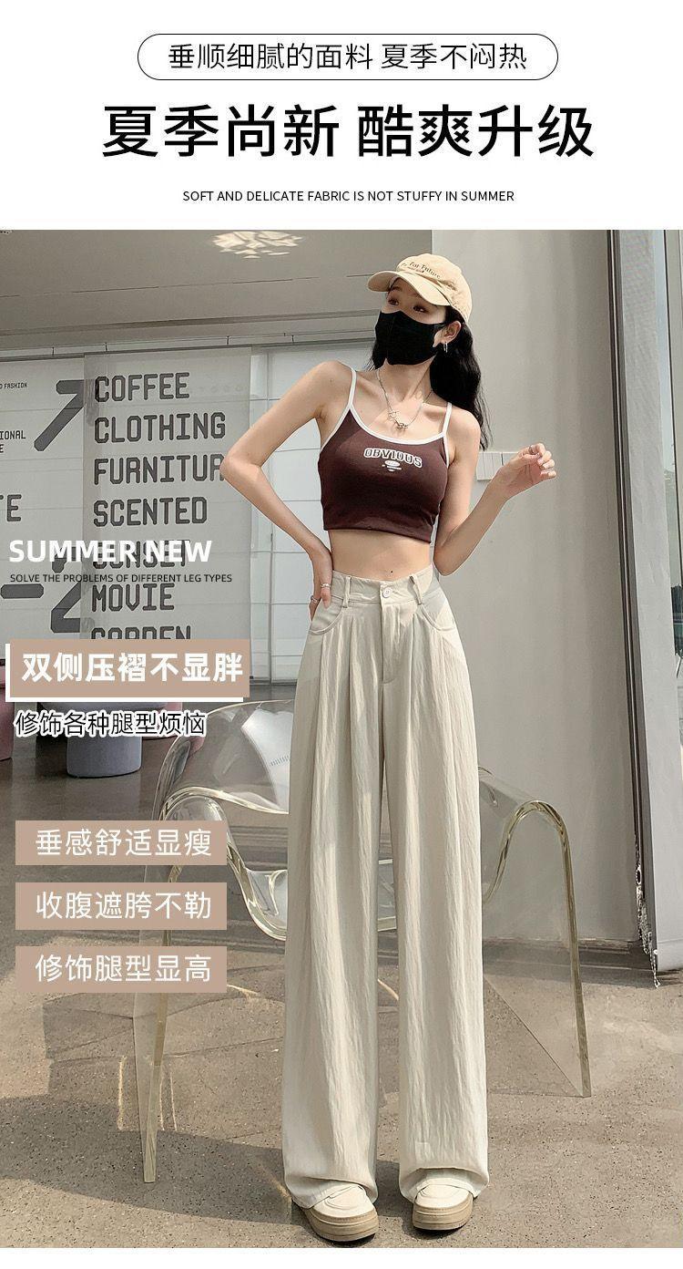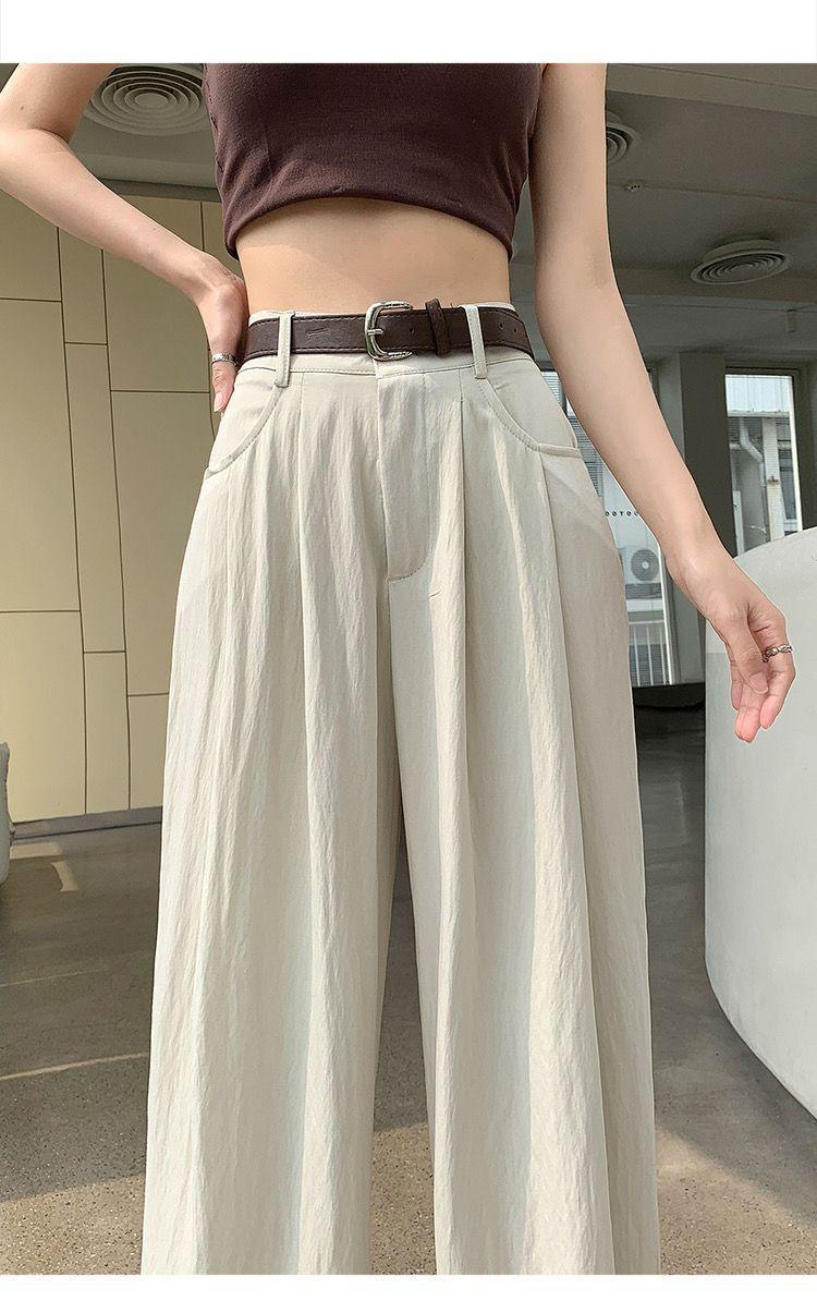 Pantalones delgados de pierna ancha para mujer Casuales holgados tipo traje 2024 Verano Cintura alta Drapeados Holgados Elegantes para ir al trabajo
