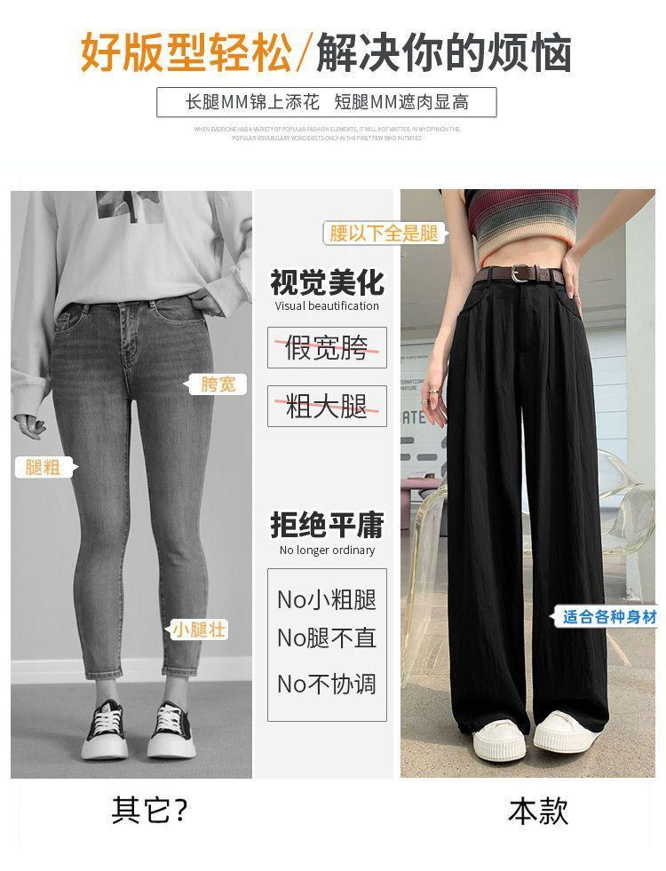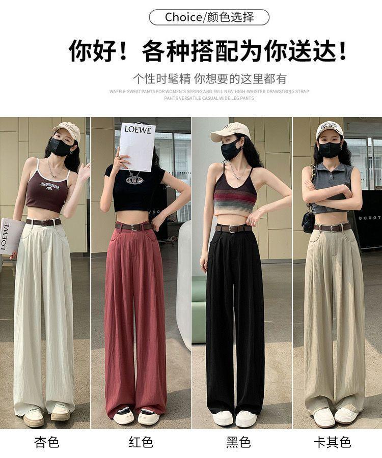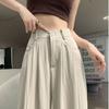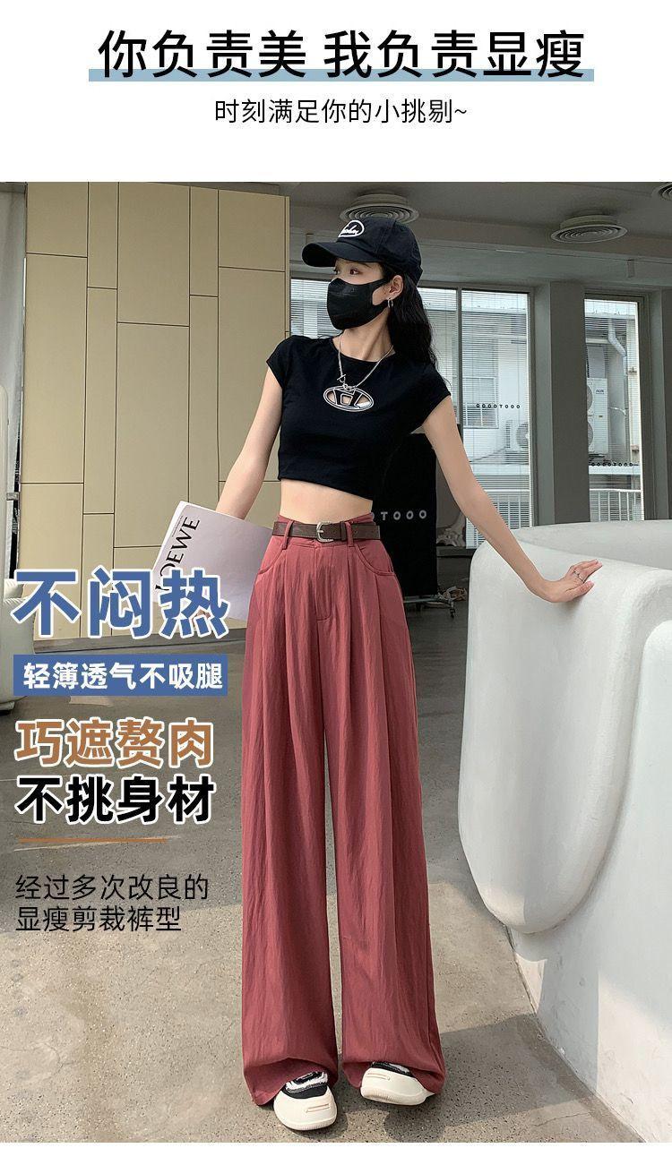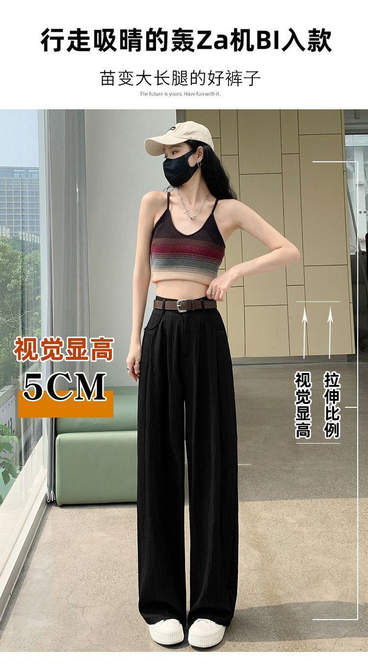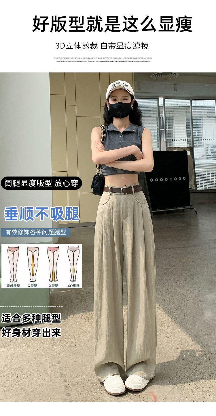Pantalones delgados de pierna ancha para mujer Casuales holgados tipo traje 2024 Verano Cintura alta Drapeados Holgados Elegantes para ir al trabajo