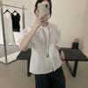 Camisa de manga larga con encaje francés, suave, cómoda, combinable, elegante, a la moda, romántica, con costuras de encaje
