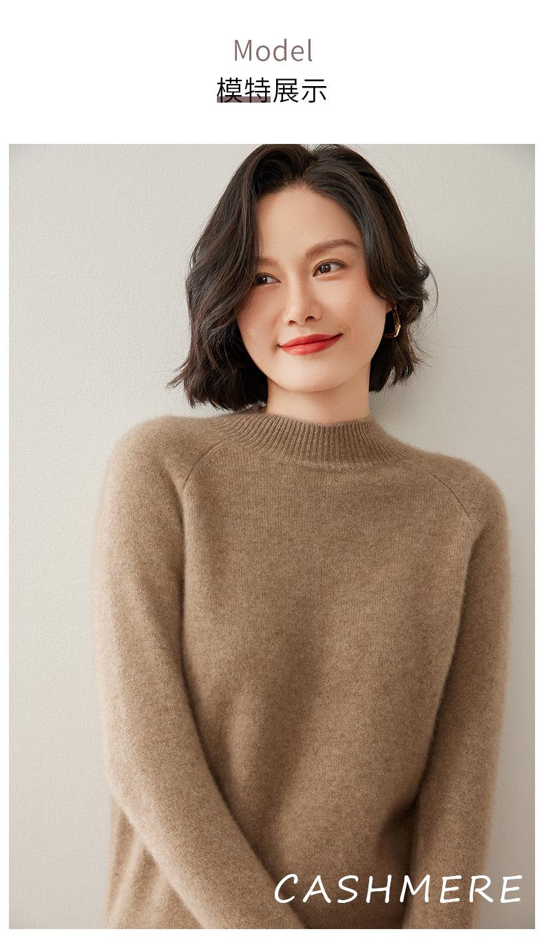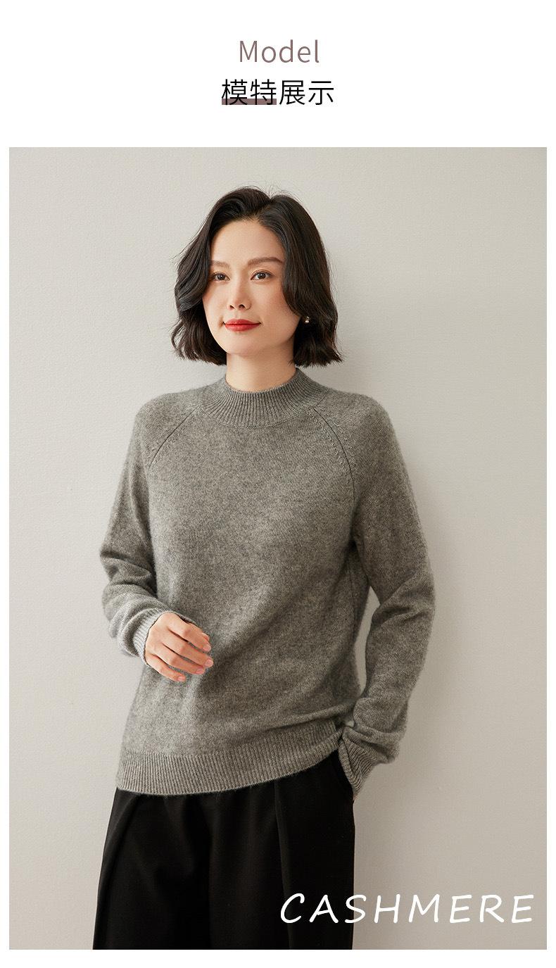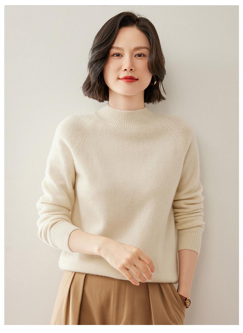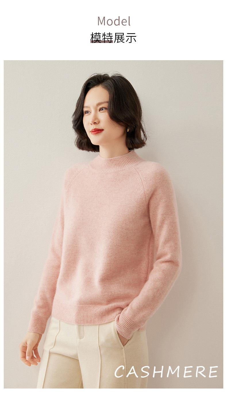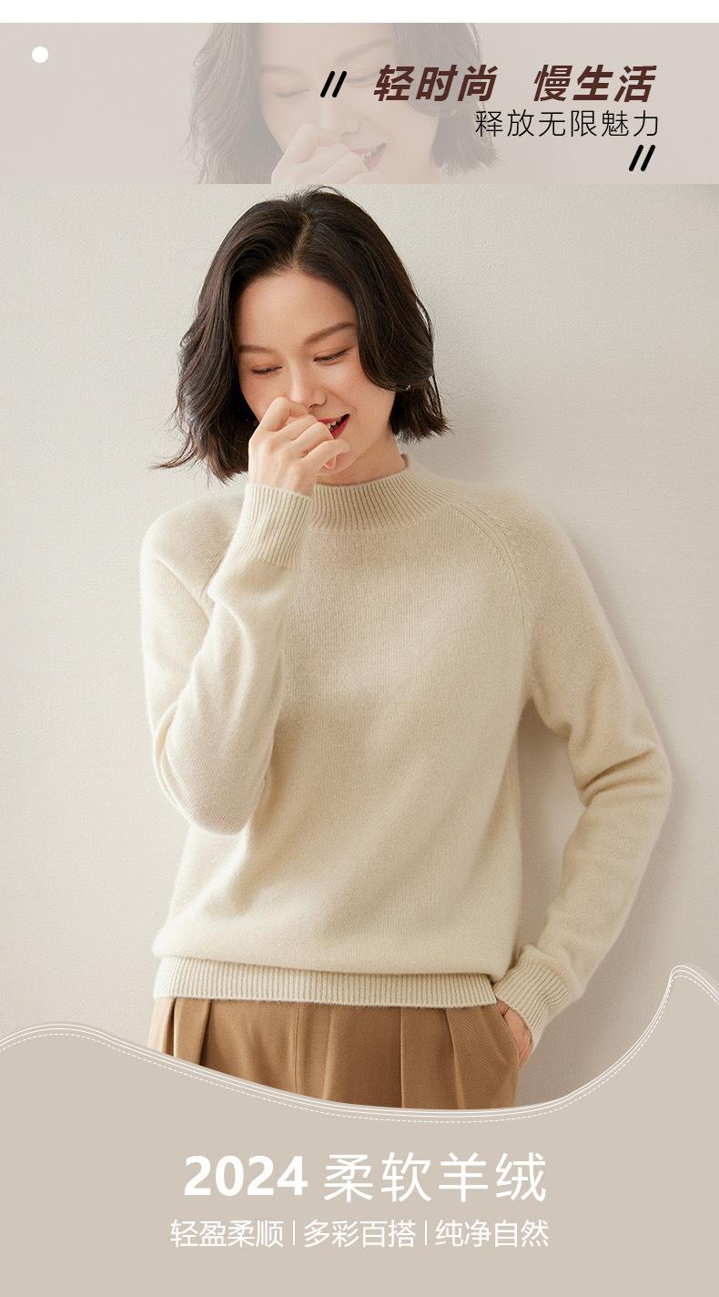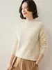Suéter de cachemira sencillo y versátil con cuello medio alto para mujer, otoño e invierno 2024, nuevo estilo, color liso, elegante y sencillo.