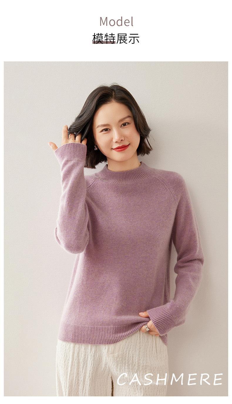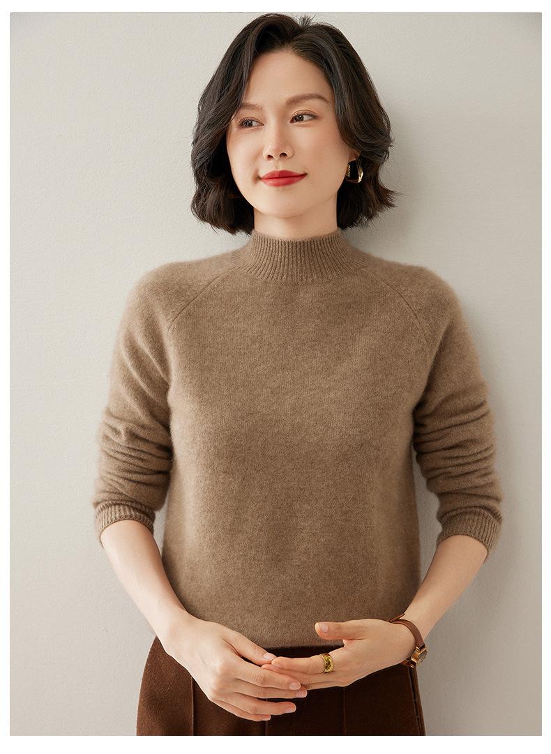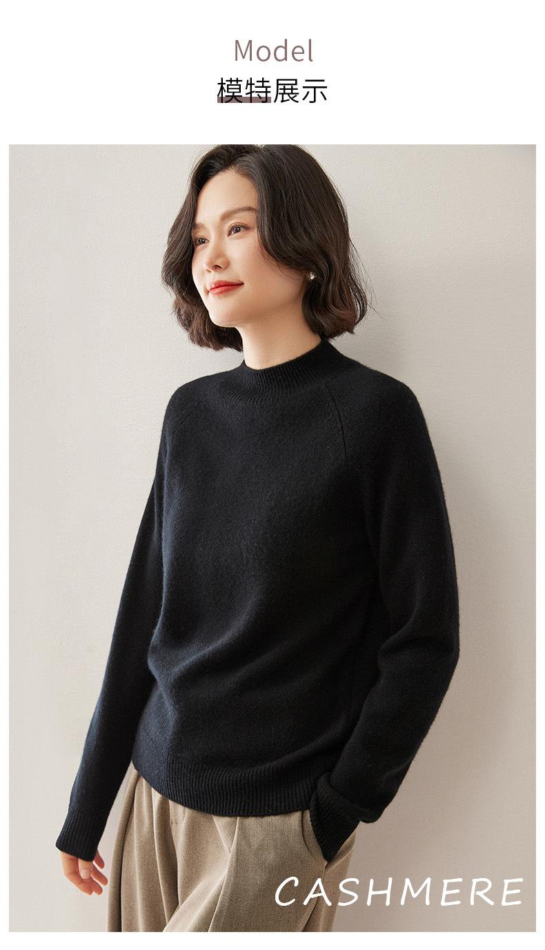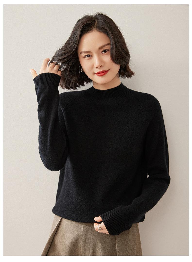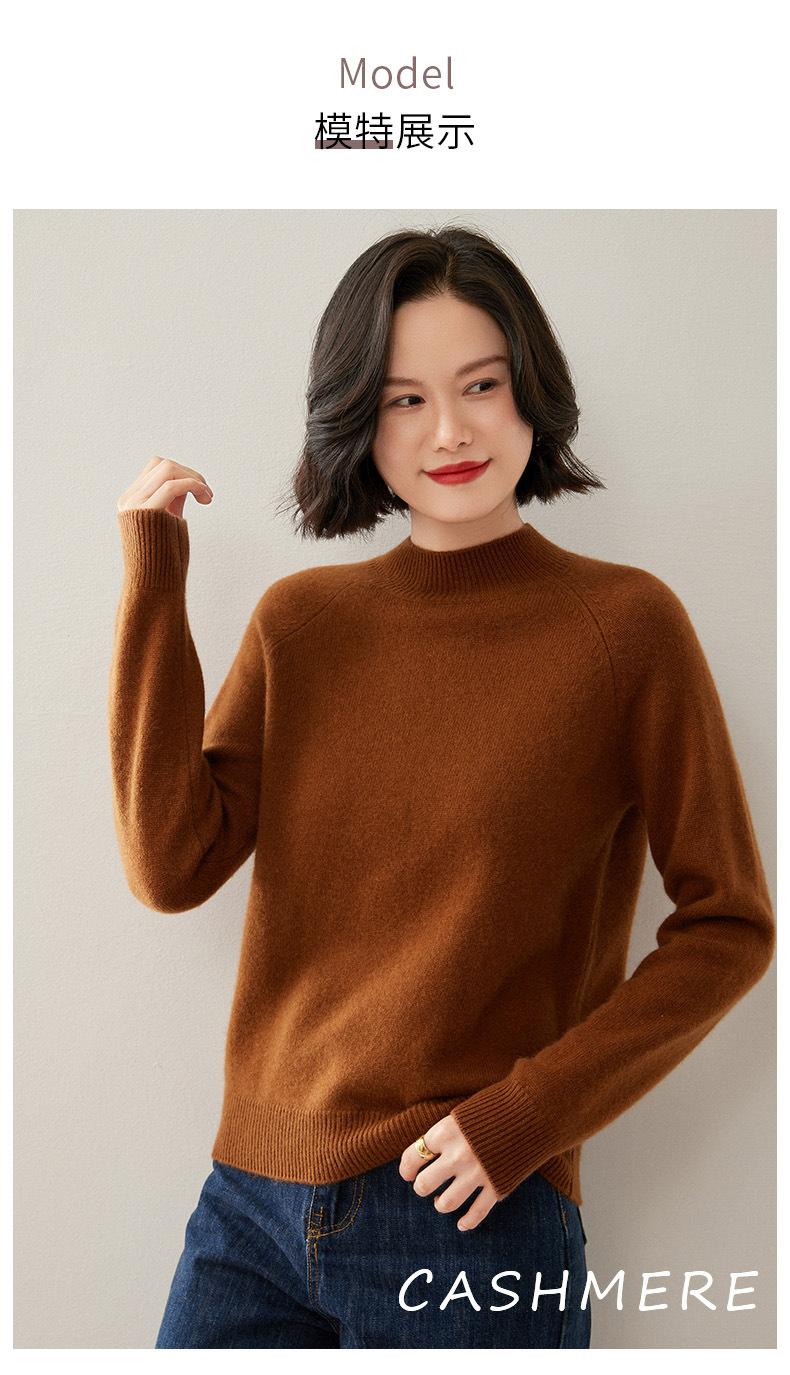 Suéter de cachemira sencillo y versátil con cuello medio alto para mujer, otoño e invierno 2024, nuevo estilo, color liso, elegante y sencillo.