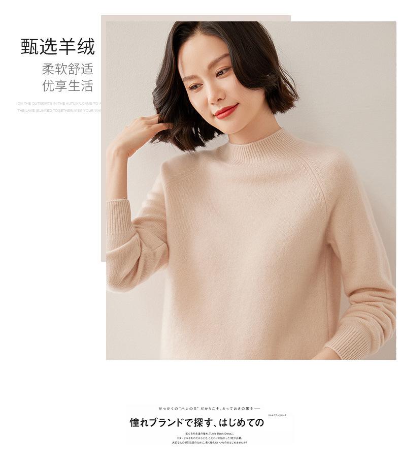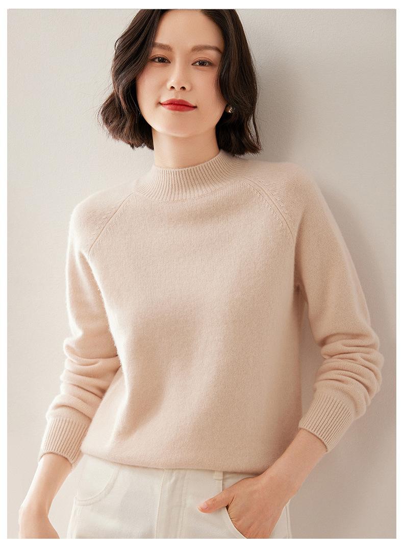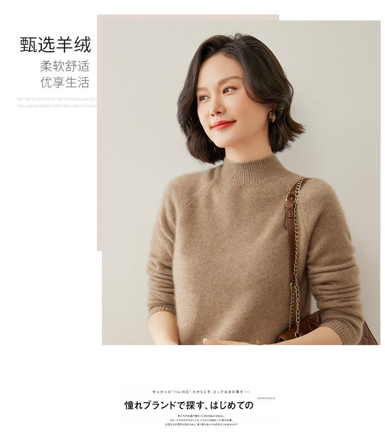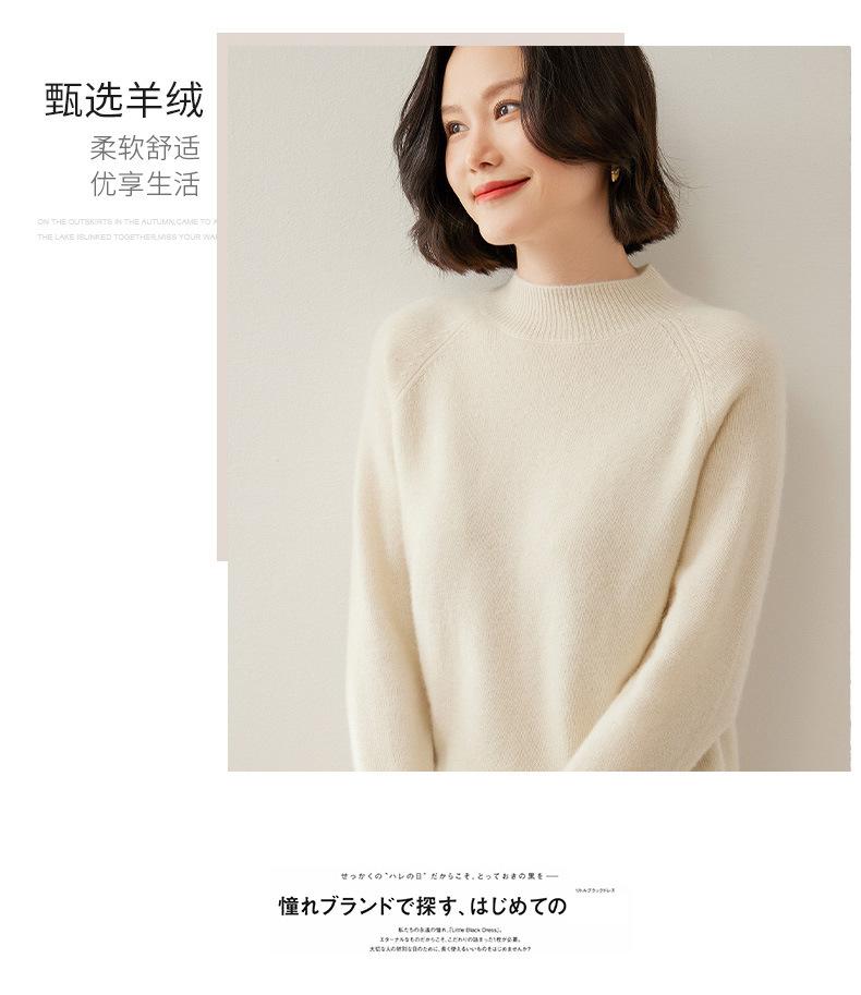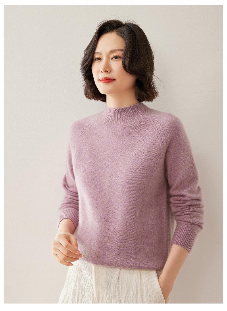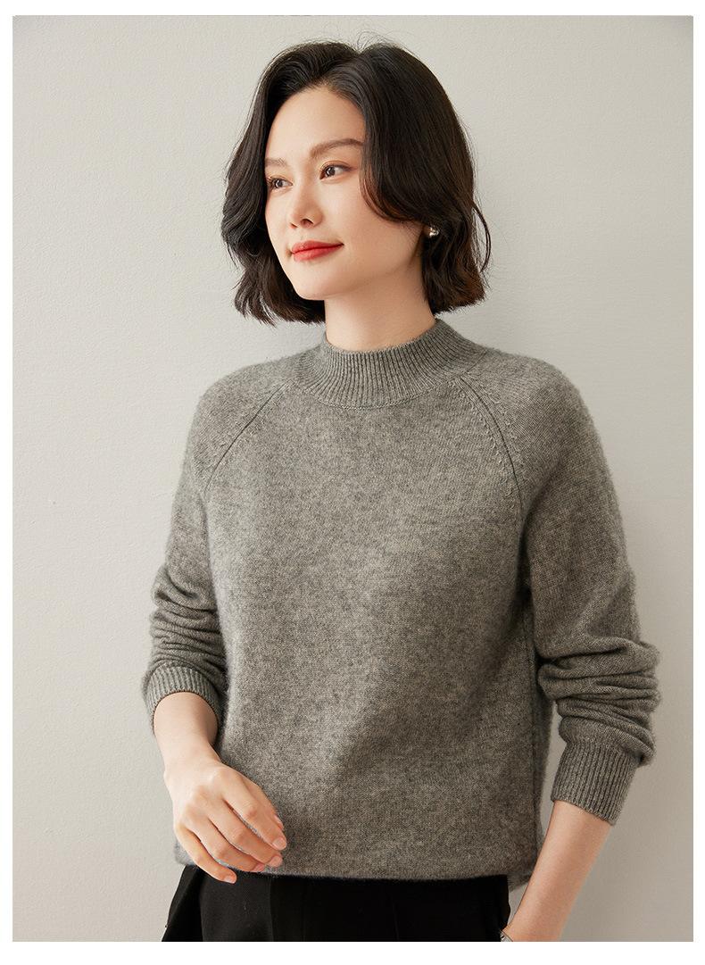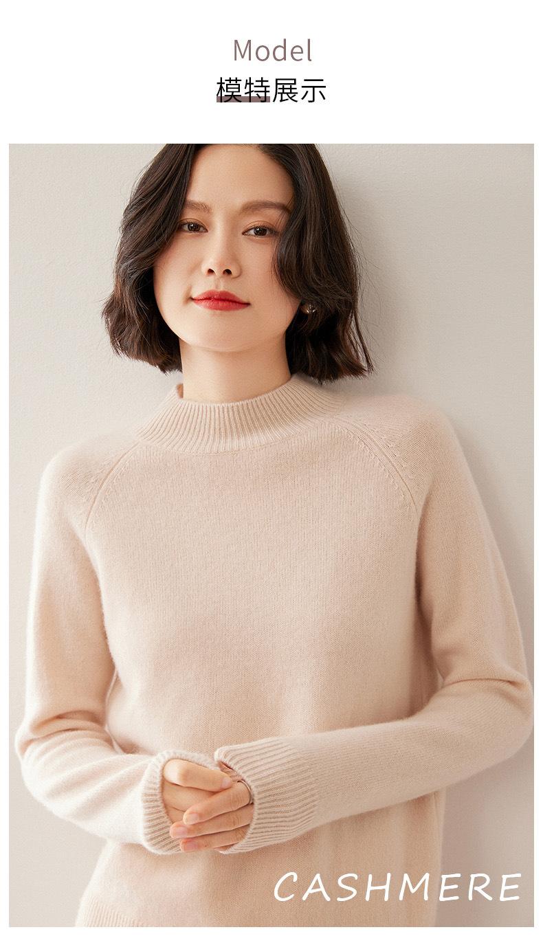 Suéter de cachemira sencillo y versátil con cuello medio alto para mujer, otoño e invierno 2024, nuevo estilo, color liso, elegante y sencillo.