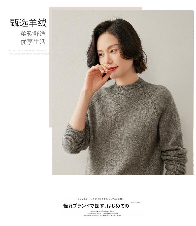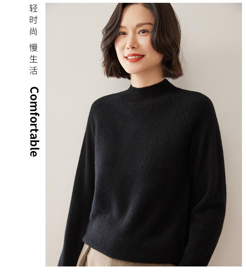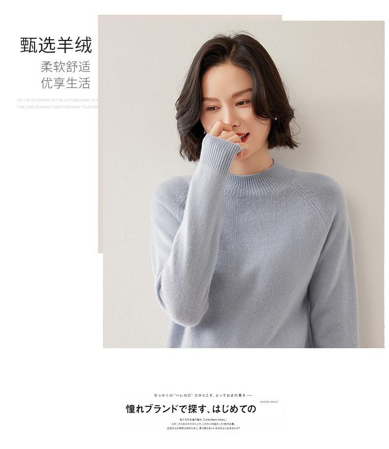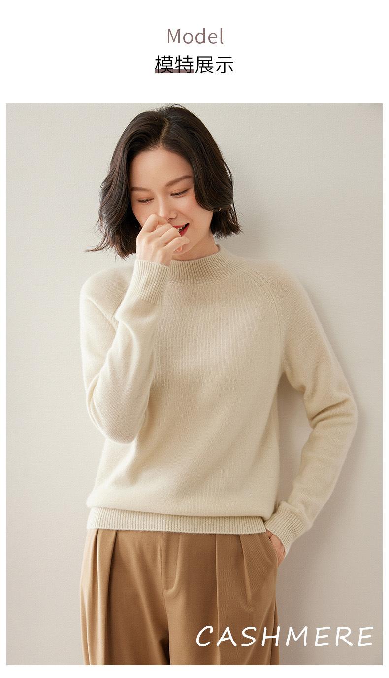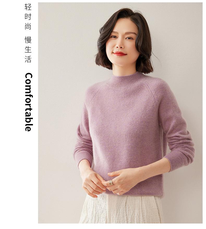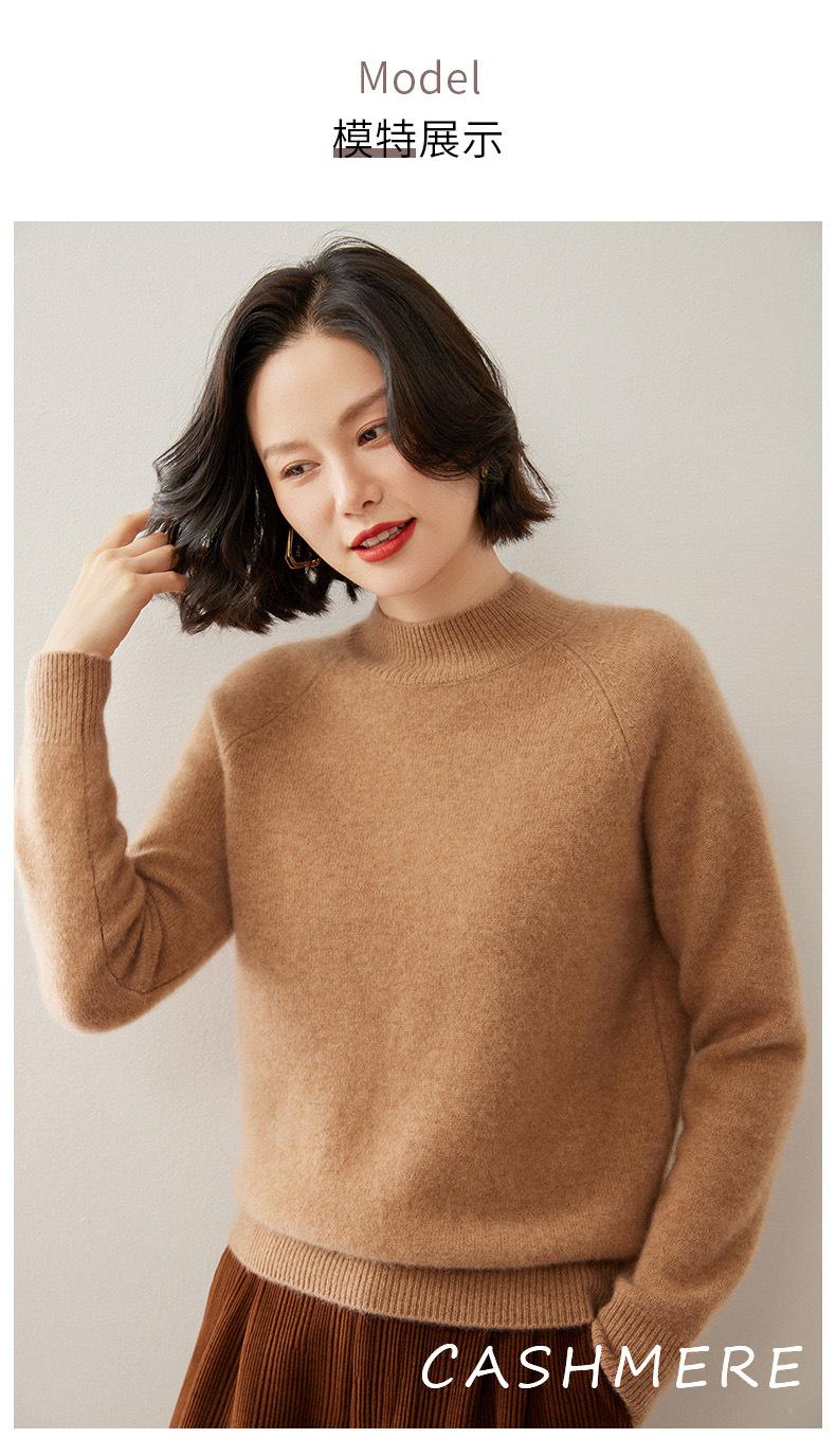 Suéter de cachemira sencillo y versátil con cuello medio alto para mujer, otoño e invierno 2024, nuevo estilo, color liso, elegante y sencillo.