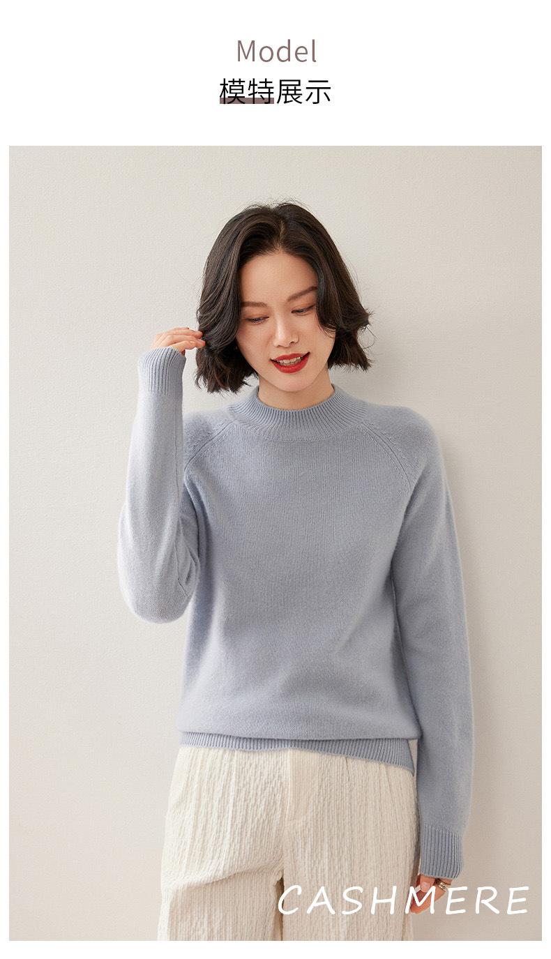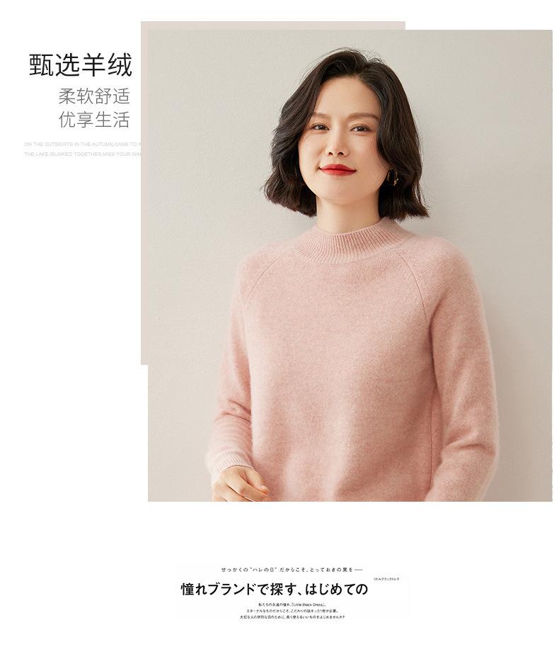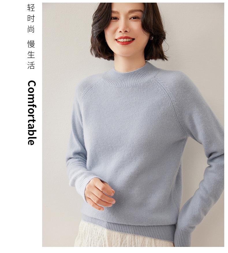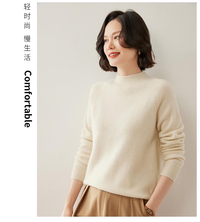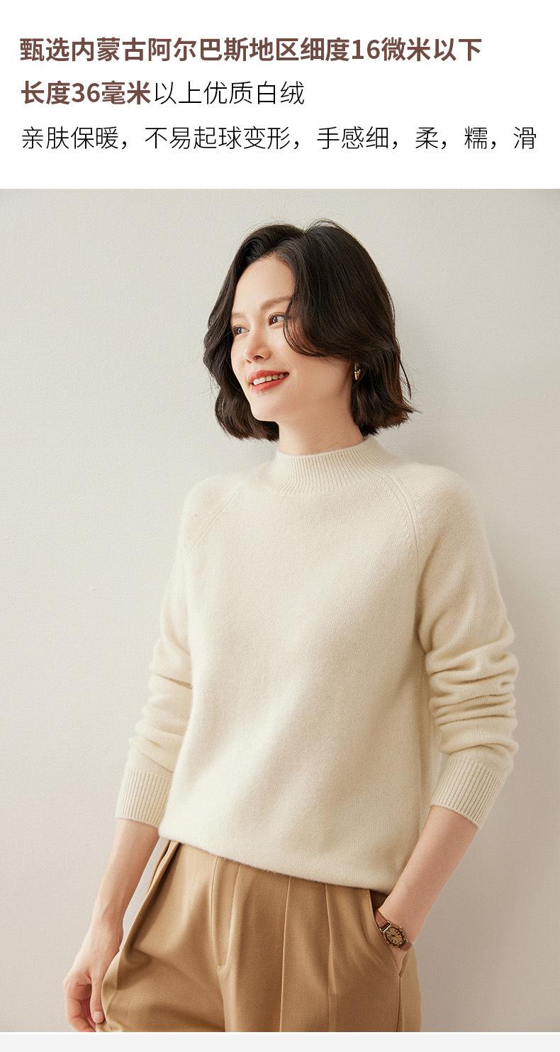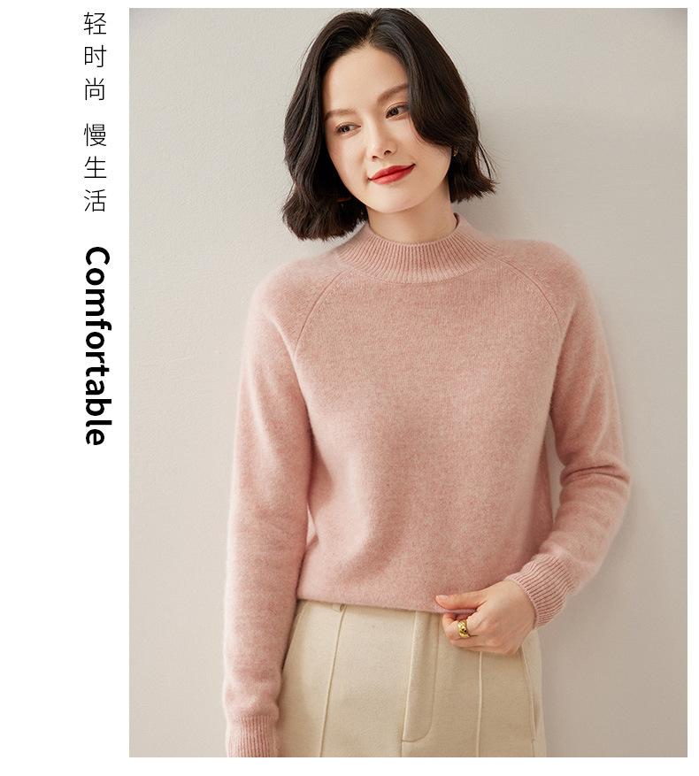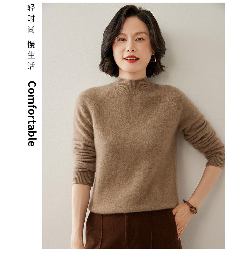 Suéter de cachemira sencillo y versátil con cuello medio alto para mujer, otoño e invierno 2024, nuevo estilo, color liso, elegante y sencillo.