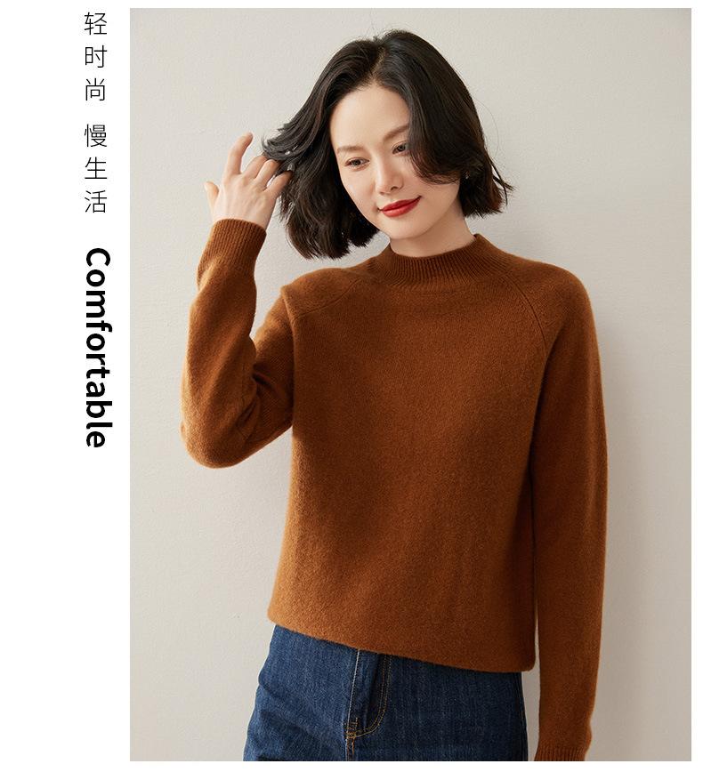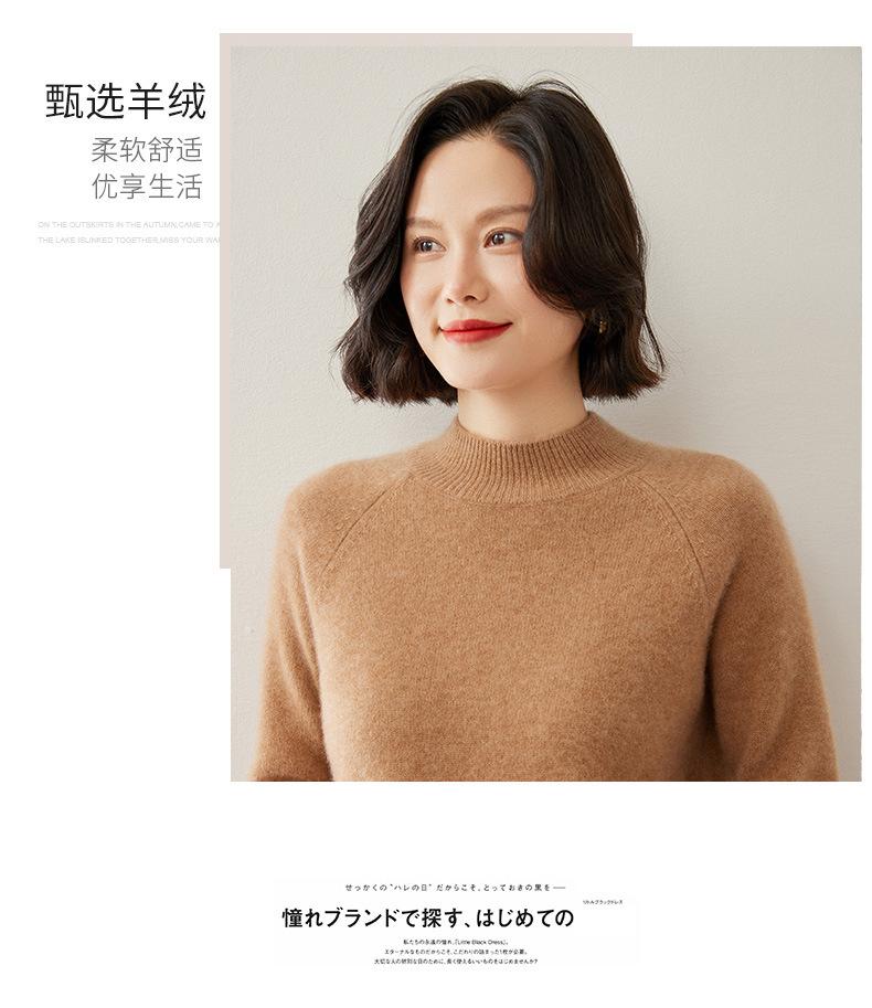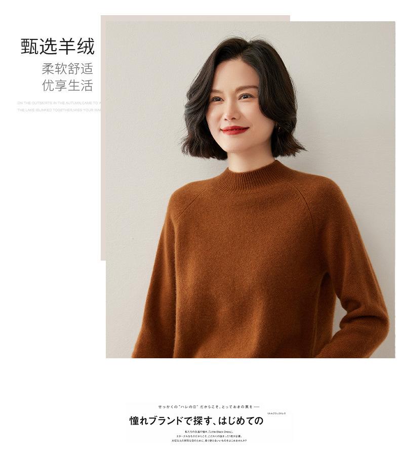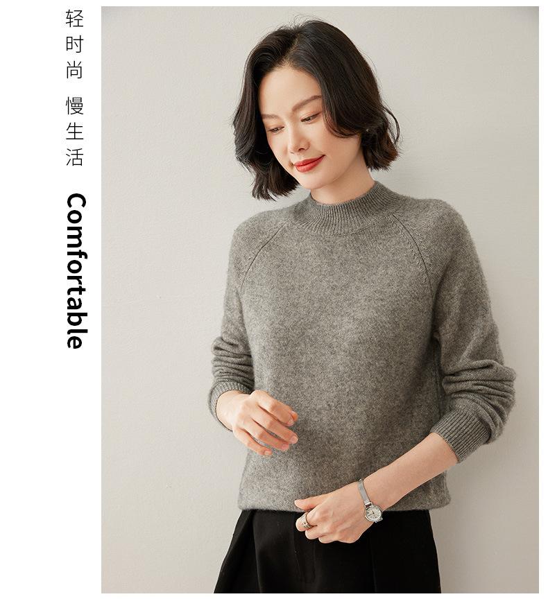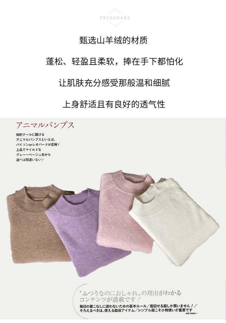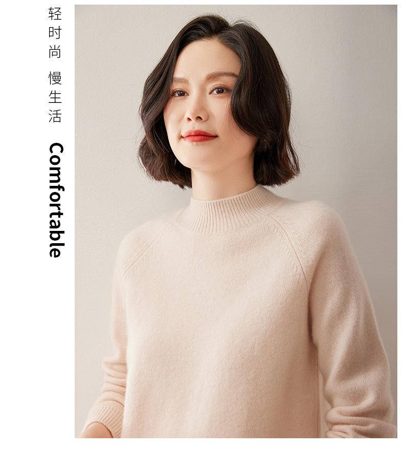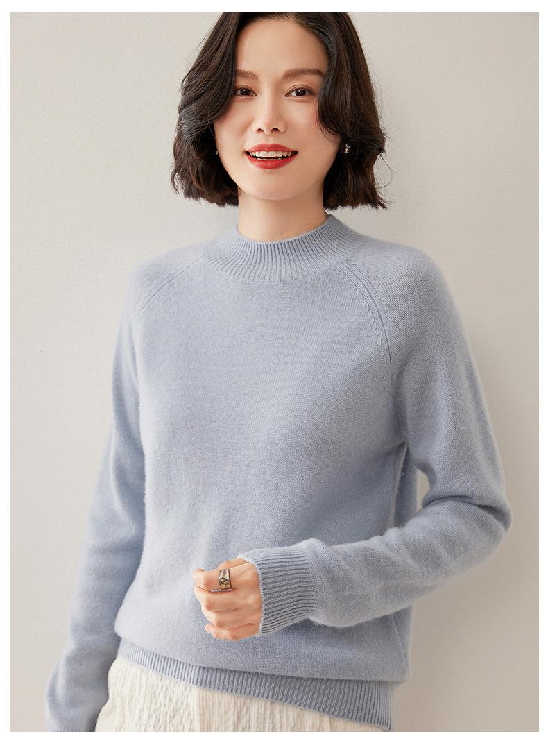 Suéter de cachemira sencillo y versátil con cuello medio alto para mujer, otoño e invierno 2024, nuevo estilo, color liso, elegante y sencillo.