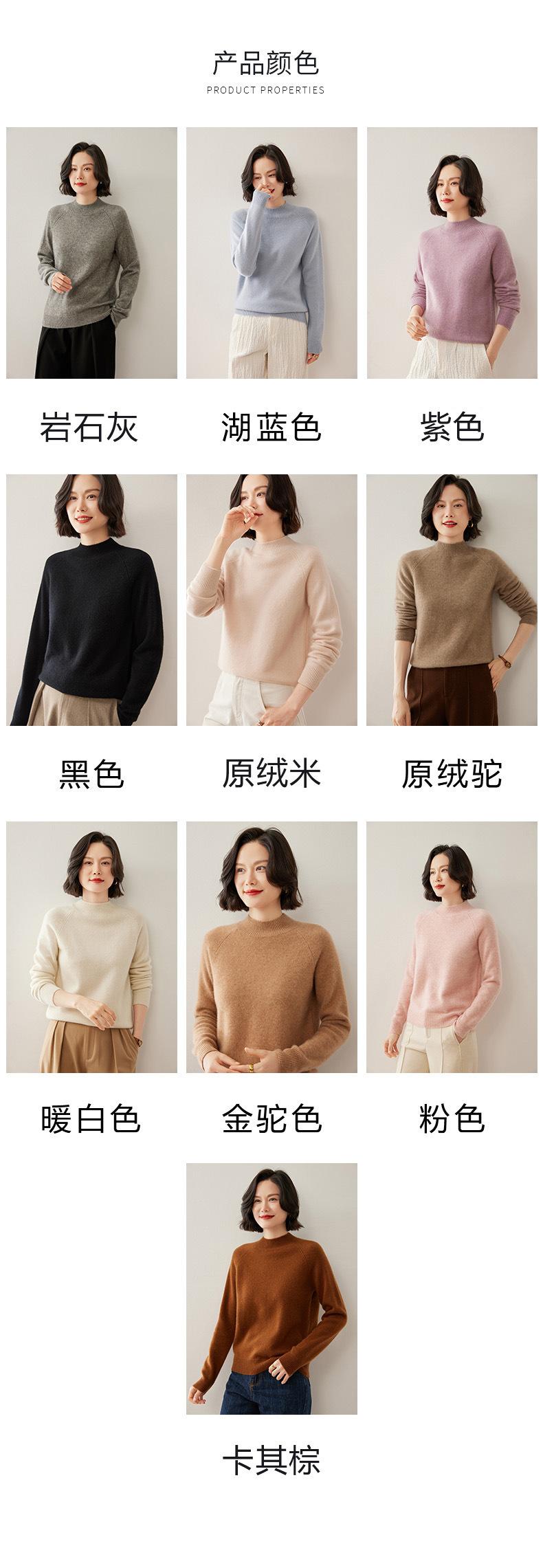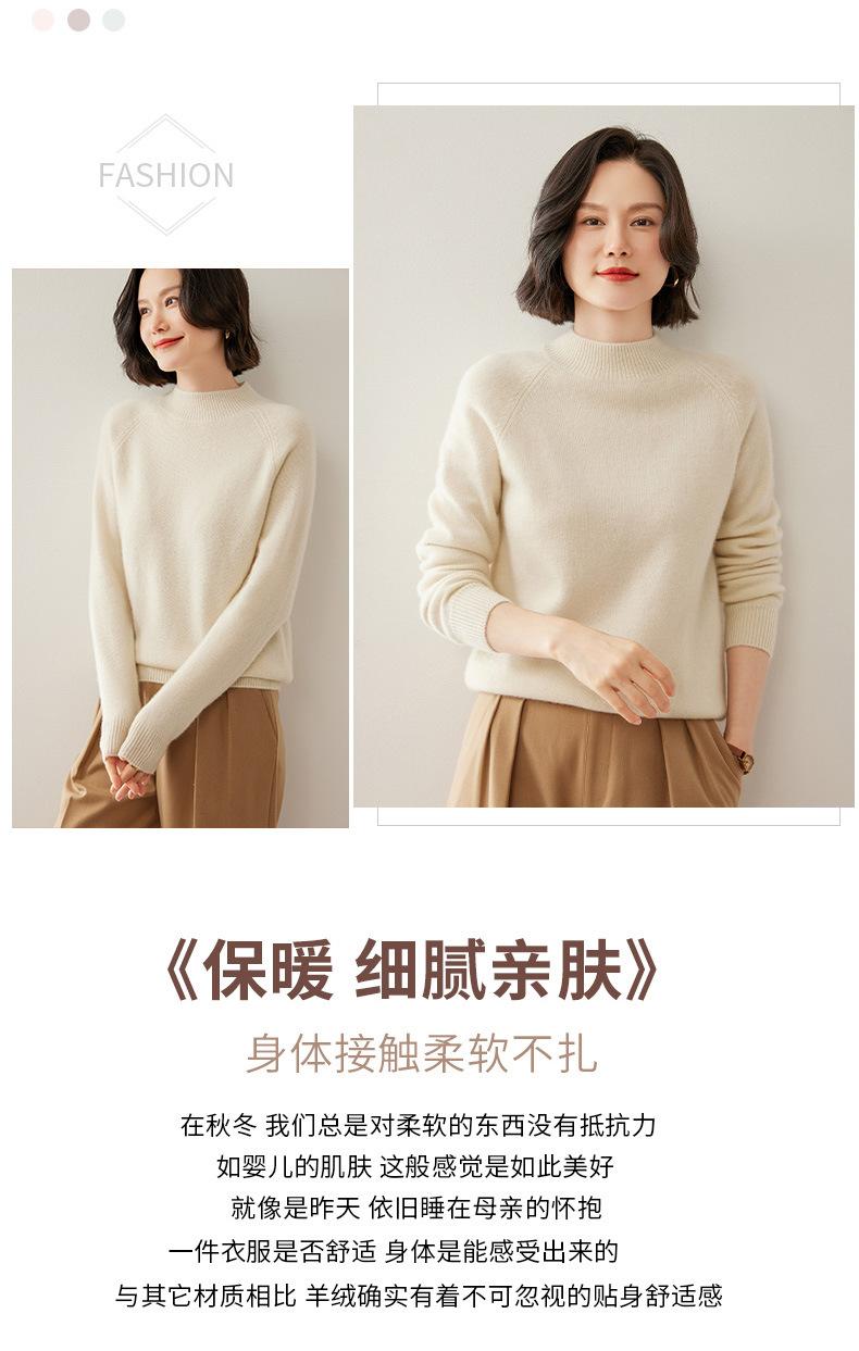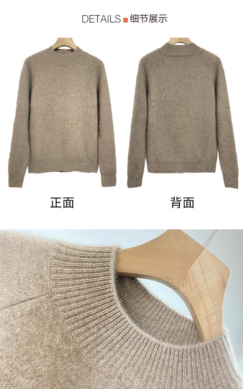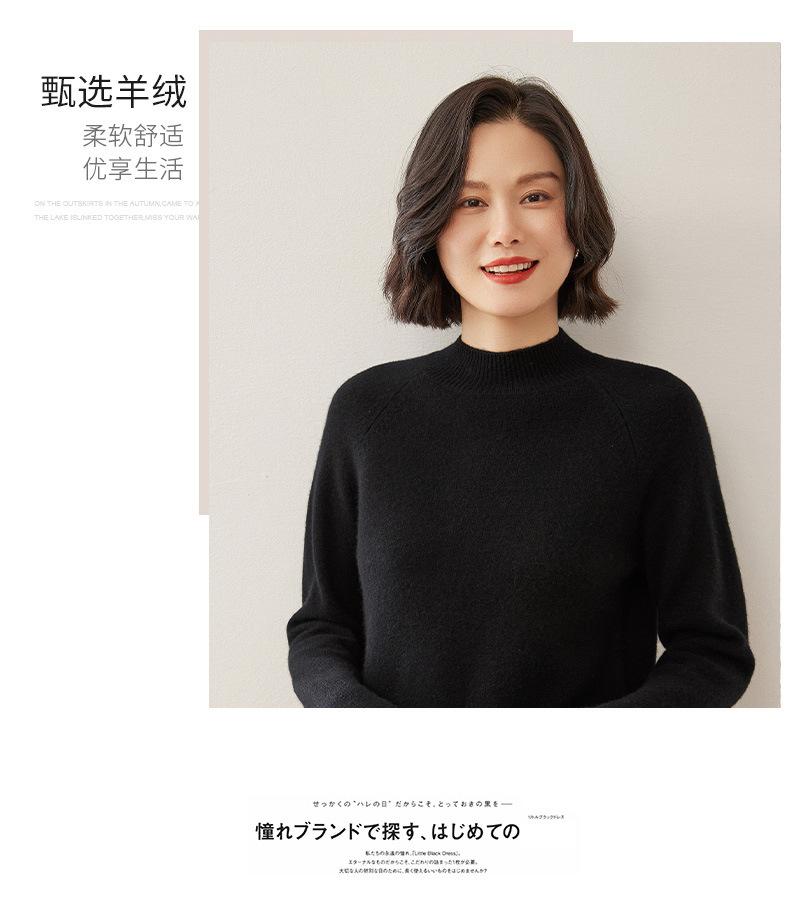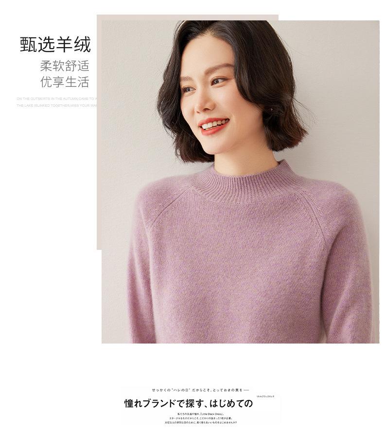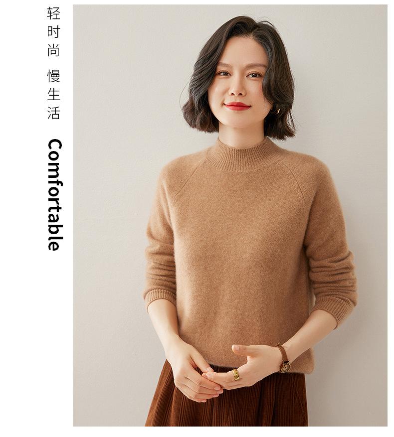 Suéter de cachemira sencillo y versátil con cuello medio alto para mujer, otoño e invierno 2024, nuevo estilo, color liso, elegante y sencillo.