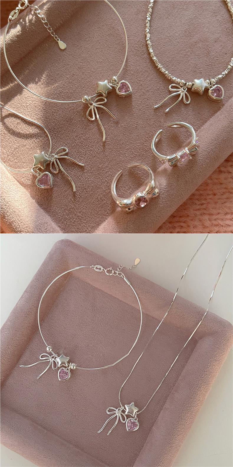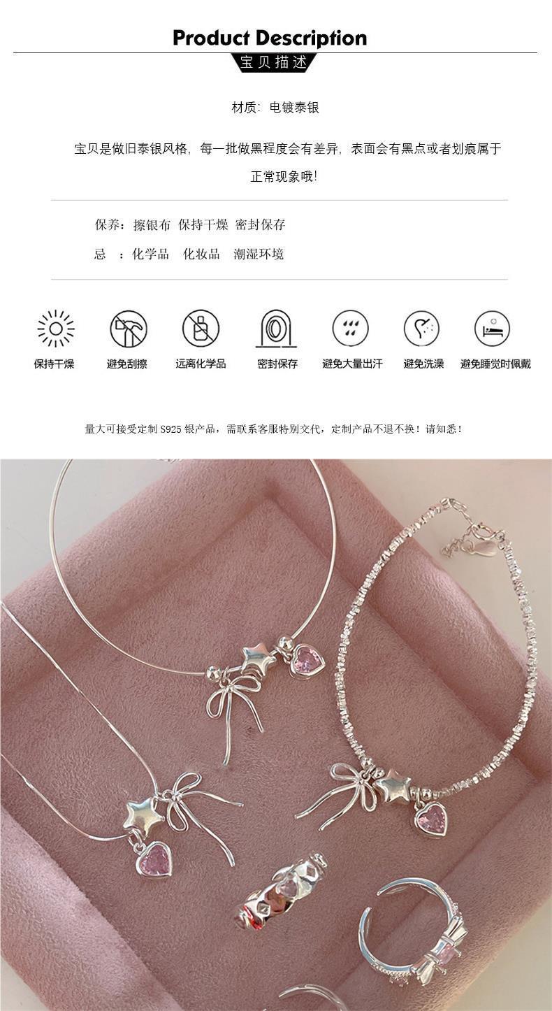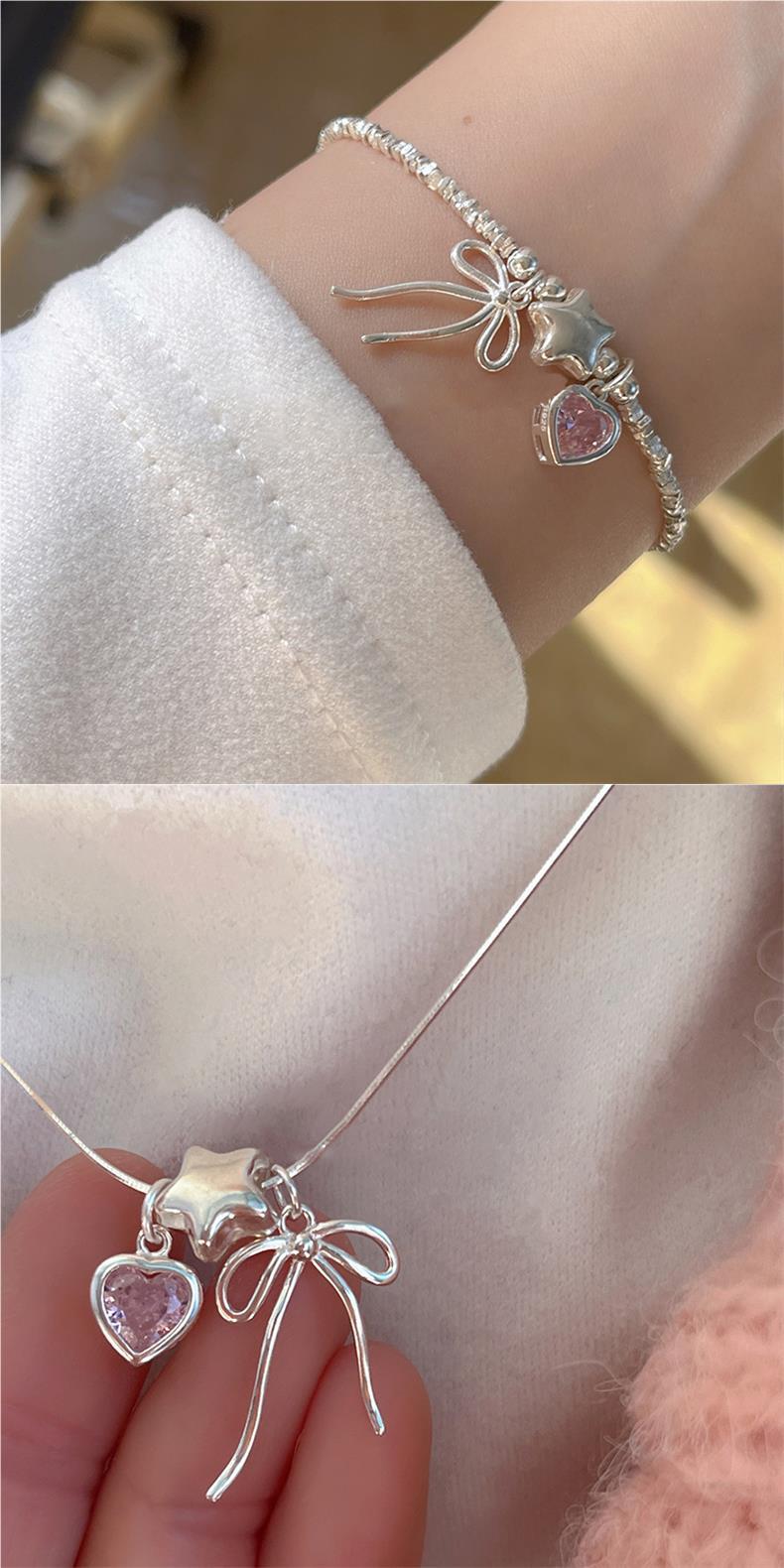 Collar de estrella de amor rosa dulce, elegante y a la moda para mujer, pulsera versátil con cadena de clavícula bañada en plata S925, accesorios