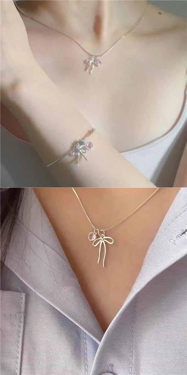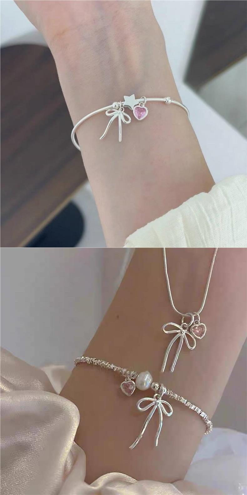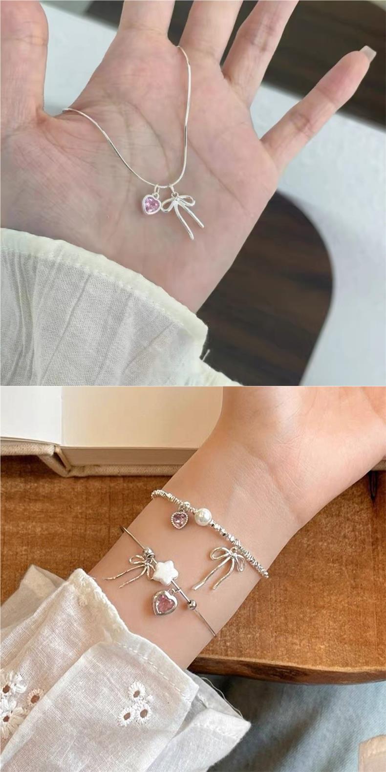 Collar de estrella de amor rosa dulce, elegante y a la moda para mujer, pulsera versátil con cadena de clavícula bañada en plata S925, accesorios