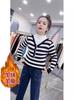 Suéter grueso de otoño e invierno 2024 nuevo de rayas para mujer de imitación de dos piezas estilo coreano versátil cuello medio alto top base