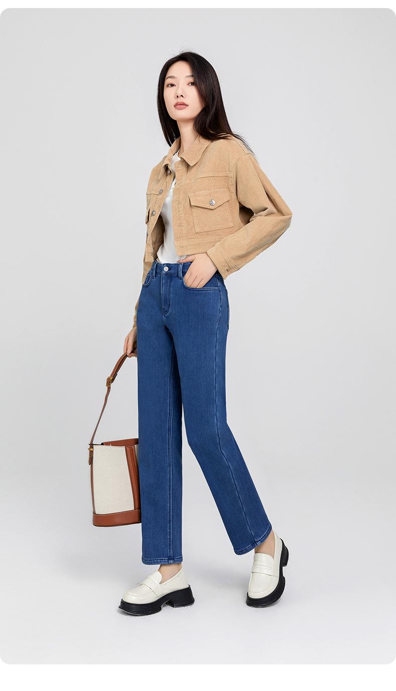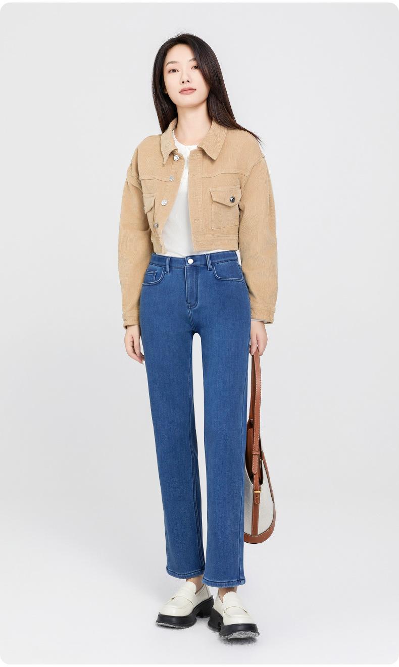 SP68 otoño e invierno nuevo un botón azul recto jeans forrados de polar K-NZ411