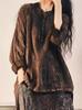 Camisa de lino fino de manga larga con cuello redondo, estilo vintage desgastado, color arena, holgada, combinable, informal, adelgazante