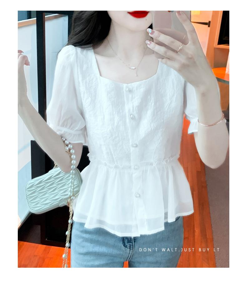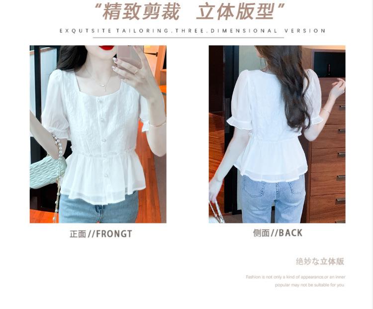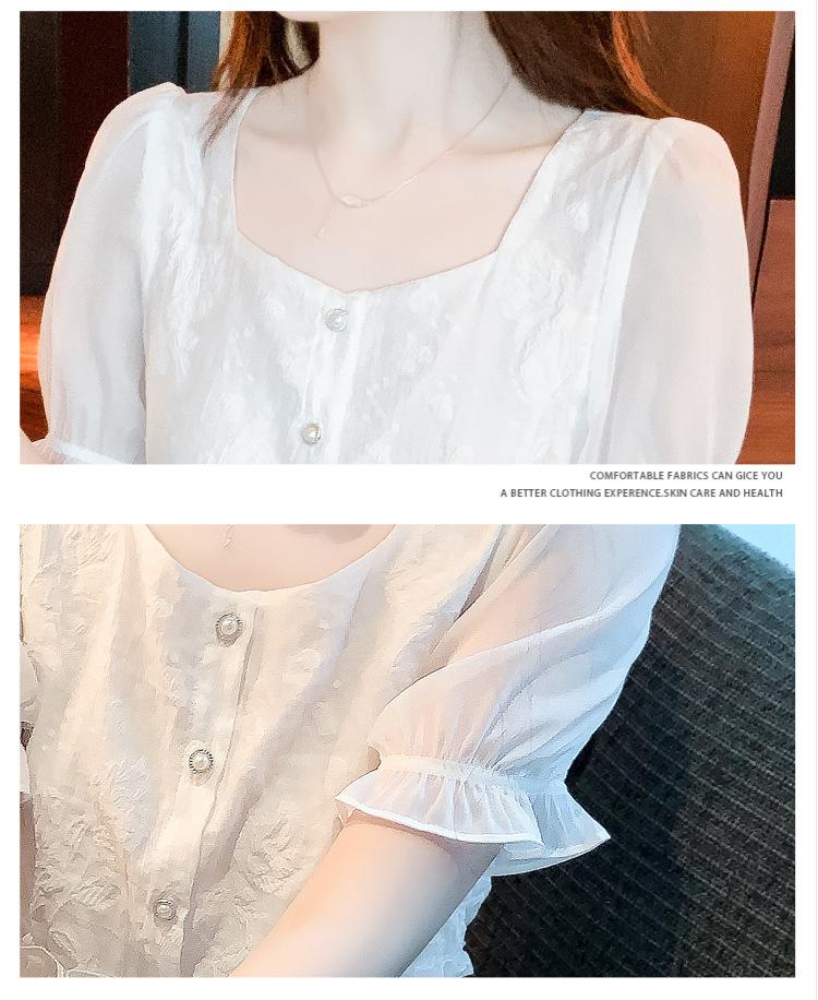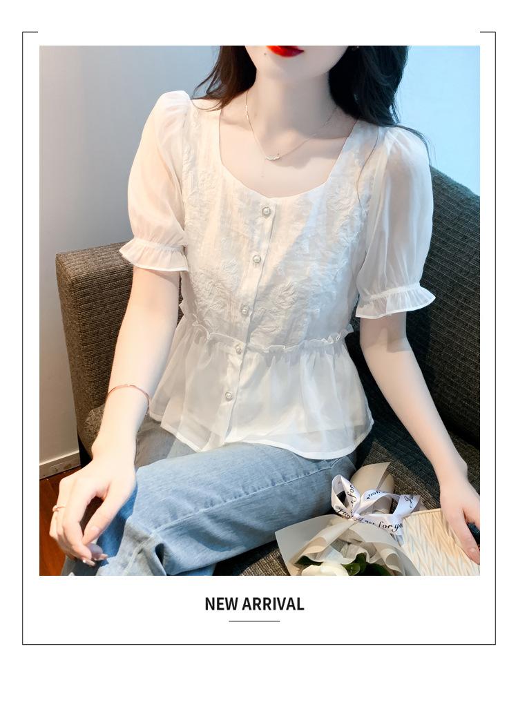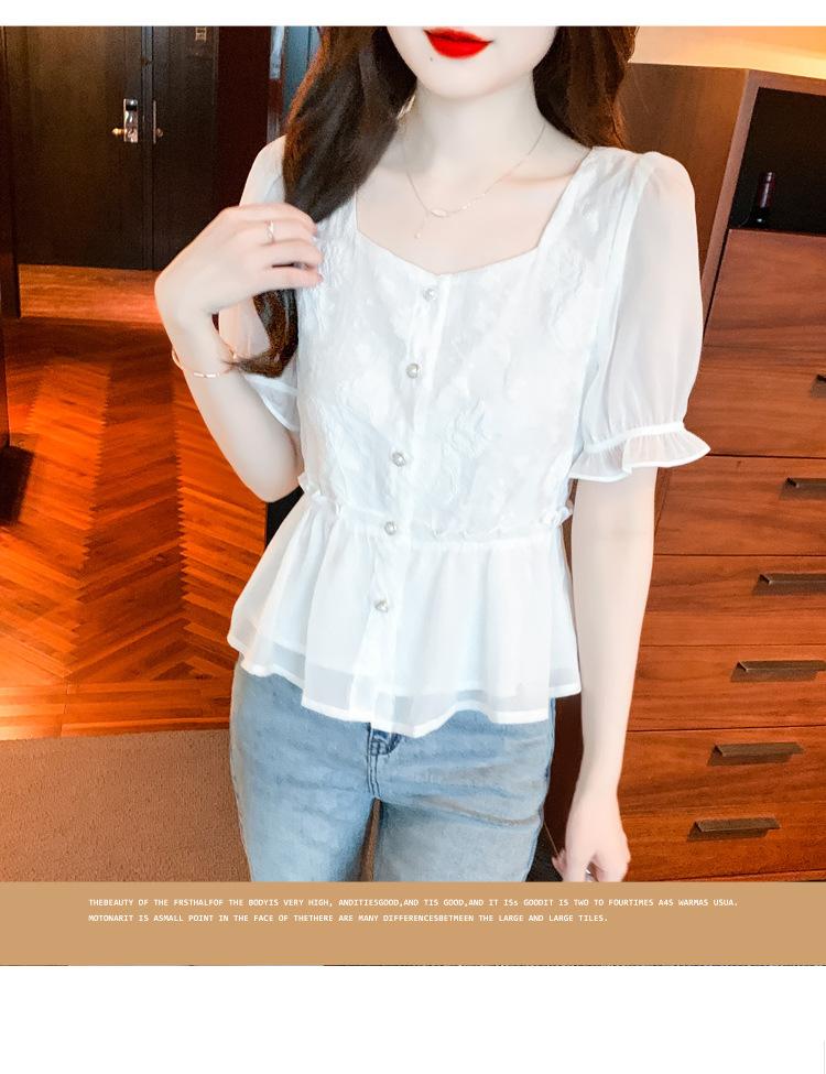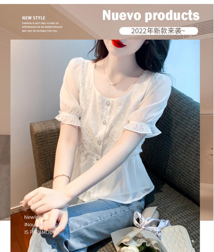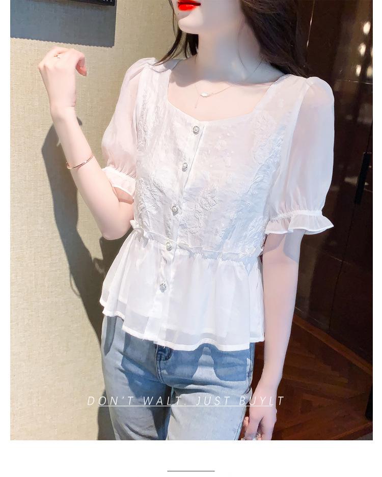 Camisa de gasa de manga corta con costuras de moda para mujer, novedad de verano 2024, elegante blusa de encaje con cintura adelgazante que combina con todo.