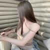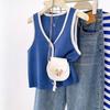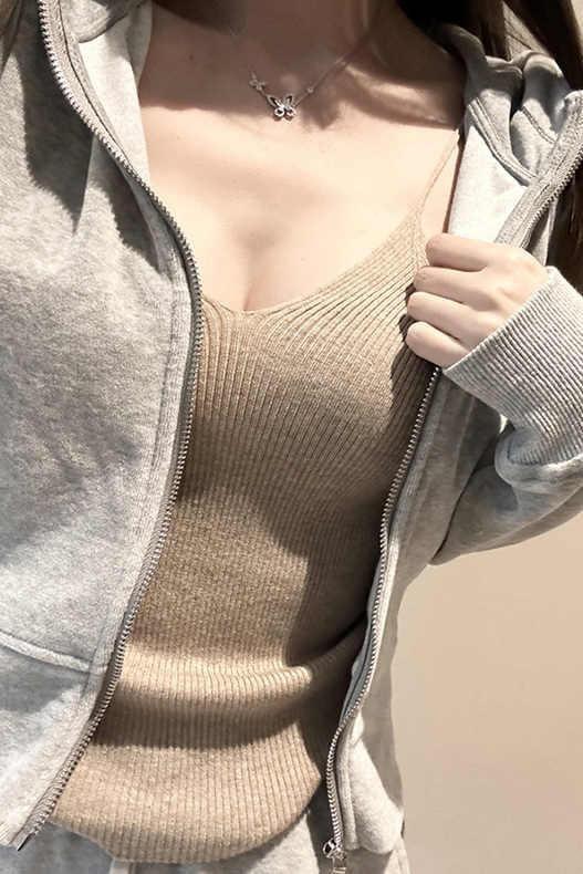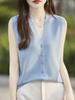 Camisola de punto sexy con cuello en V para mujer, adecuada para ropa exterior de verano, top básico versátil de manga corta sin mangas con cuello polo