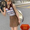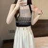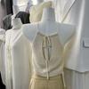 Top de tubo sin espalda estilo Hong Kong vintage de primavera, sexy, adelgazante, estilo Spice Girl, corto, sin mangas, con cordón ajustable, camisola de punto