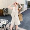 Traje de gasa estilo coreano de verano 2025, moderno conjunto de dos piezas para mujer, top ajustado y shorts, de moda