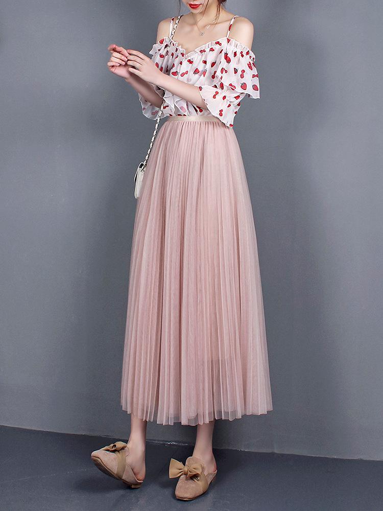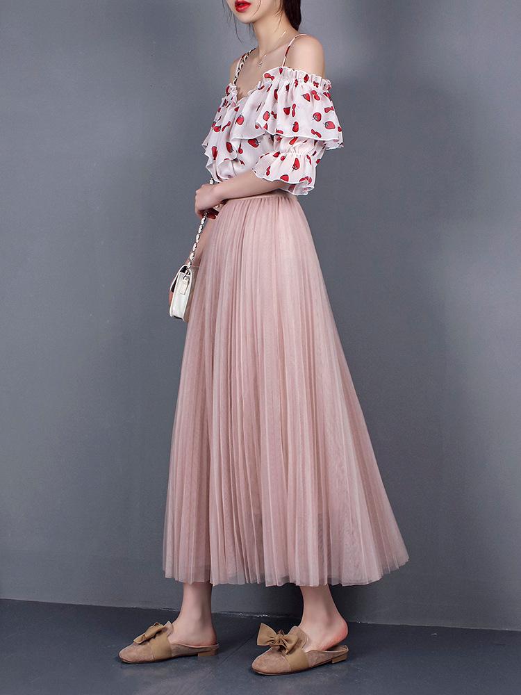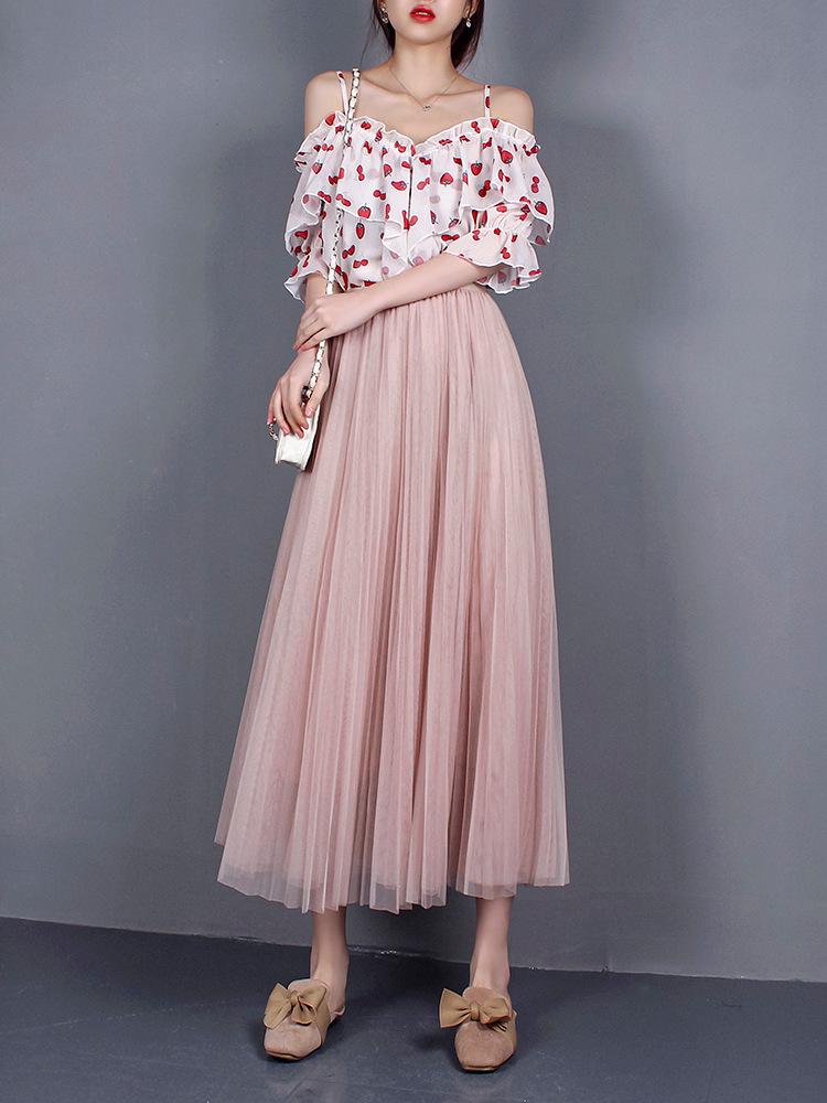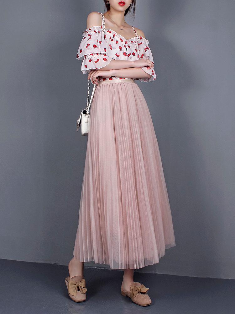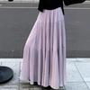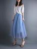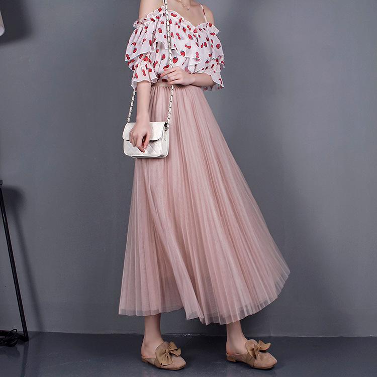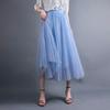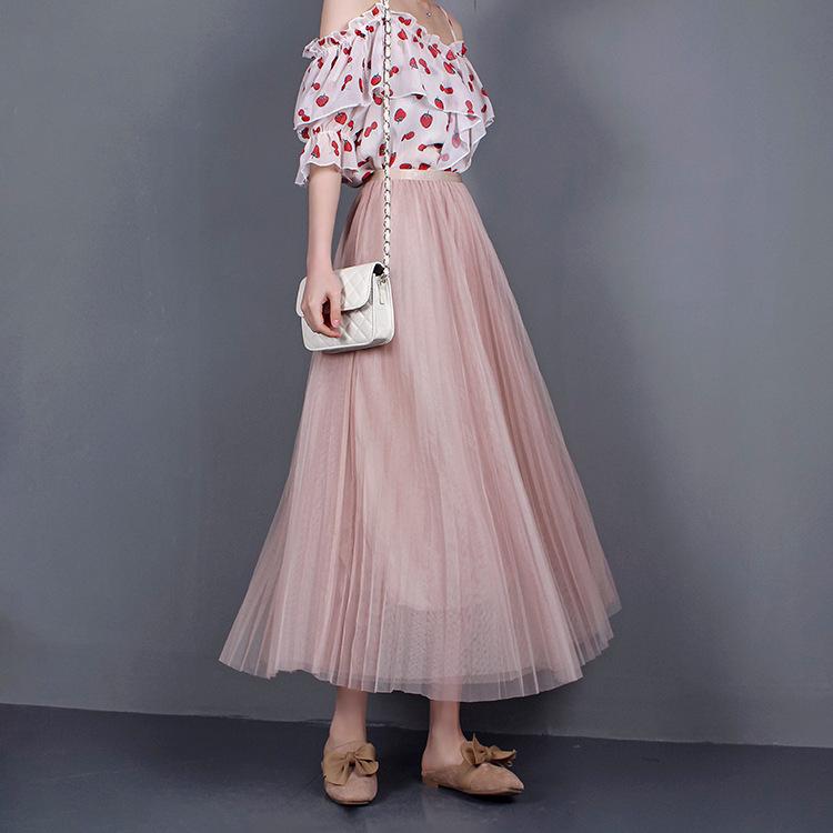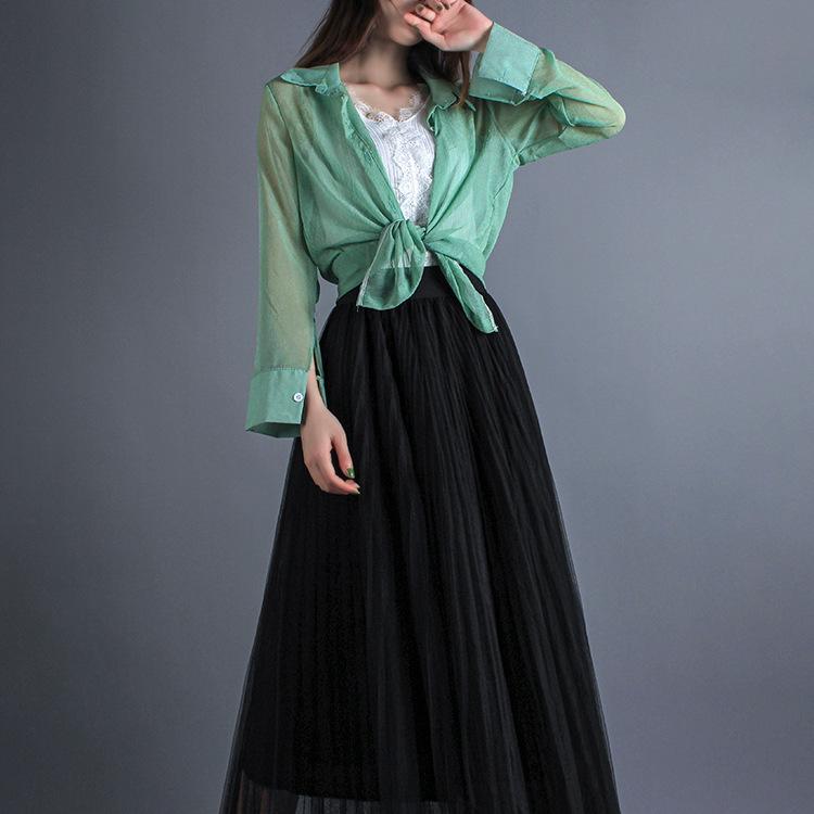 Estilo Europeo y Americano Transfronterizo Primavera Malla Fluida Color Sólido Falda Midi de Vuelo Amplio Versátil Falda de Hada Plisada Negra Estilo Elegante para la Oficina
