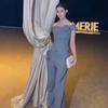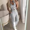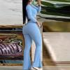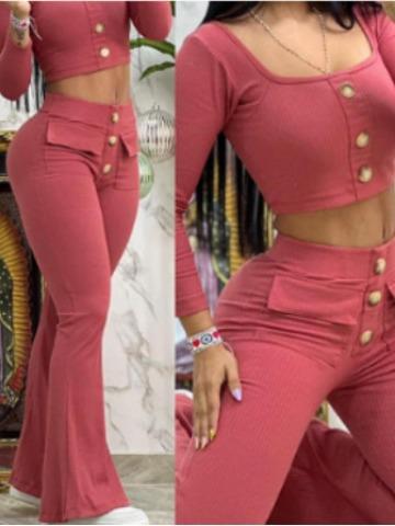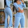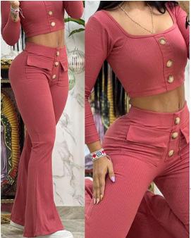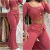 2024 Nuevo en stock Traje casual de mujer europeo y americano con cuello en U, manga nueve puntos y botones, diseño de ombligo