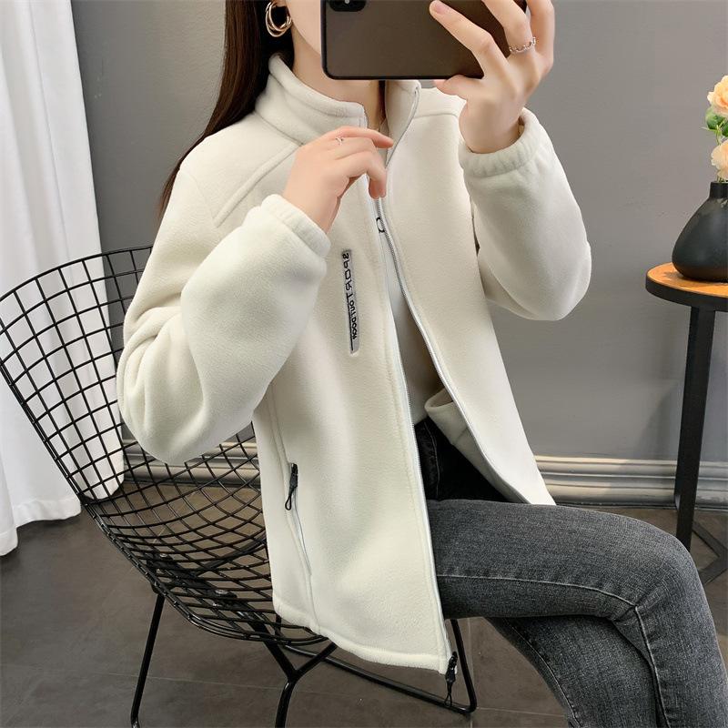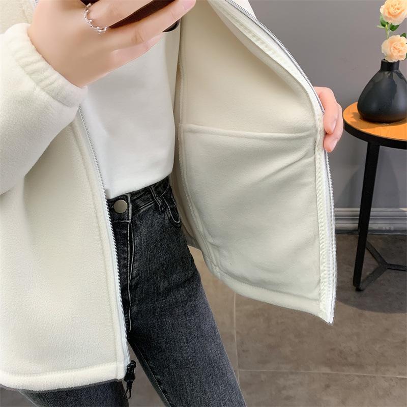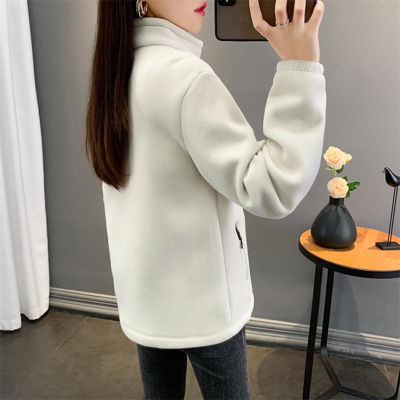 Abrigo polar blanco de otoño e invierno con copos de nieve para mujer, forro polar fino con cuello de forro polar, cárdigan grueso, suéter deportivo para exteriores