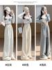 Pantalones Florales Holgados Blancos de Pierna Ancha para Mujer Primavera y Otoño 2025 Nuevos Pantalones Deportivos Casuales Rectos Holgados para Personas Pequeñas