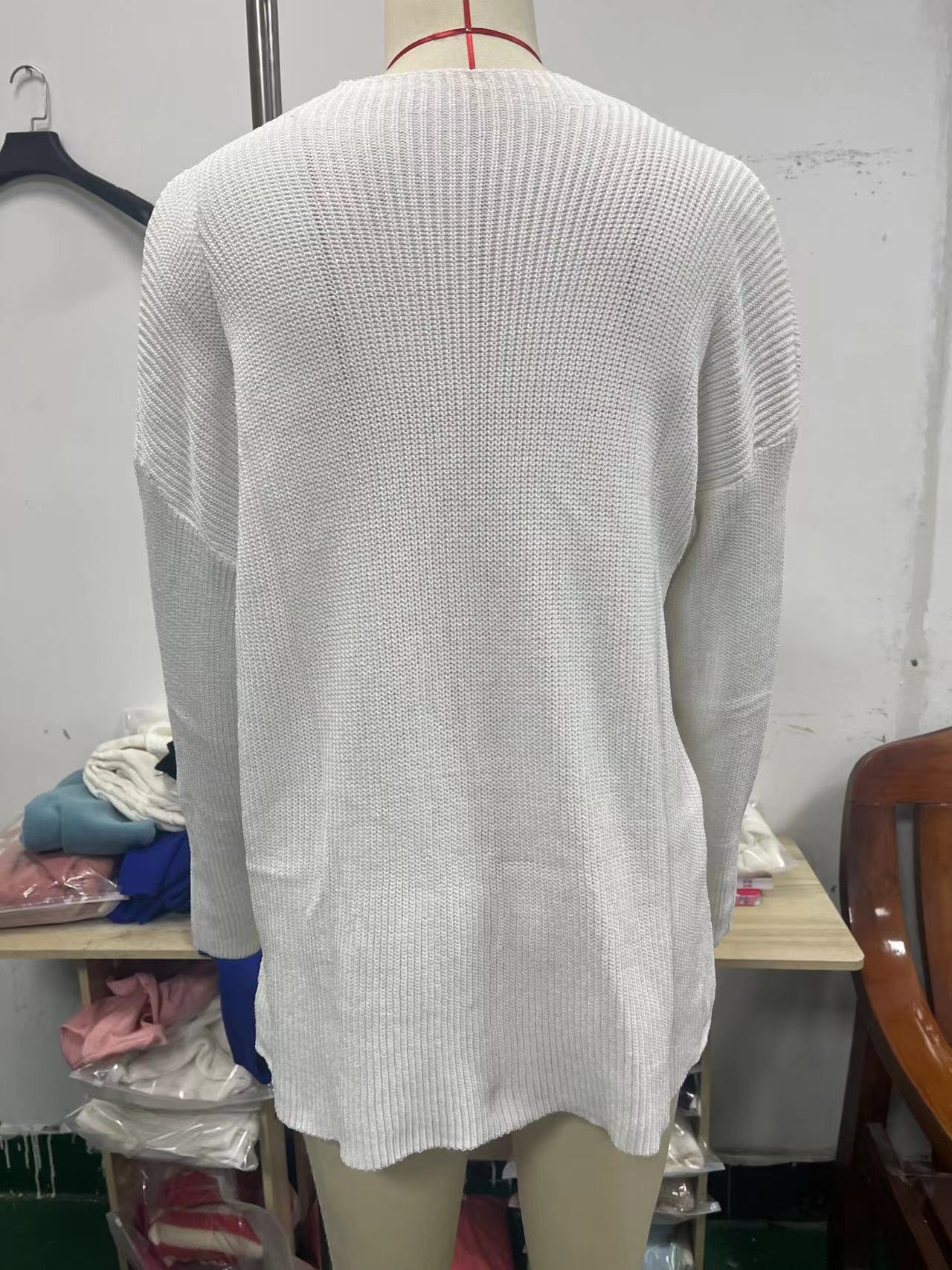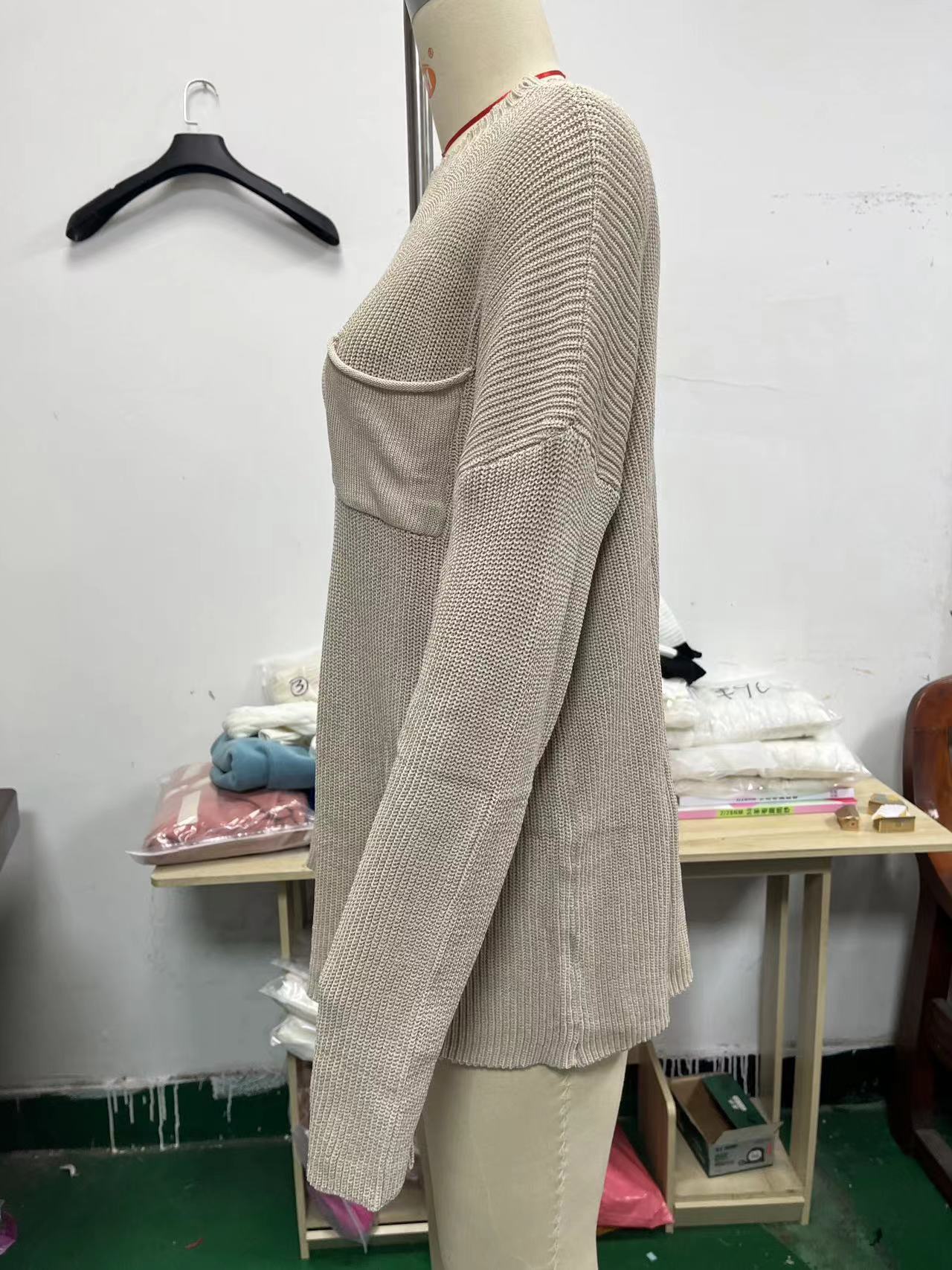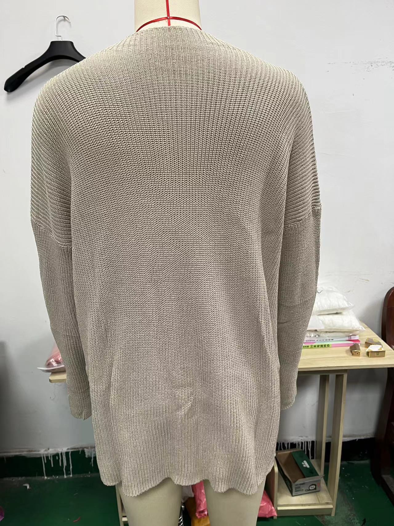 2. Nuestra empresa se especializa en suéteres de comercio exterior (prendas de punto) y está dispuesta a cooperar de buena fe con plataformas y empresas de comercio exterior como Amazon, AliExpress, eBay y Wish. Contamos con nuestra propia línea de producción de suéteres y aceptamos personalizaciones basadas en muestras y dibujos.