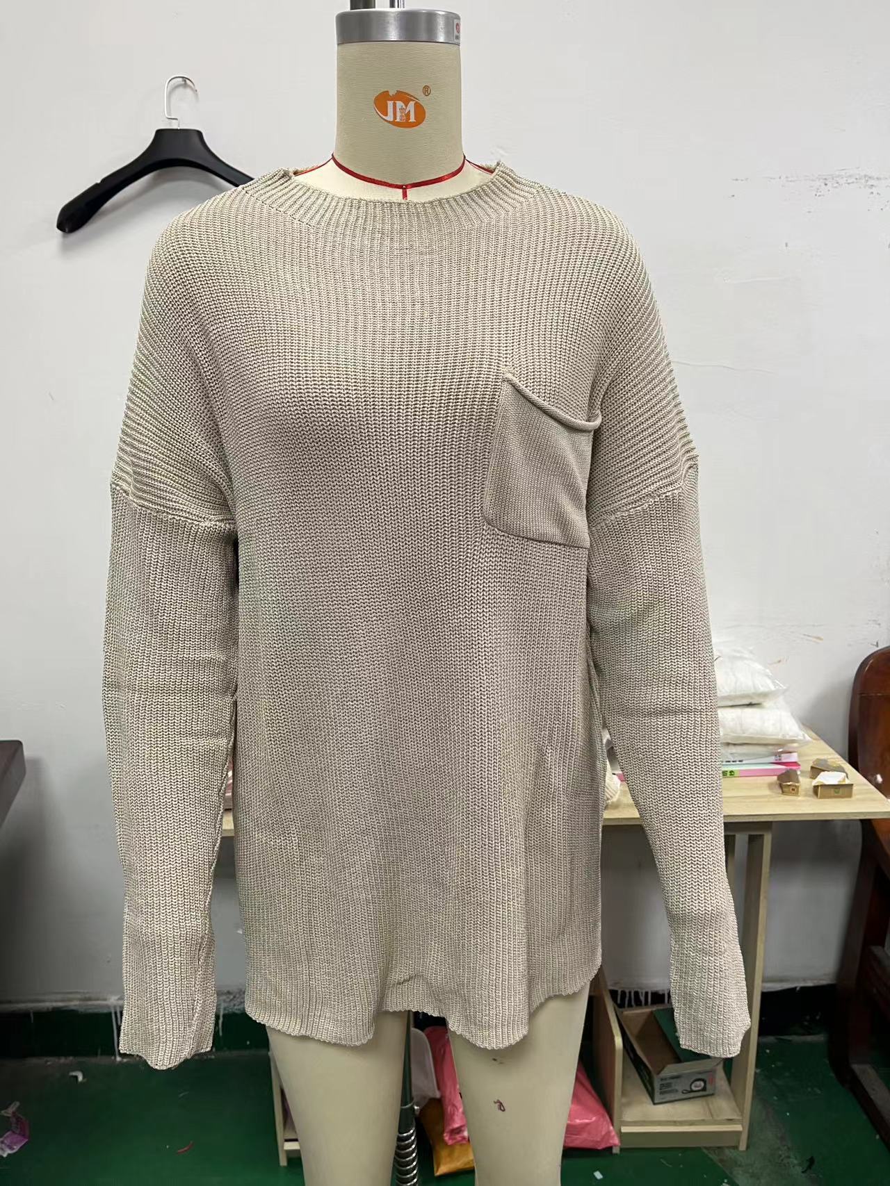 2024 transfronterizo Amazon otoño e invierno nuevo suéter para mujer cuello redondo manga larga suéter con bolsillo Europa y Estados Unidos suéter de viento perezoso