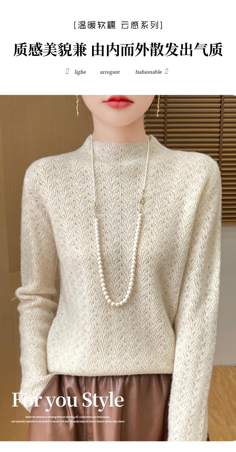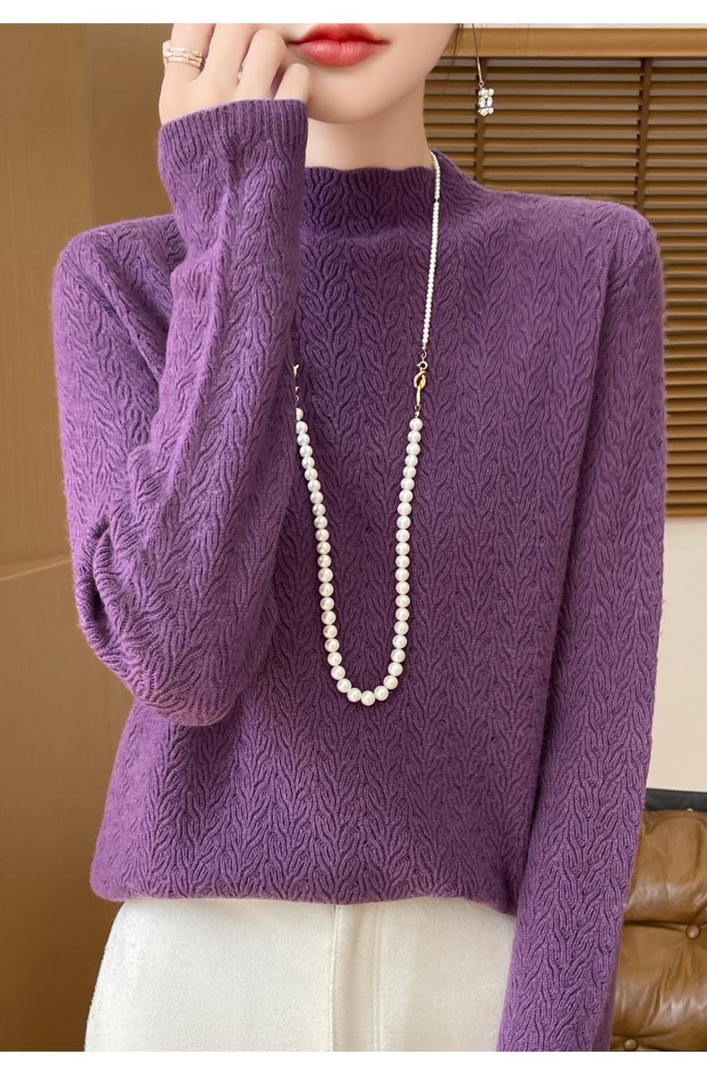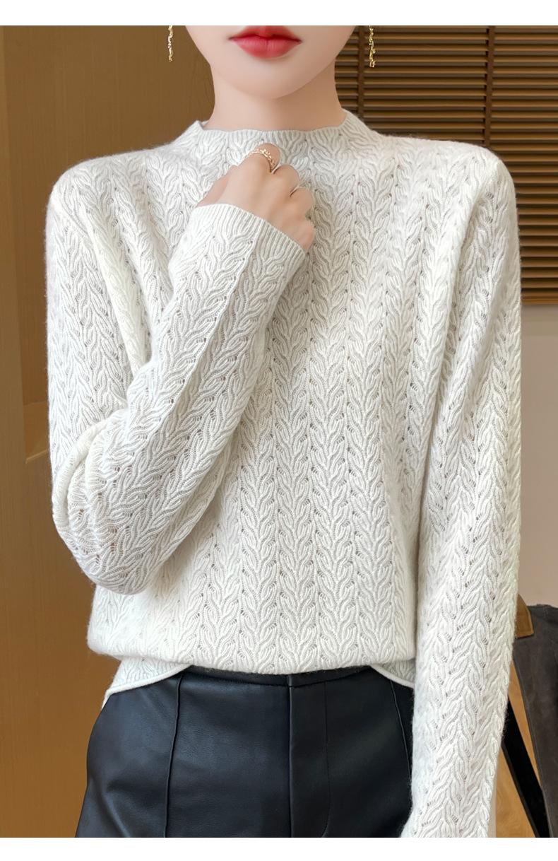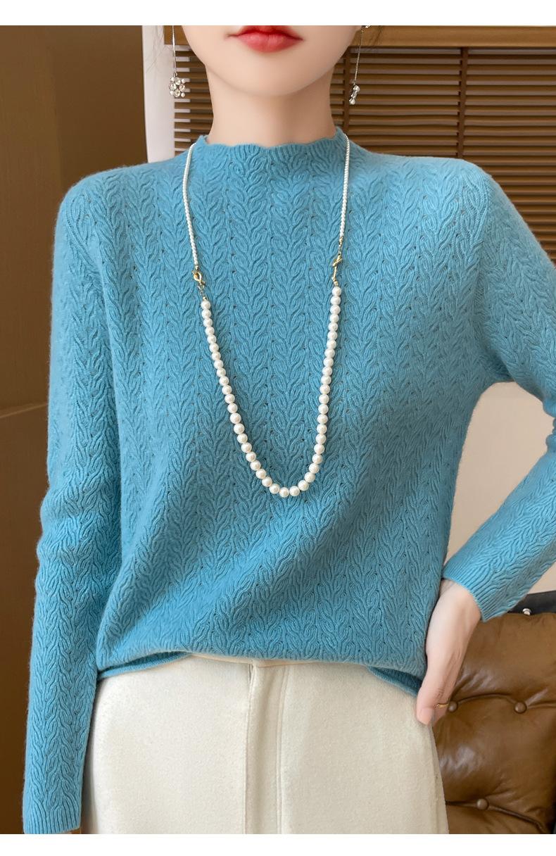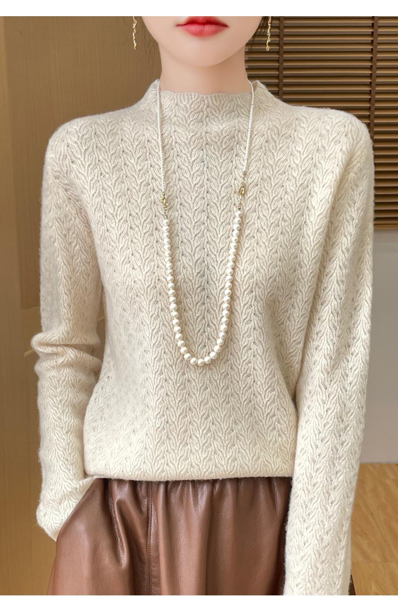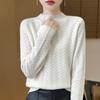 Suéter de terciopelo Andy de estilo coreano para mujer, jersey holgado de cuello semialto con patrón hueco, color sólido, manga larga, top inferior
