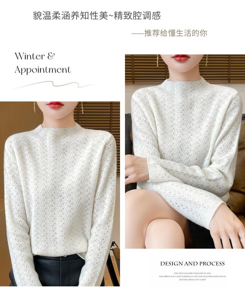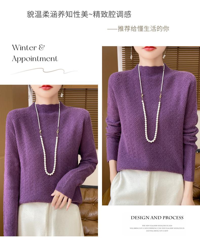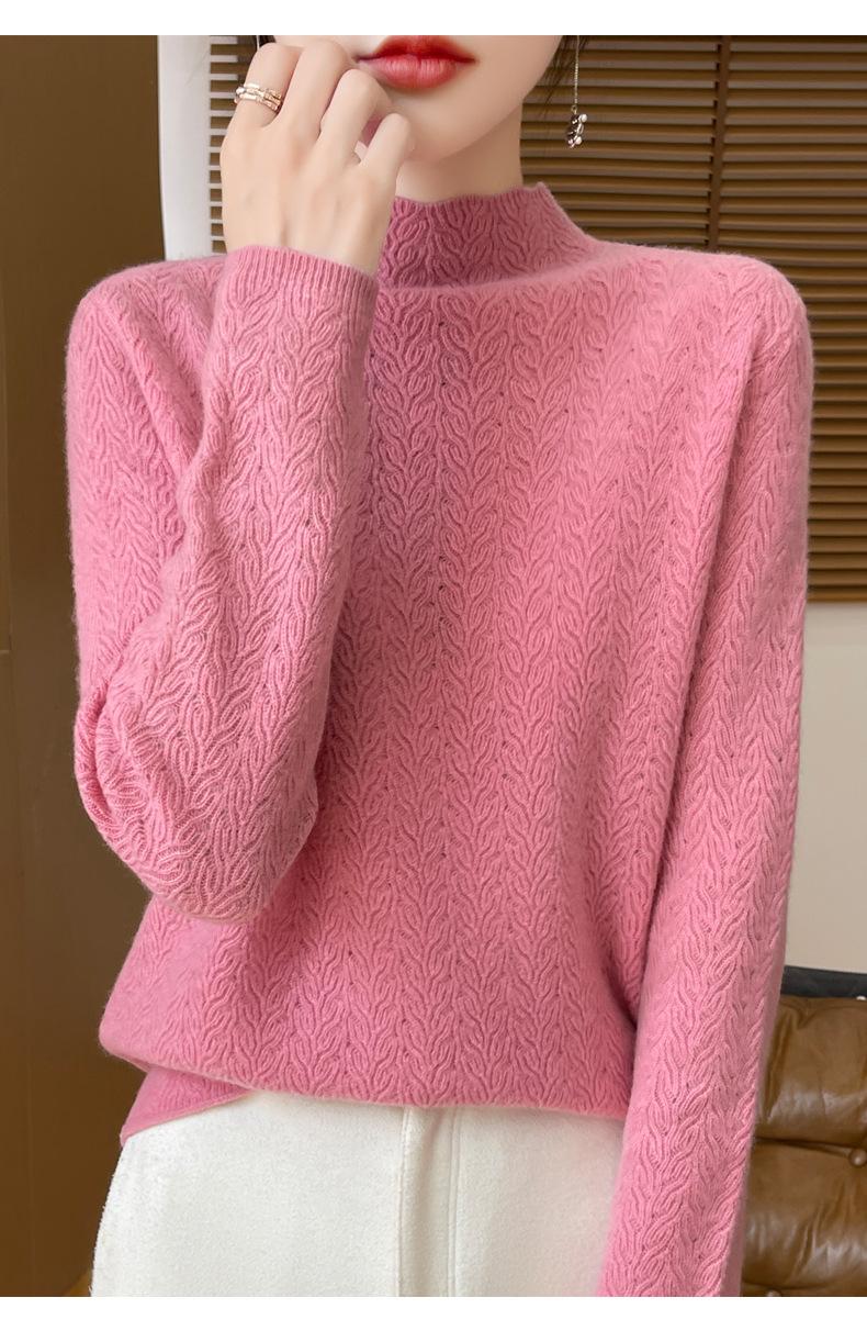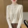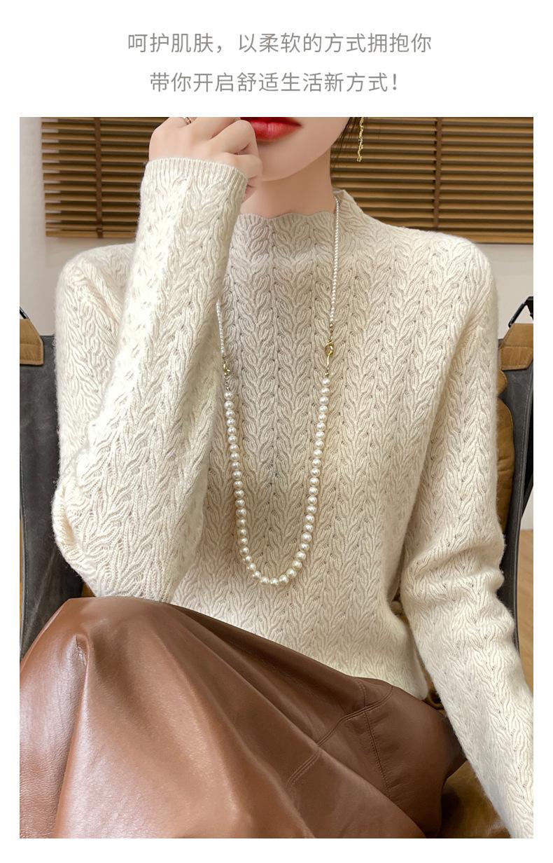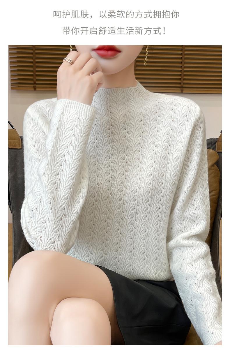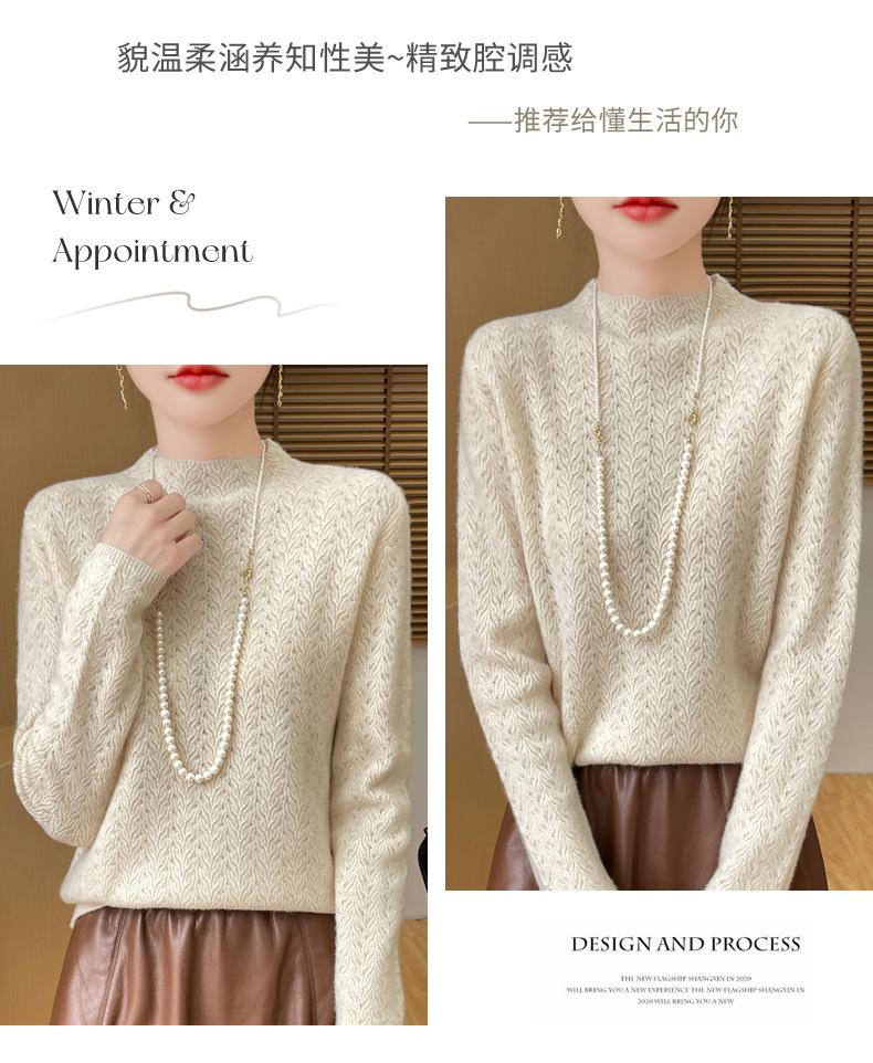 Suéter de terciopelo Andy de estilo coreano para mujer, jersey holgado de cuello semialto con patrón hueco, color sólido, manga larga, top inferior