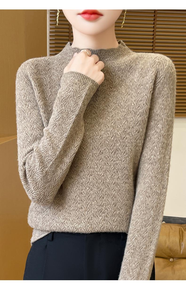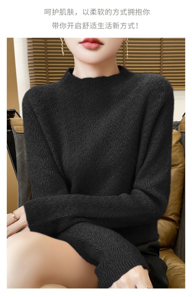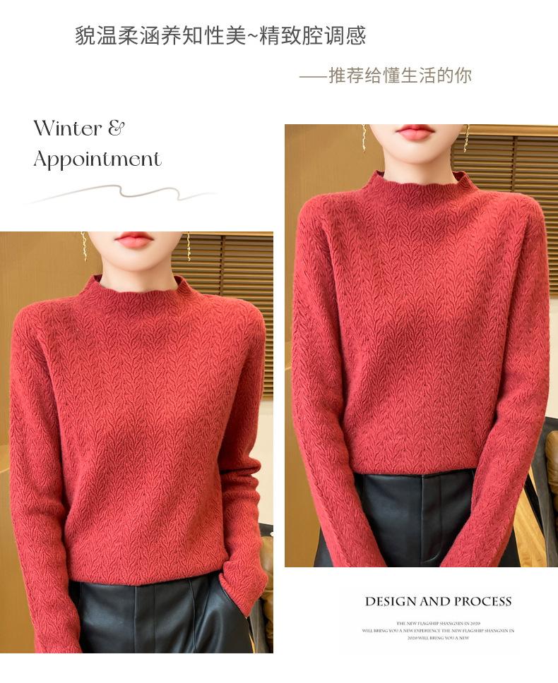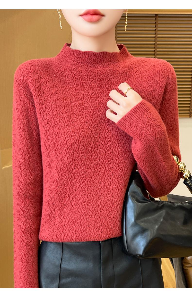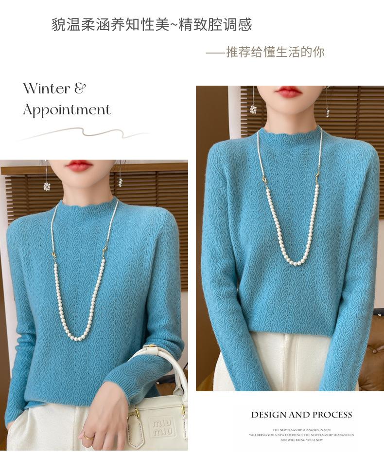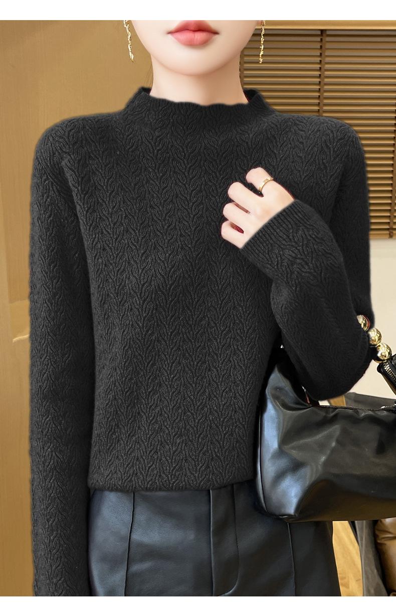 Suéter de terciopelo Andy de estilo coreano para mujer, jersey holgado de cuello semialto con patrón hueco, color sólido, manga larga, top inferior