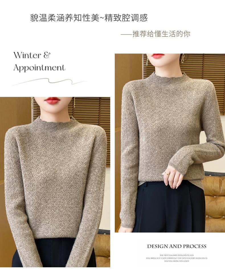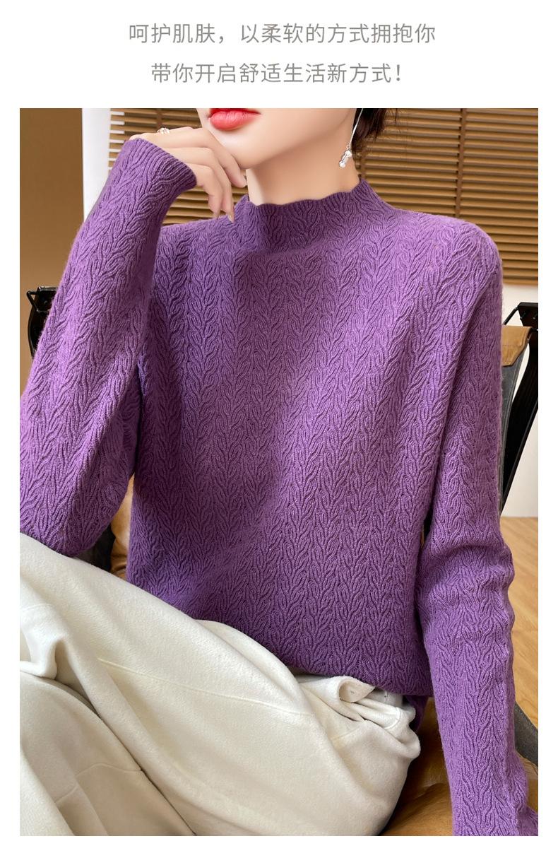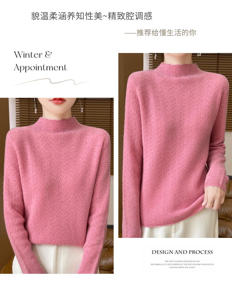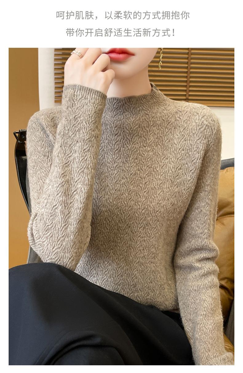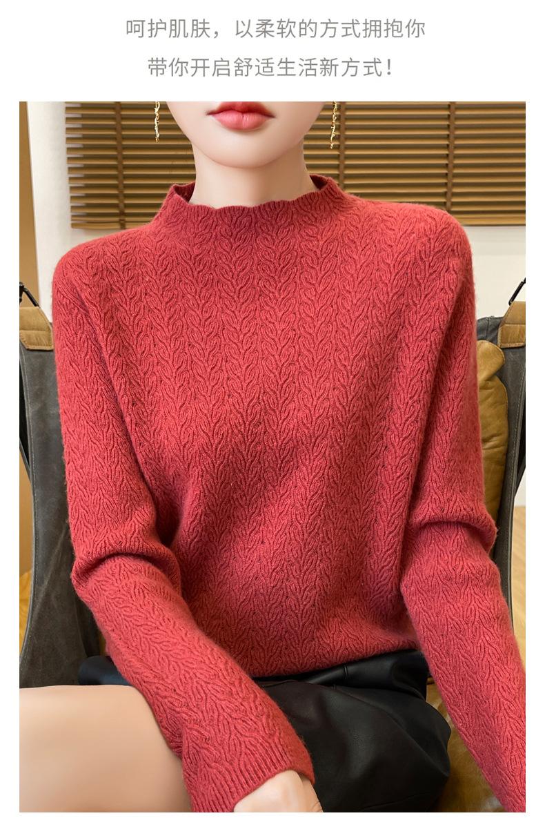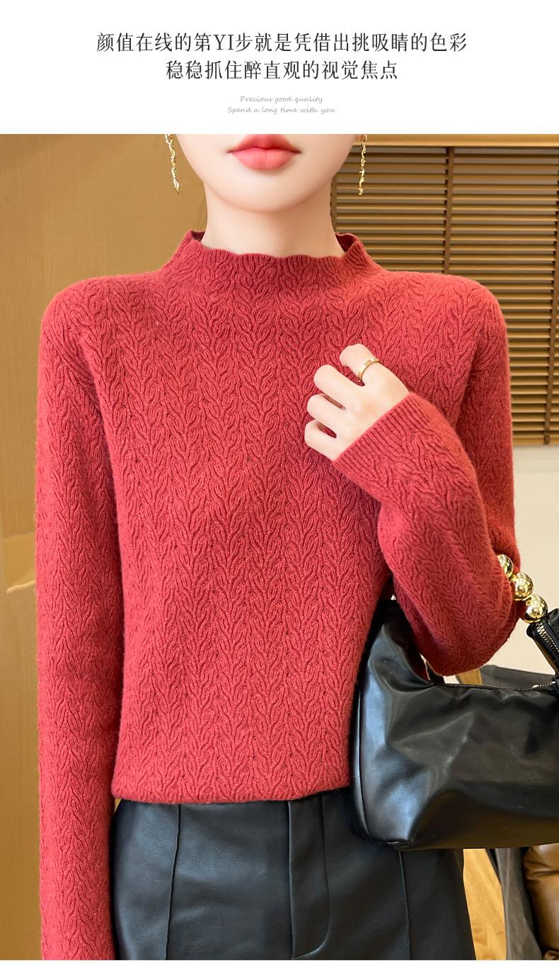 Suéter de terciopelo Andy de estilo coreano para mujer, jersey holgado de cuello semialto con patrón hueco, color sólido, manga larga, top inferior