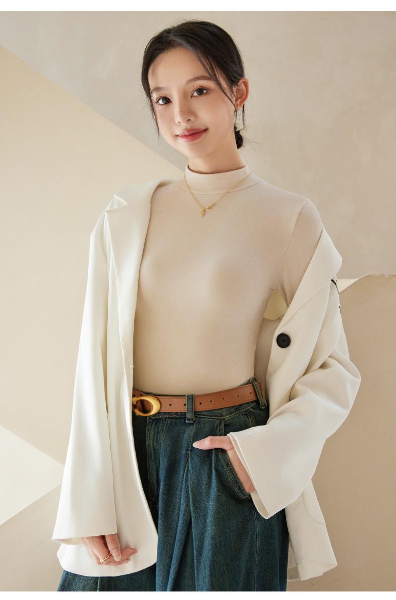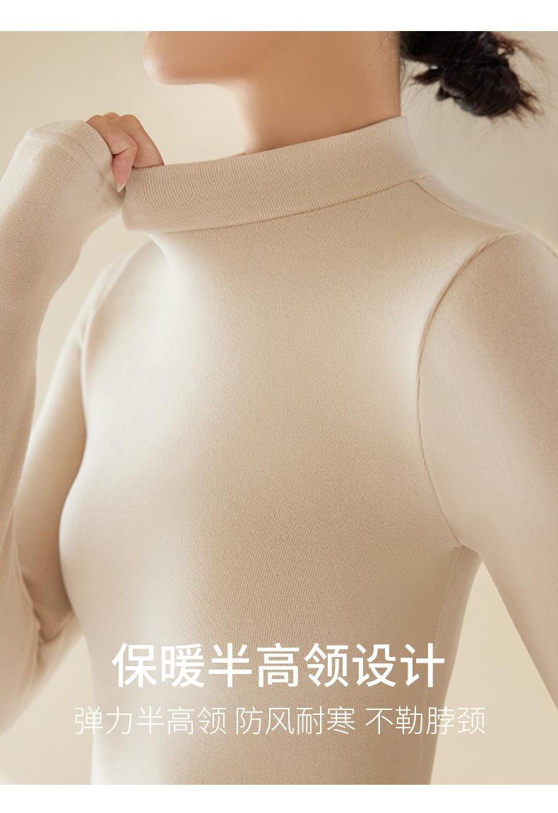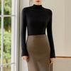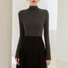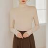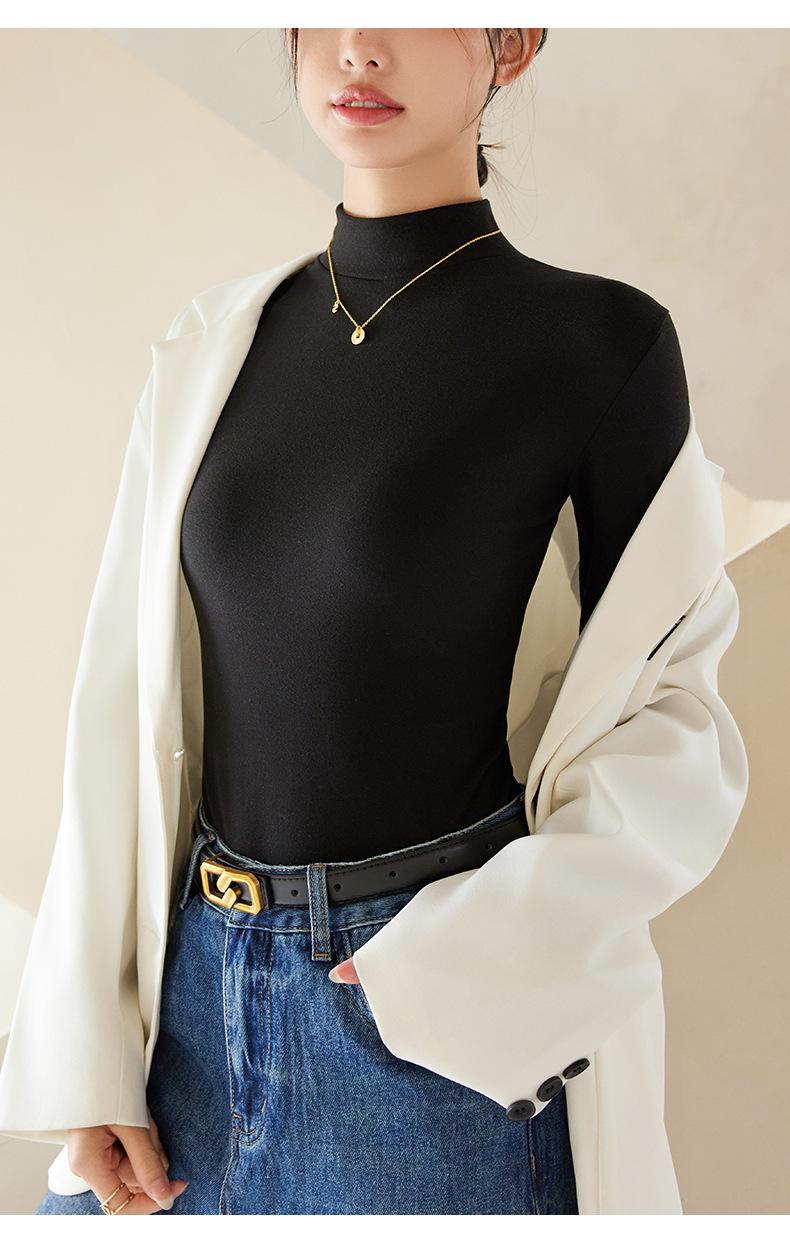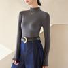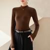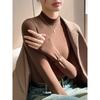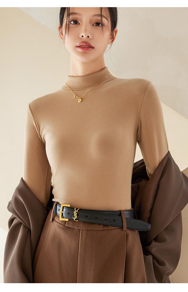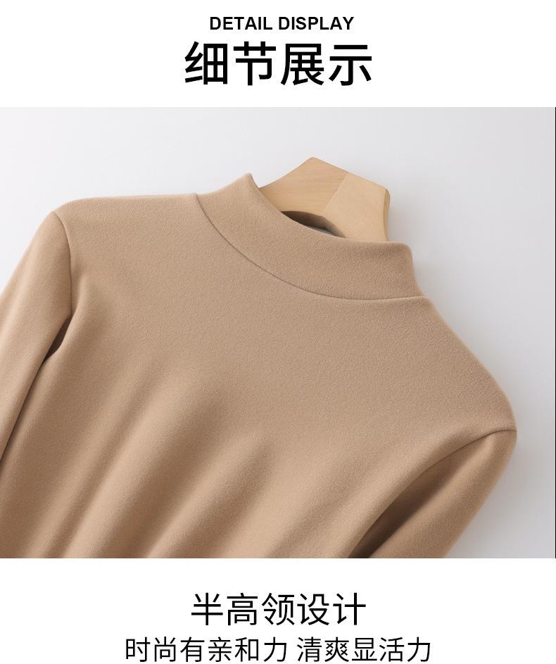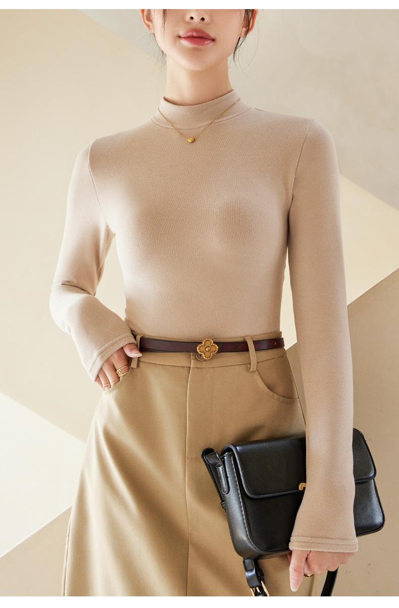Camiseta Básica de Terciopelo con Cuello Mock para Mujer Otoño e Invierno Nueva Camiseta de Punto Cepillada de Doble Cara con Forro Polar Top Grueso de Manga Larga