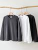 Camiseta básica de color liso de algodón con cuello redondo, holgada, clásica, en blanco y negro y gris, para principios de otoño, para hombre y mujer, para parejas, camiseta de manga larga.