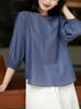 Camisa de mujer elegante, sencilla, ligera, de media manga, con cuello redondo y grande, estilo chic, para primavera y verano, nueva.