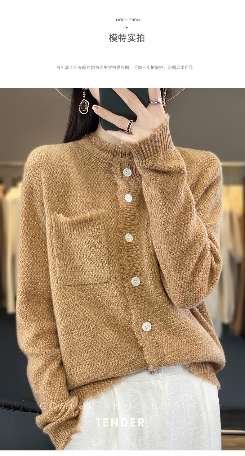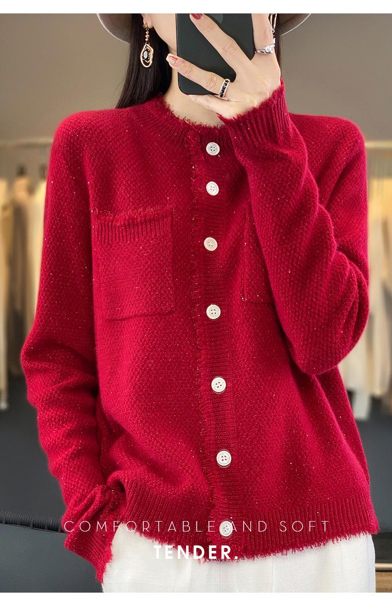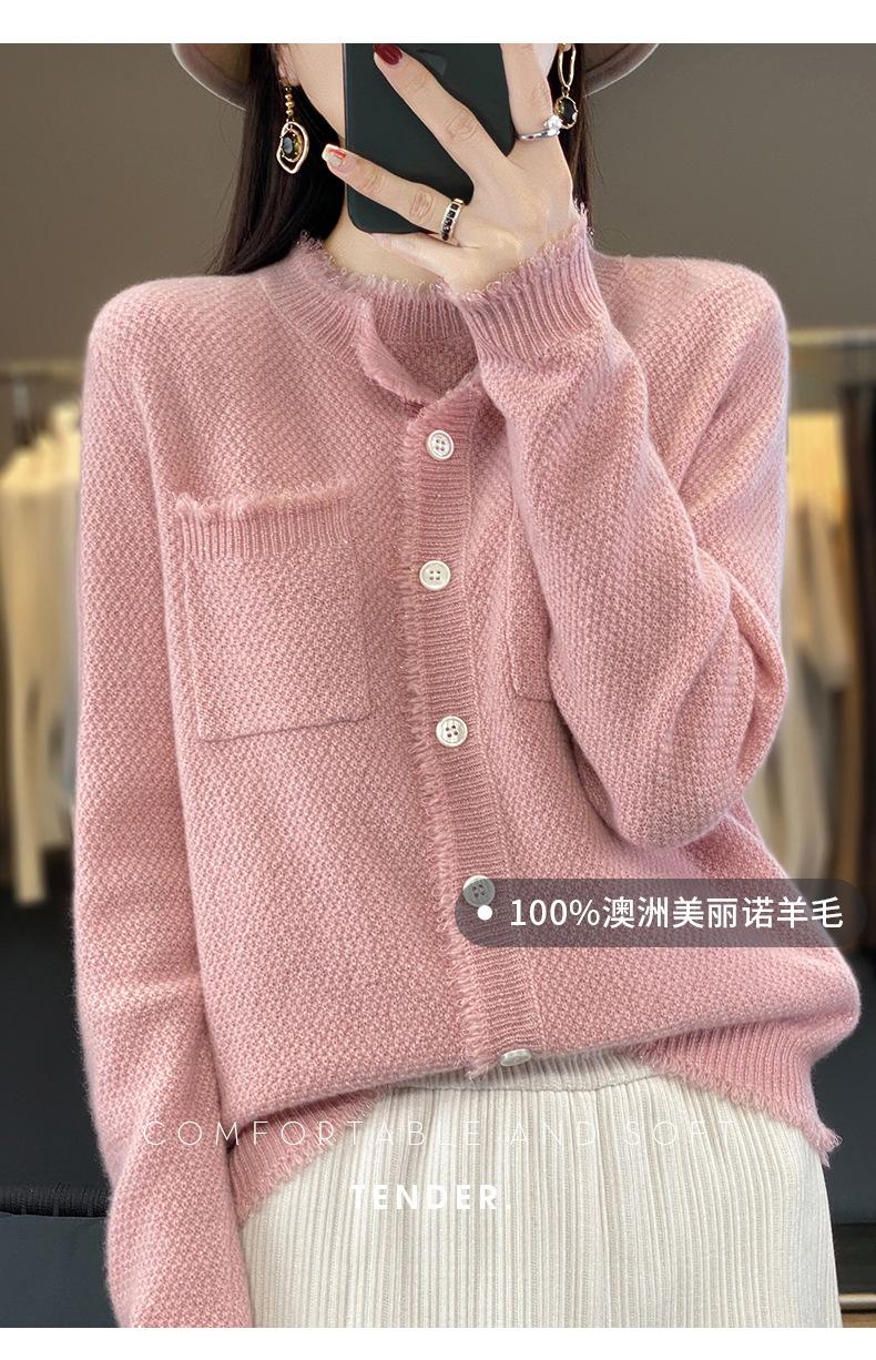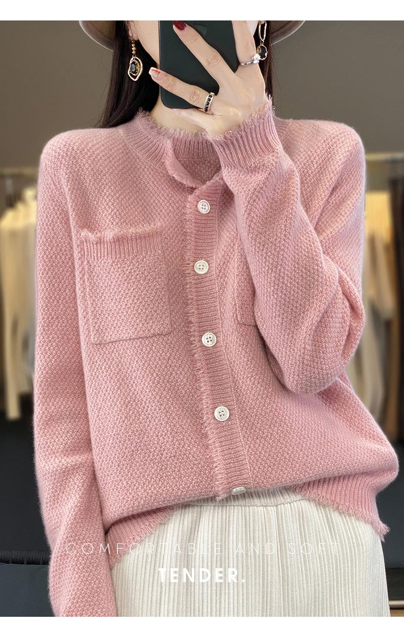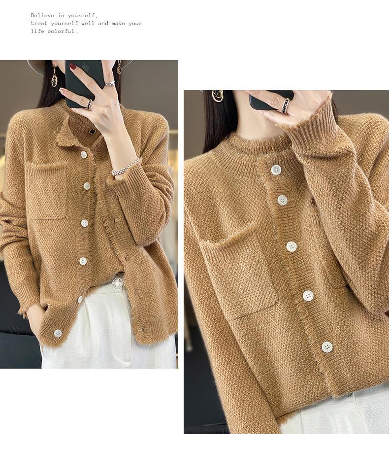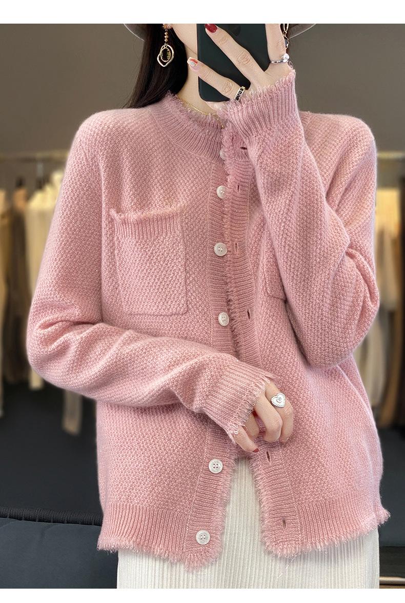 Cárdigan de Punto de Lana Pura para Mujer 100% Lana Pura Otoño e Invierno Nuevo Top con Borlas Chaqueta de Lujo Ligero para Mujer a la Moda con Bolsillo
