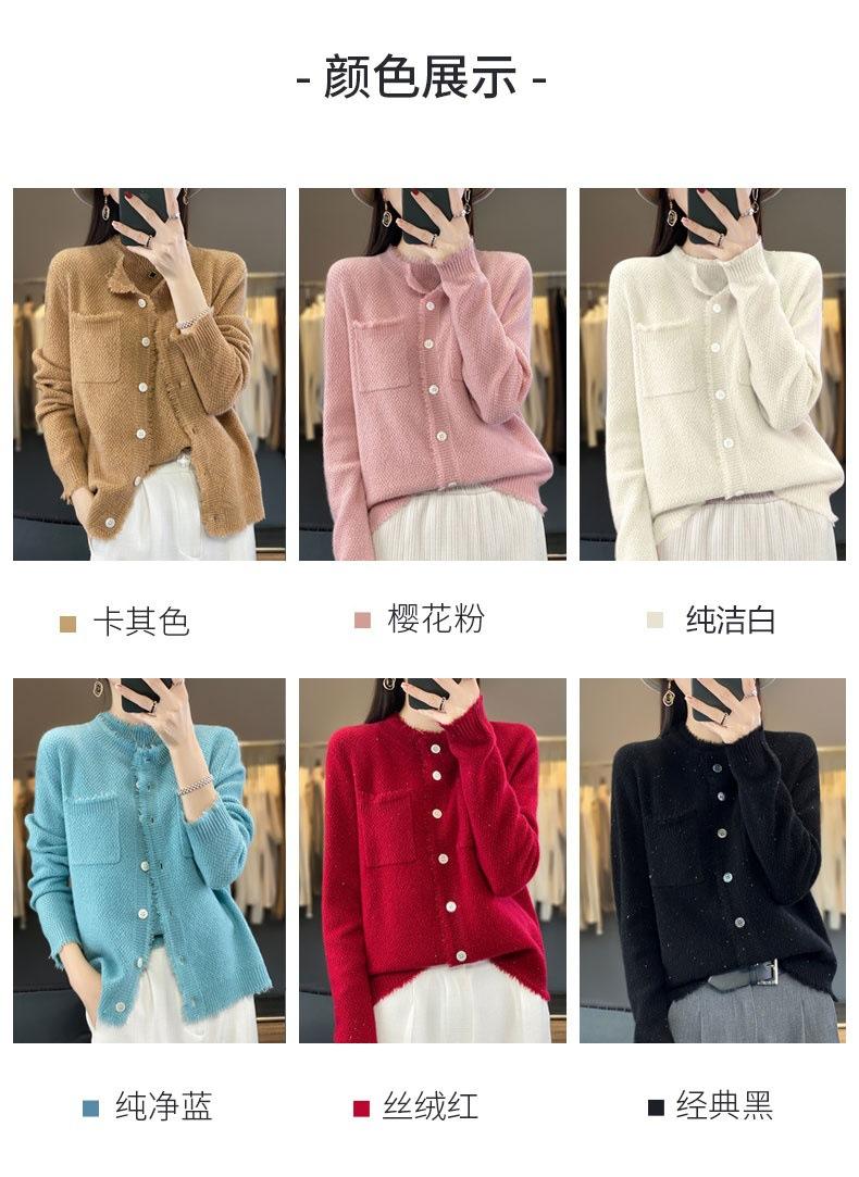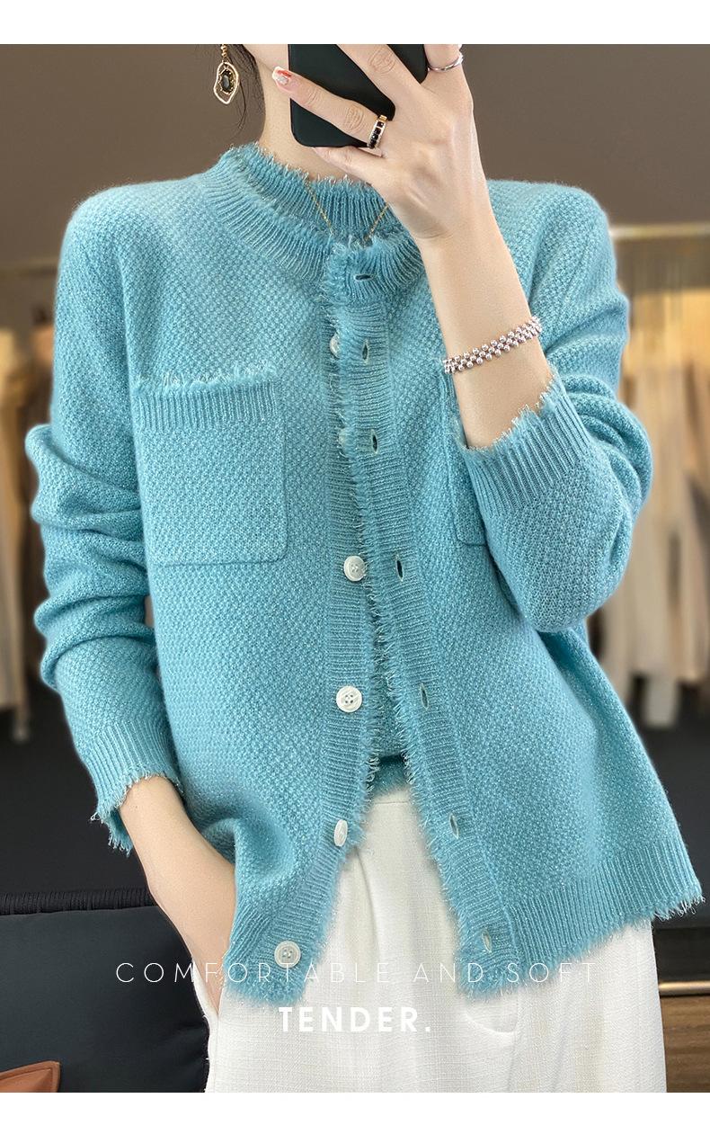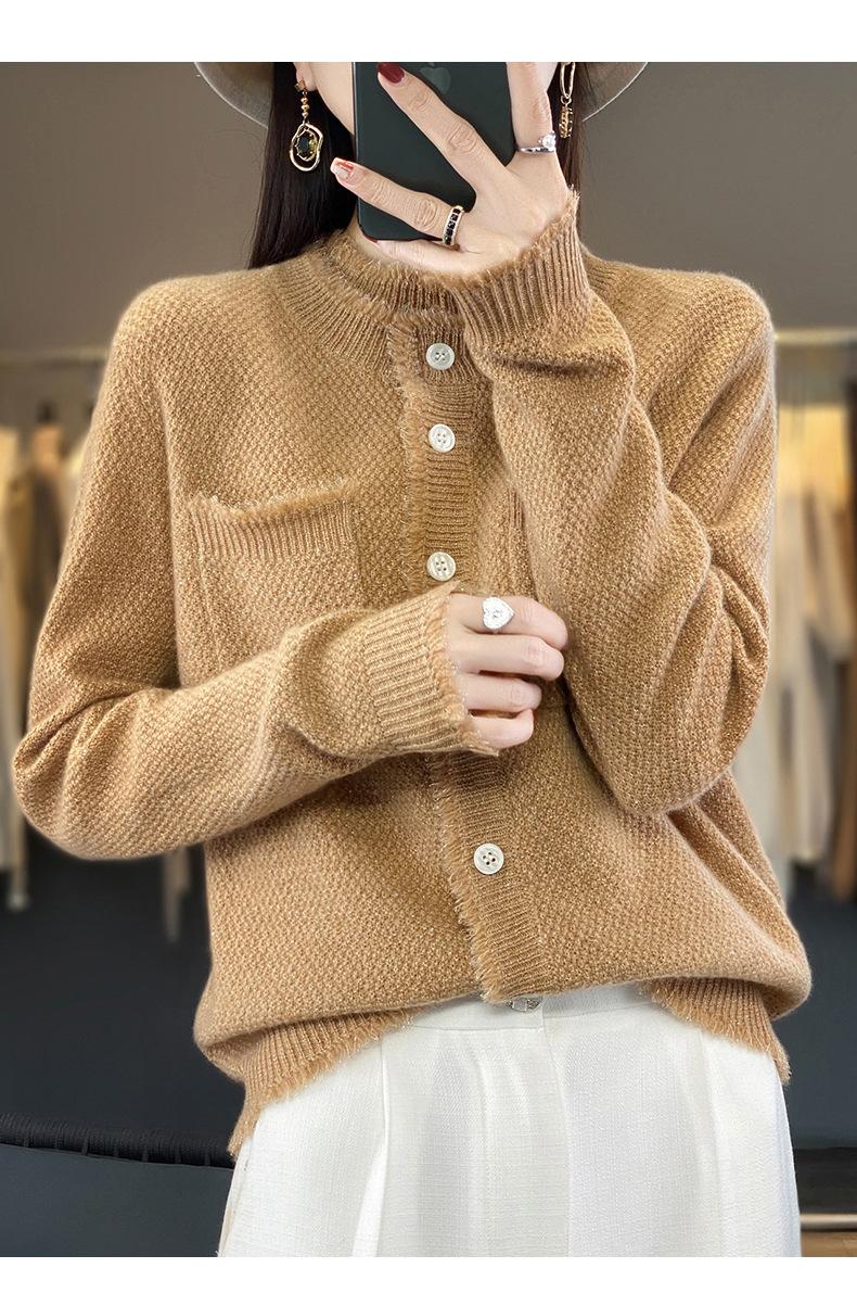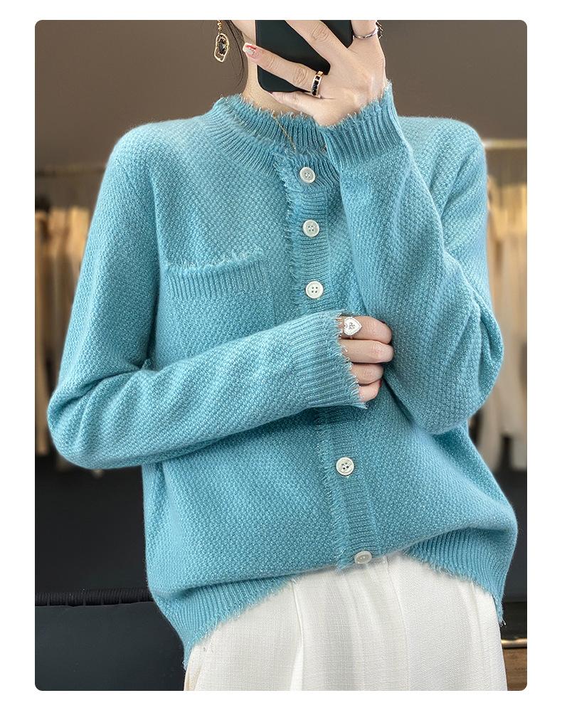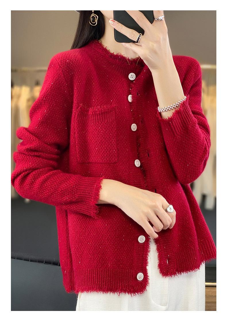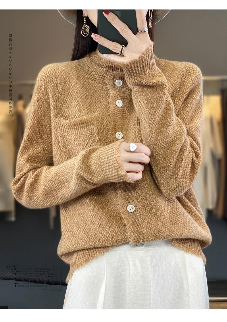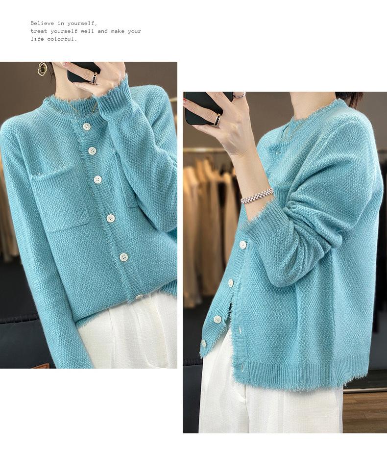 Cárdigan de Punto de Lana Pura para Mujer 100% Lana Pura Otoño e Invierno Nuevo Top con Borlas Chaqueta de Lujo Ligero para Mujer a la Moda con Bolsillo